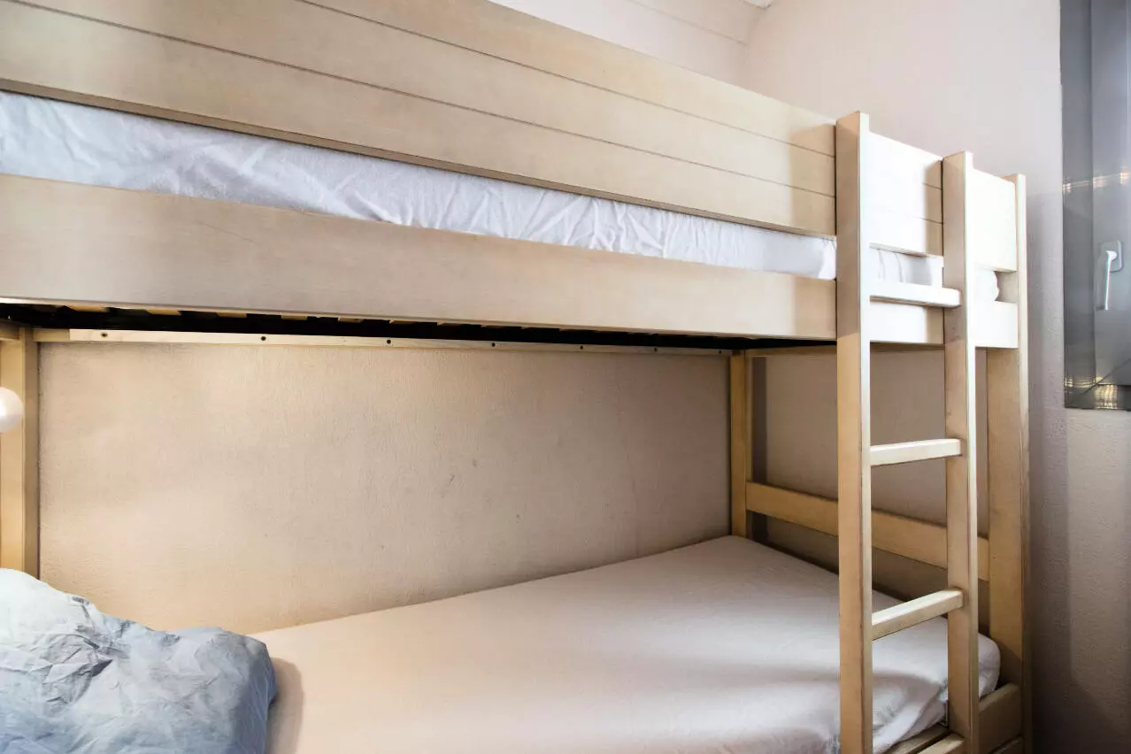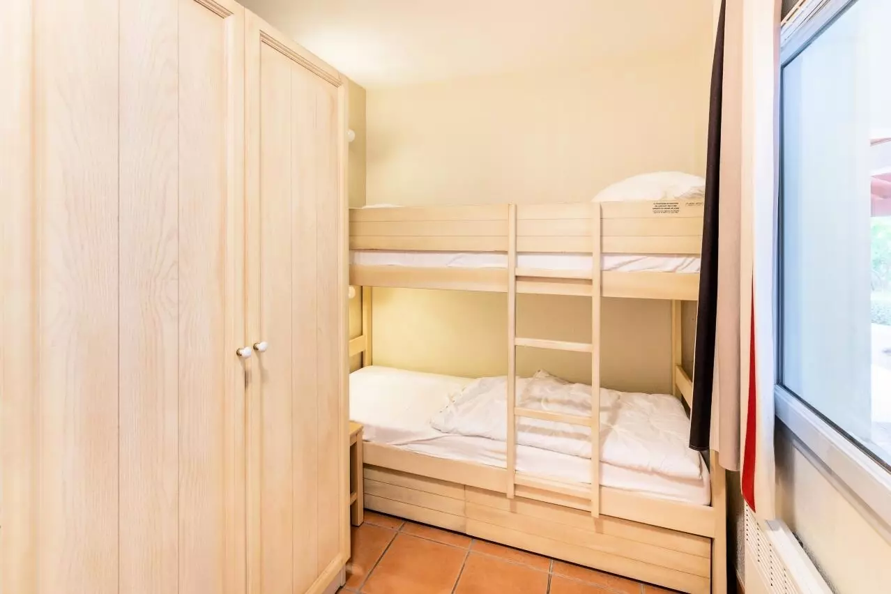 Coin cabine : 2 lits simples superposés.