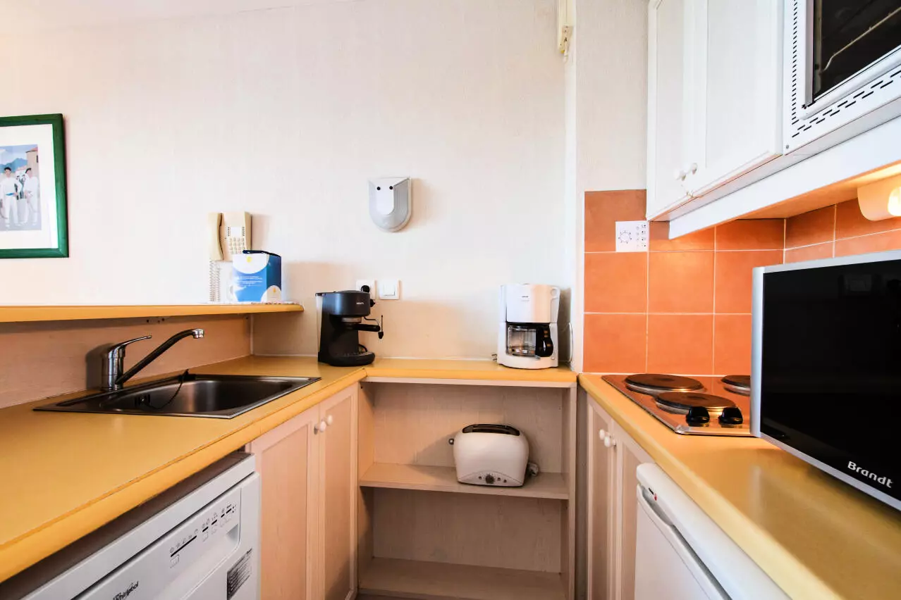 Cuisine : Coin cuisine équipée ouvert sur le séjour.