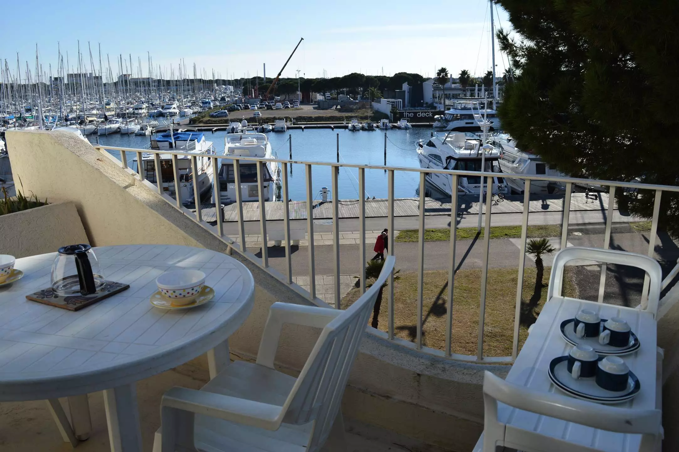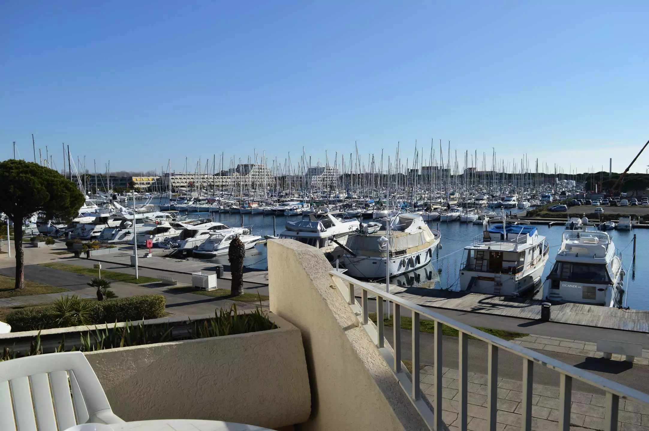 Le "Plus" de cette location studio dans la sud : une vue imprenable sur le port de plaisance et les bateaux, et une place de parking privée.