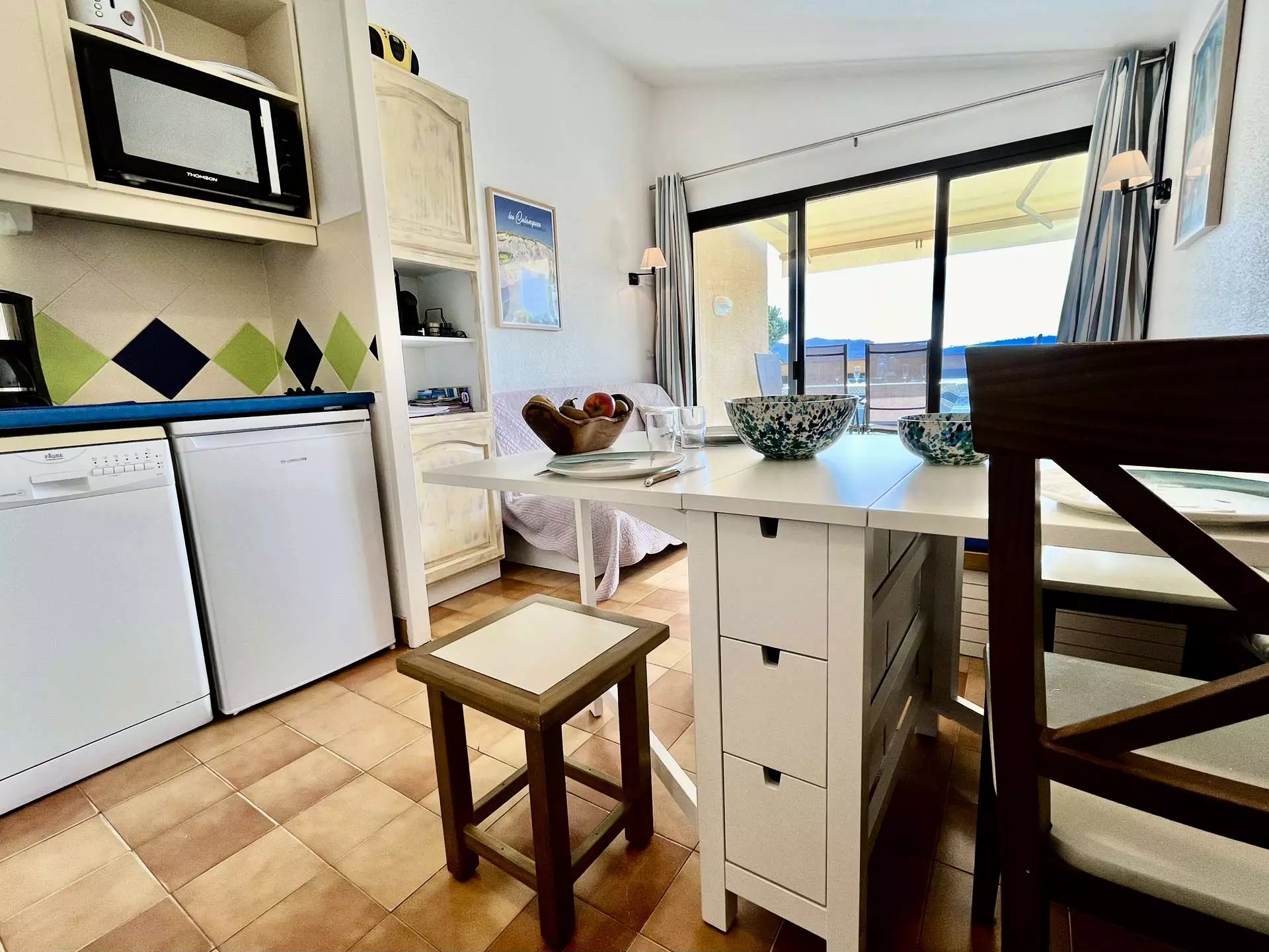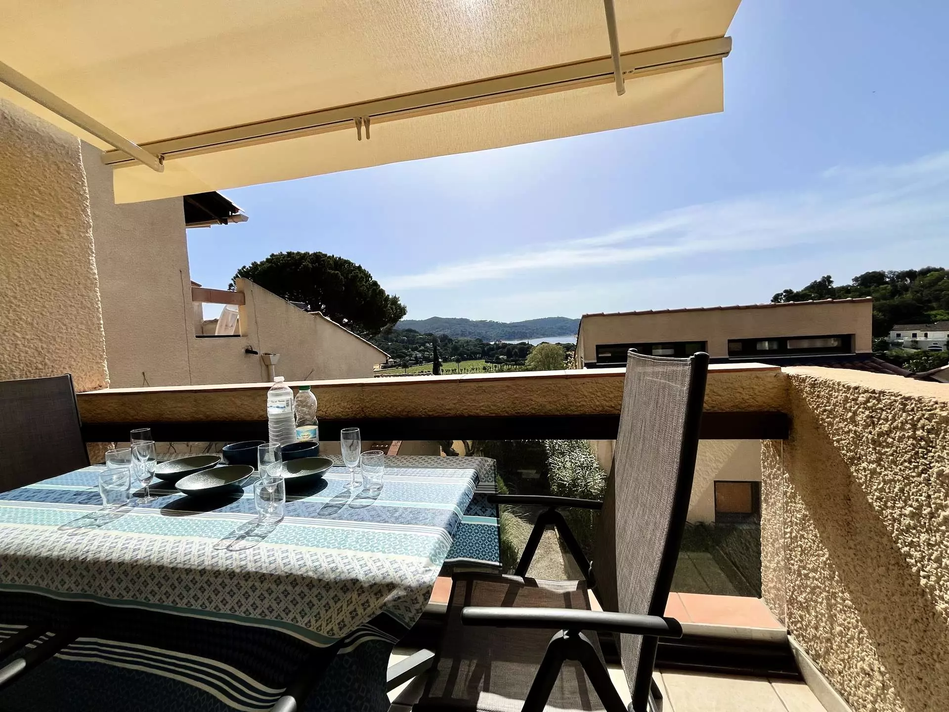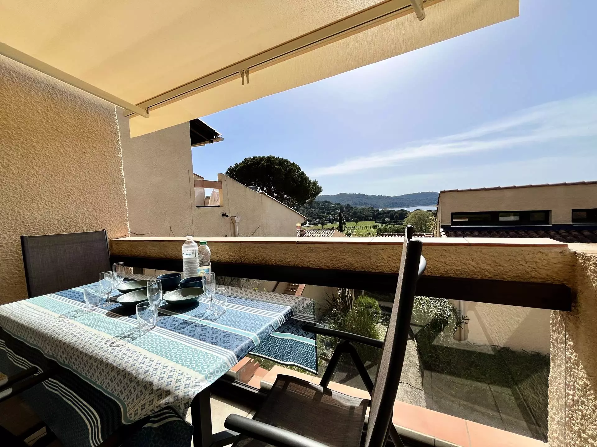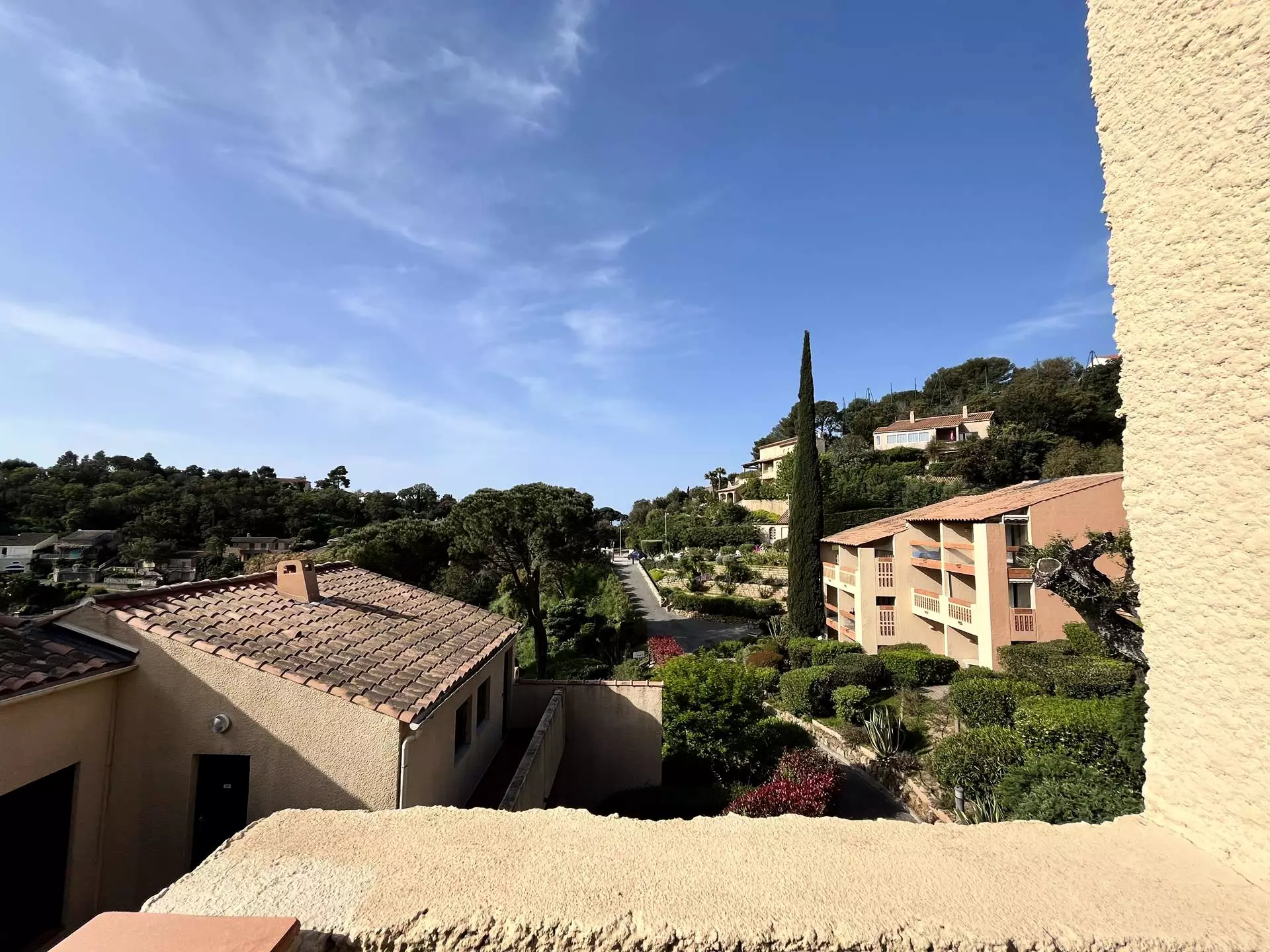 Le plus de cet 'appartement : une terrasse avec vue sur la mer dans une résidence arborée au calme.
