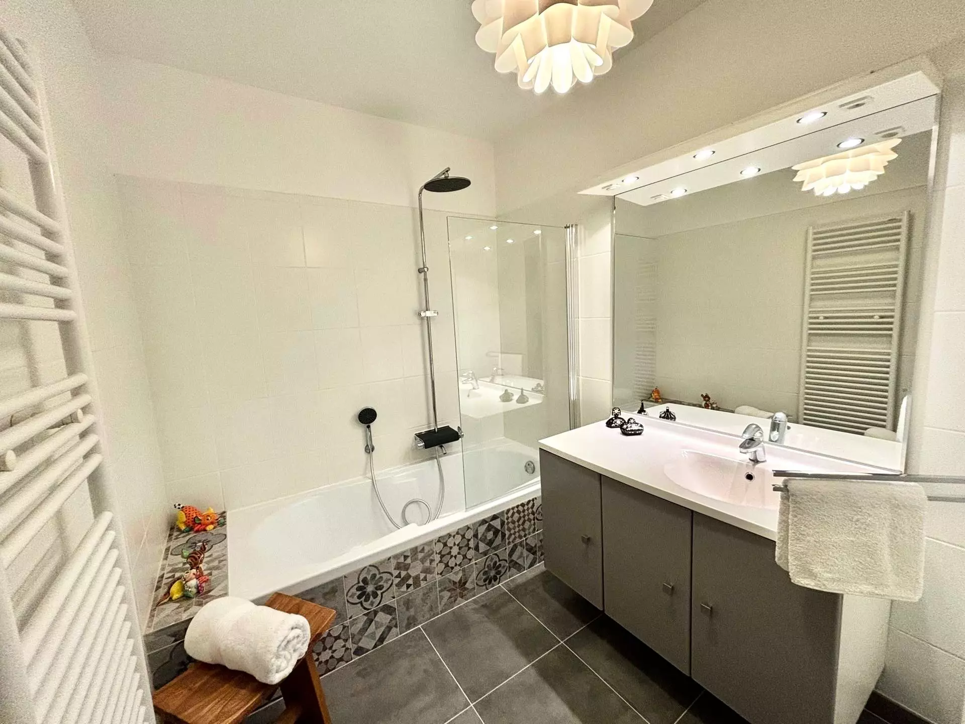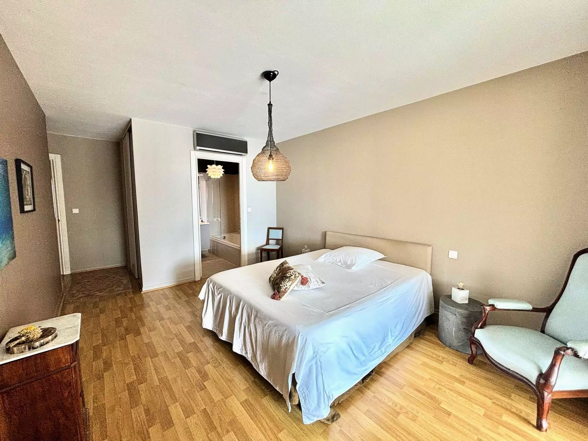 L'appartement est composé comme suit: une entrée, un grand séjour de 50m2 avec cuisine ouverte entièrement équipée, une chambre avec un accès loggia, un WC indépendant. Un espace nuitée avec une salle de bain et WC indépendant et trois autres chambres dont une suite parentale avec sa salle de bain privative. Une vaste terrasse de 90m2, un jardin de 90m2 agrémenté avec barbecue bras zéro complètent ce bien.