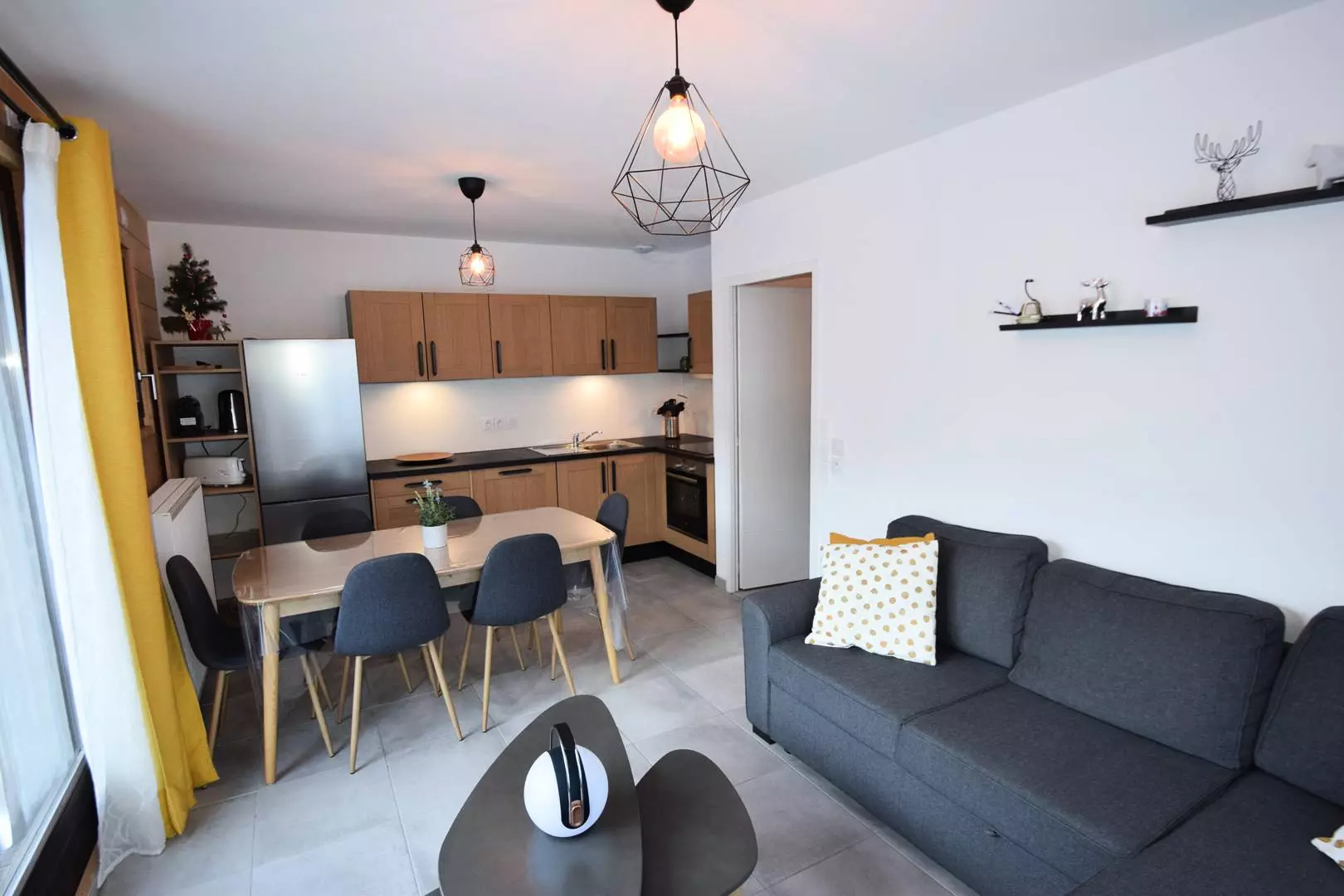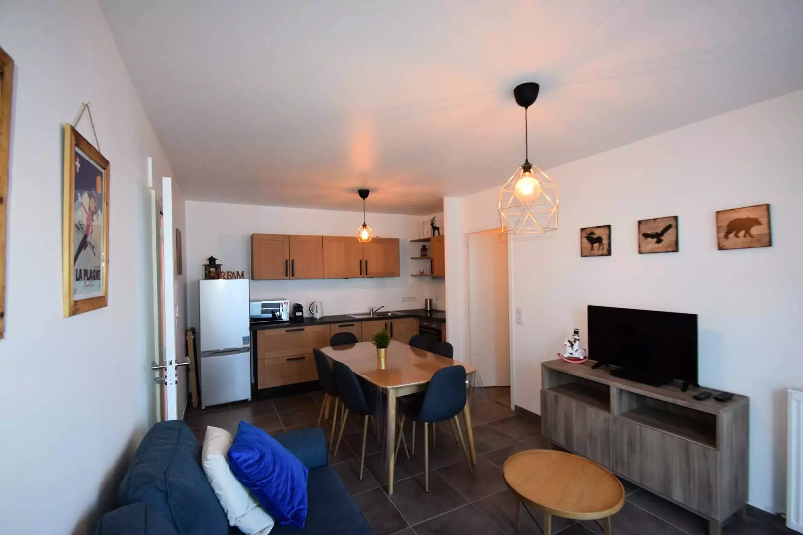 Cuisine : 3 plaques vitro-céramiques, four traditionnel, micro-ondes, réfrigérateur + partie congélateur, lave-vaisselle, cafetière Nespresso.