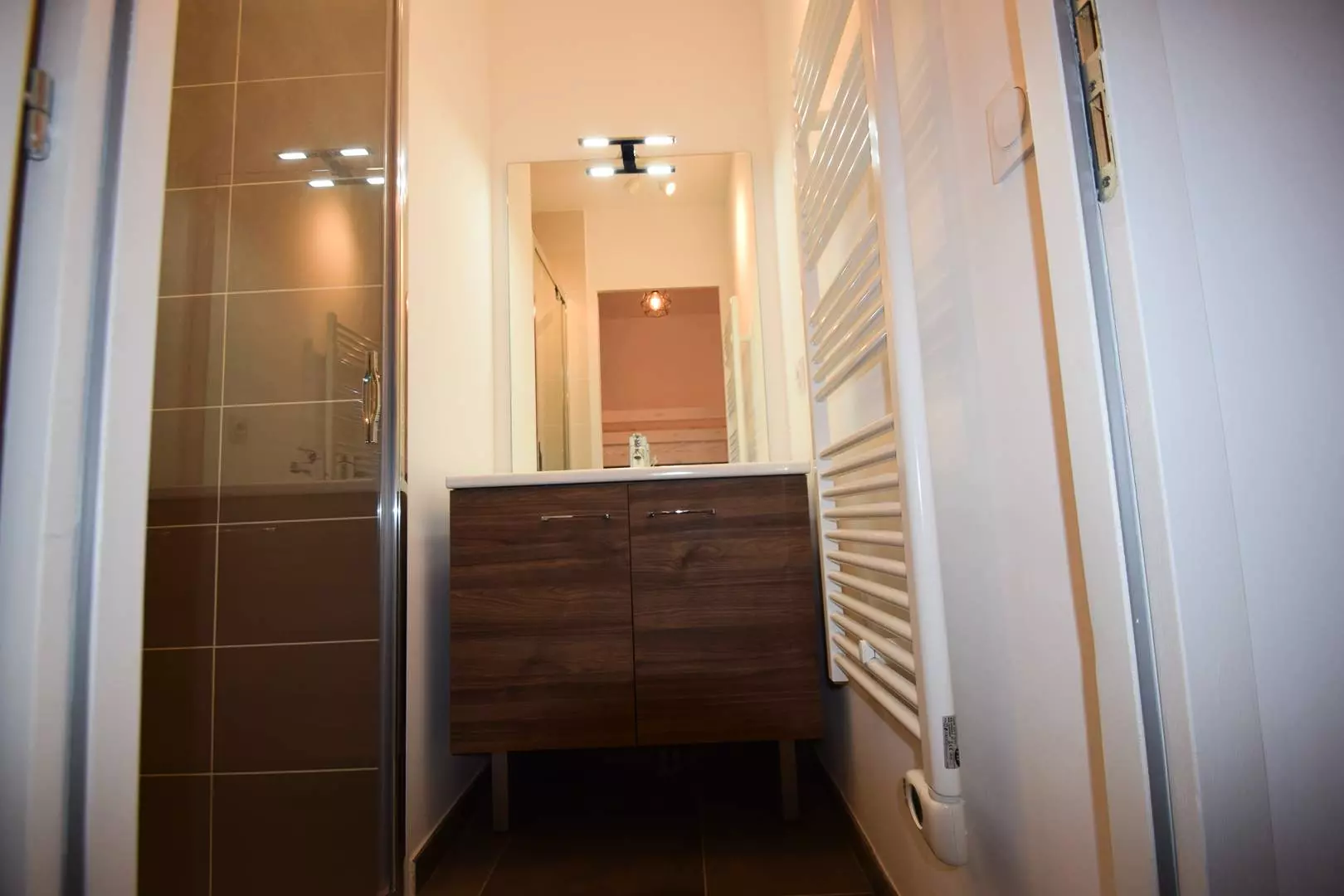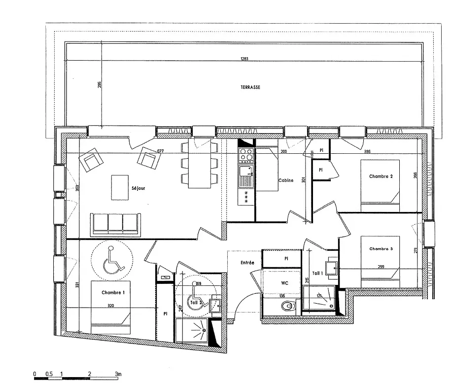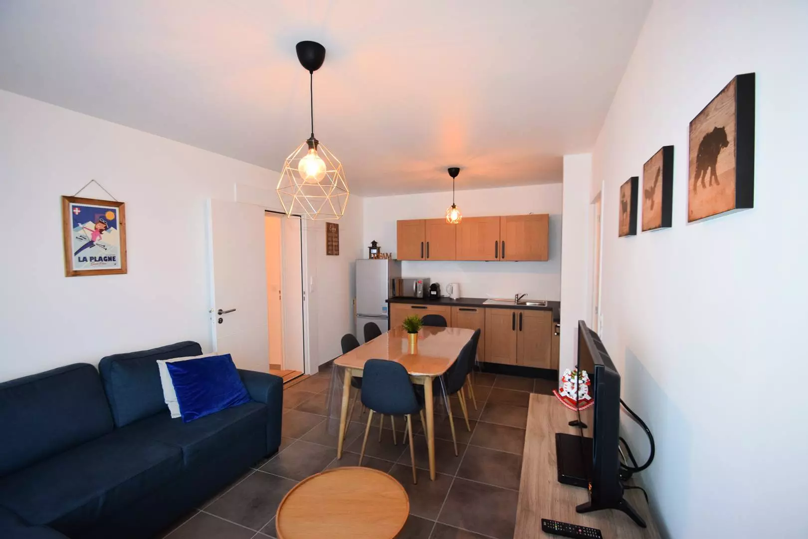 Appartement 3 Pièces pour 4/6 personnes 57m² environ balcon + terrasse exposition Est et Sud Ouest - Accès au rez de chaussée de la résidence - Cuisine : 3 plaques vitro-céramiques, four traditionnel, micro-ondes, réfrigérateur + partie congélateur, lave-vaisselle, cafetière Nespresso. Séjour : coin repas, coin salon avec canapé d'angle couchage pour 2 personnes, TV - Chambre 1 : 2 lits superposés - Chambre 2 : 1 lit double - 2 salles de douche. 1 WC séparé.Llave-linge.