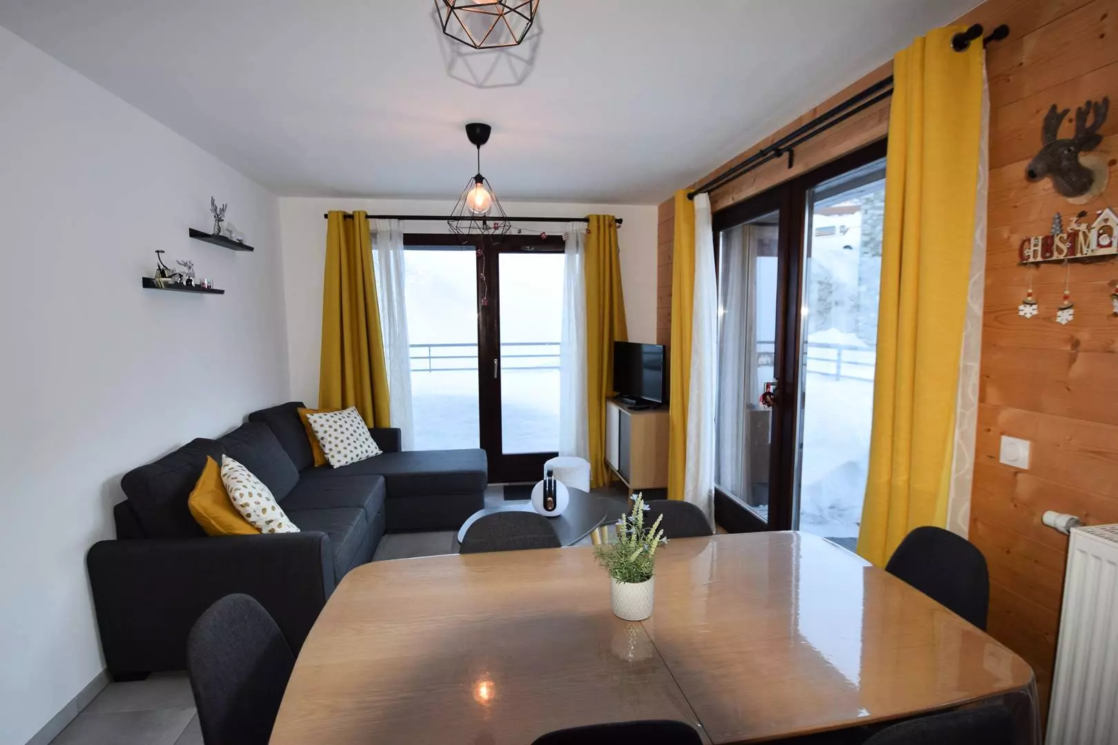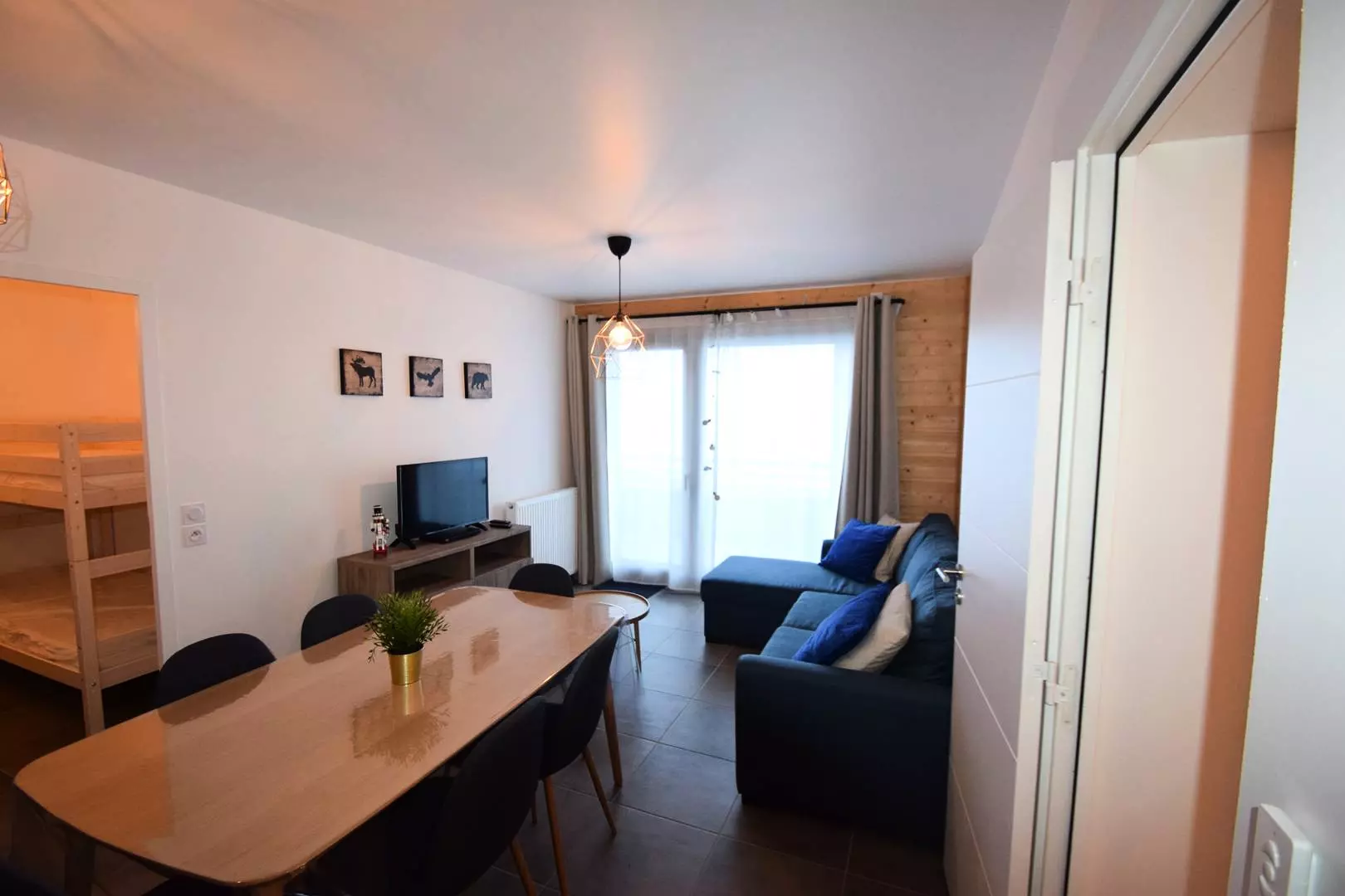 Séjour : coin repas, coin salon avec canapé d'angle couchage 2 personnes, TV - Chambre 1 : 2 lits superposés - Chambre 2 : 1 lit double - 2 Lits superposés dans couloir - 2 salles de douche dont 1 avec sèche-linge. 1 WC séparé.Literie : 4 couettes 1p et 2 couettes 2p. Casier à ski n°29 au 3ème étage - Appartement de très bon confort situé à environ 150m des pistes. En option : ménage de fin de séjour, draps et serviettes et forfaits ski - Animaux non admis. Appt non fumeur. Possibilité de louer l'appartement 404 à côté qui peut accueillir 4 à 6 personnes.