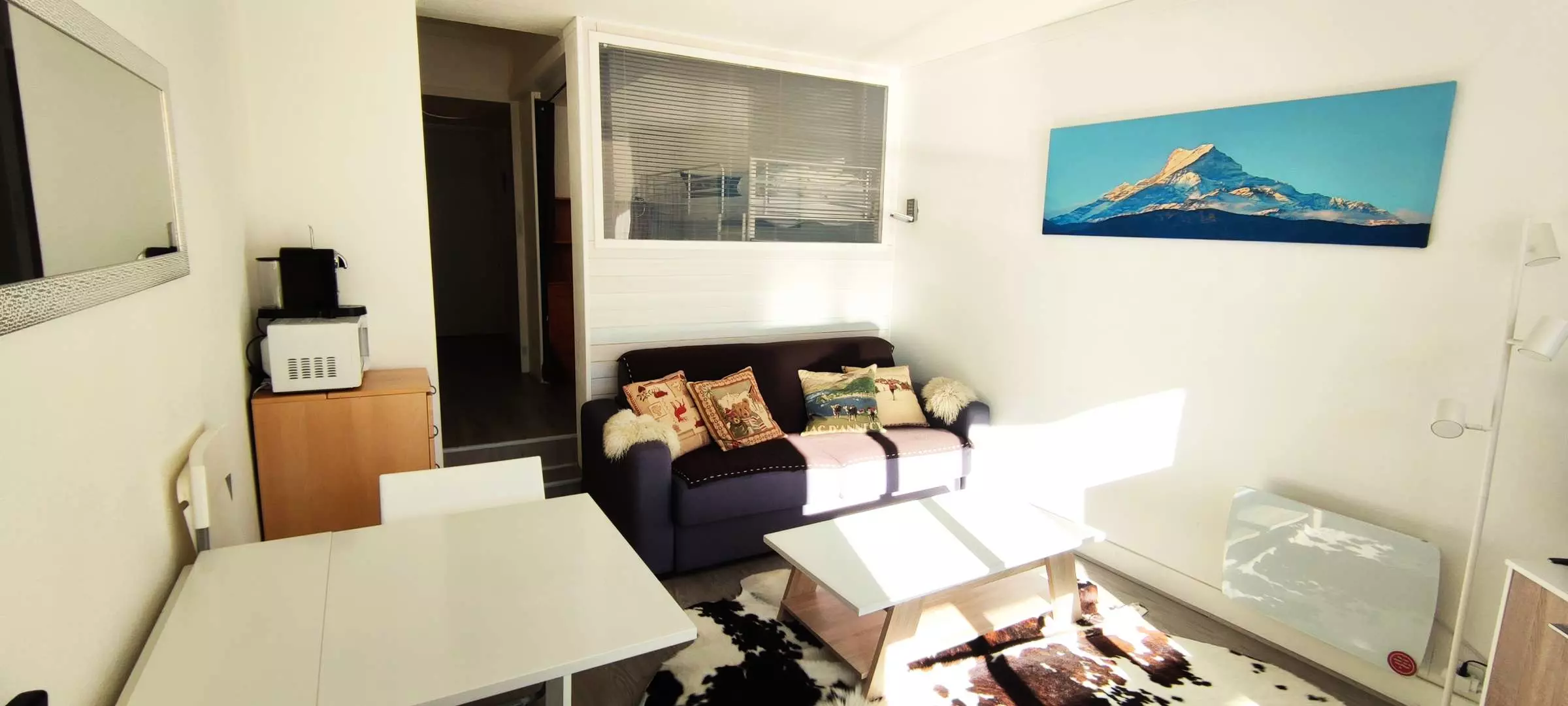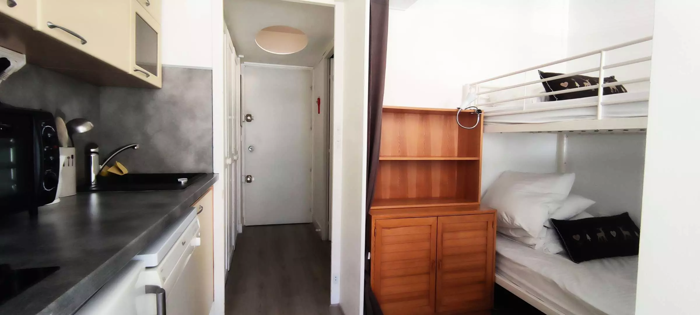 LBE11 studio pour 4 personnes, situé dans un immeuble au cœur de la station dans l'ensemble "Front de Neige" (centre station), au pied des pistes, au dessus de la Galerie Marchande et à proximité immédiate des activités sportives. Situé au 6ème étage avec ascenseur, casier à ski. A côté du grand parking P2.