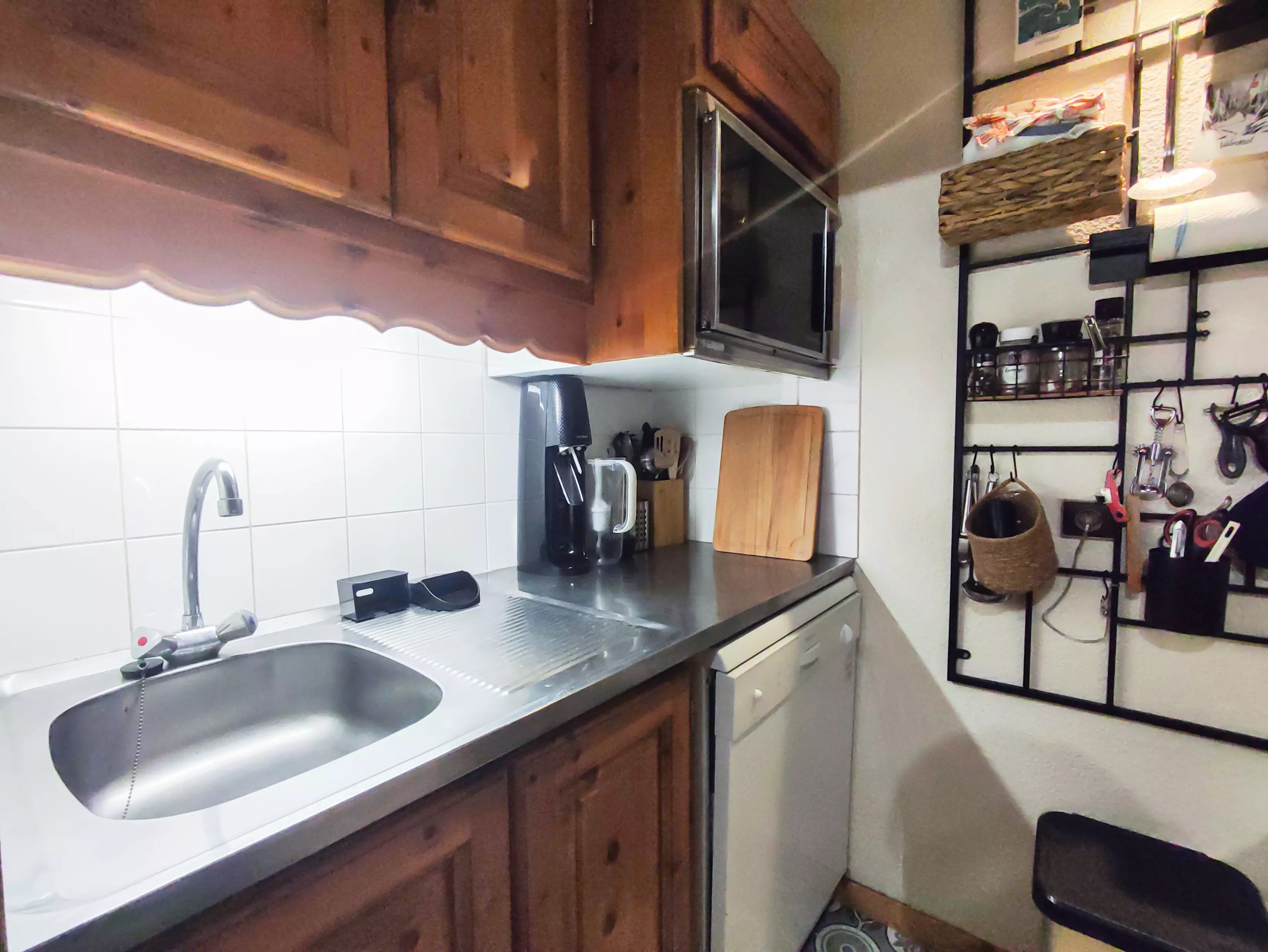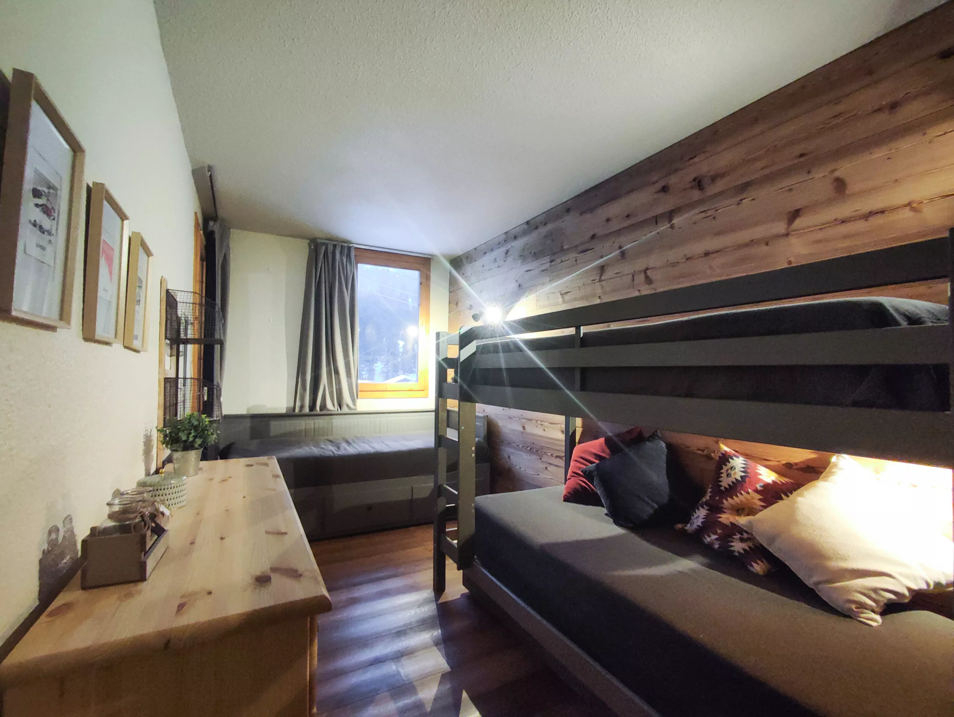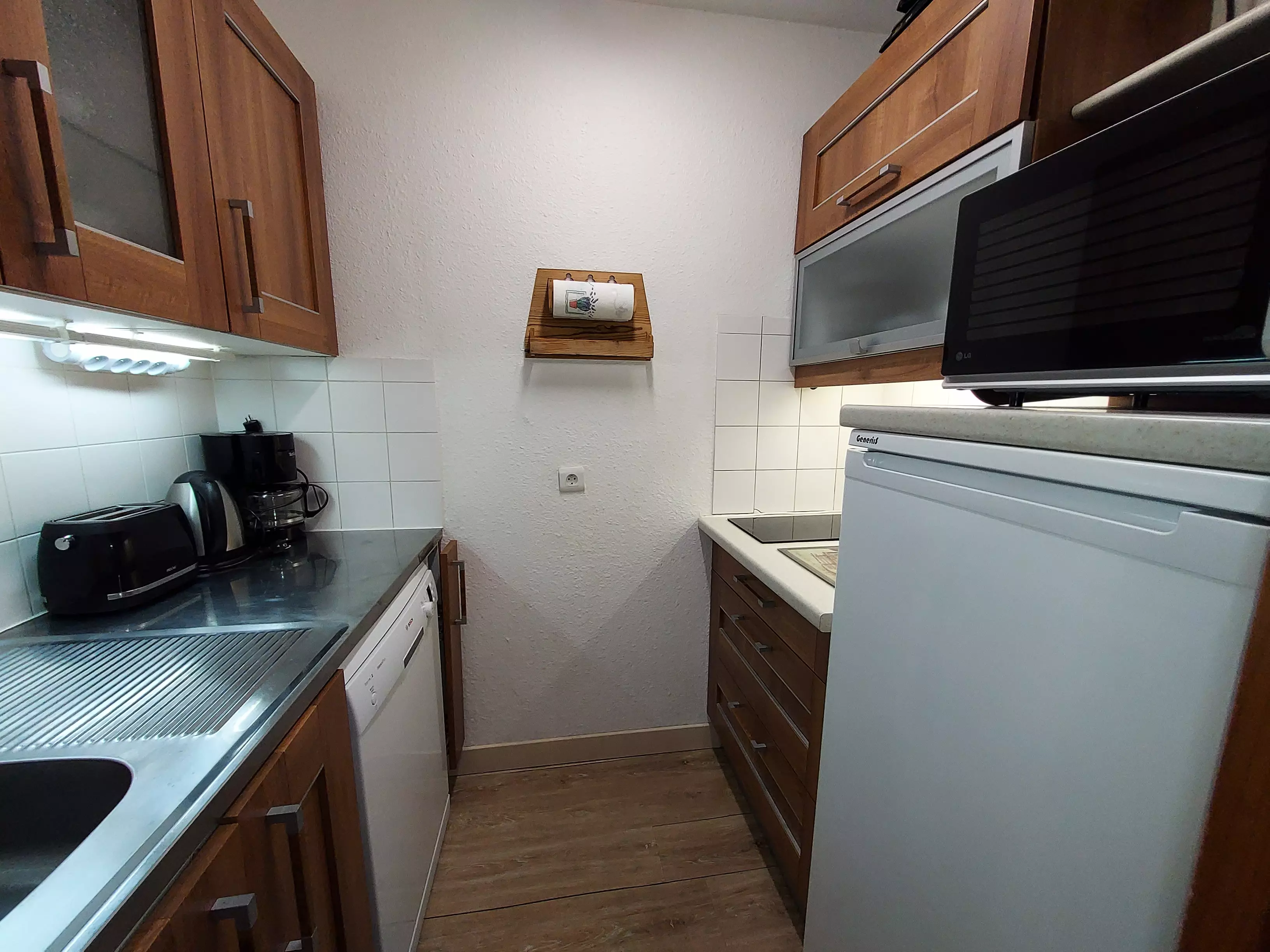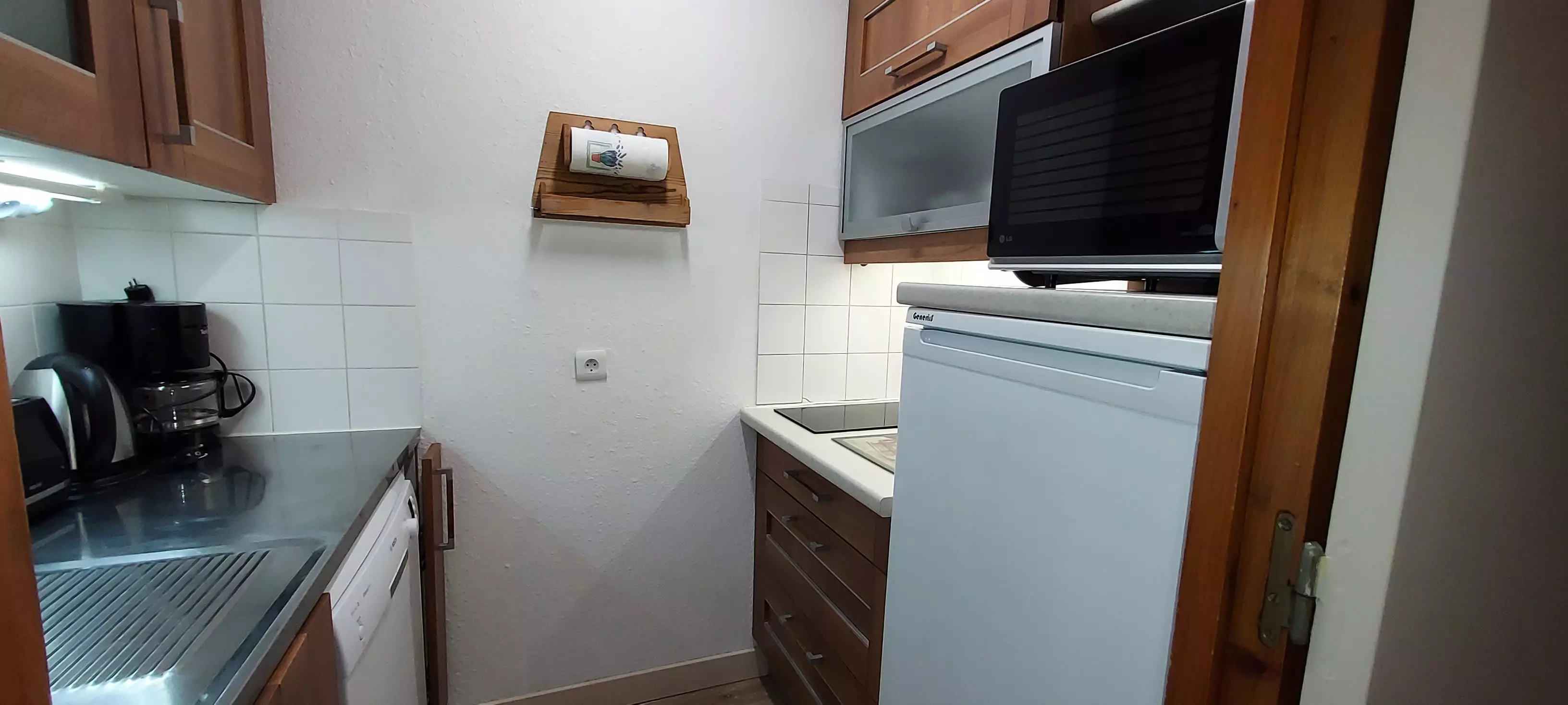 L'appartement : Séjour avec 2 banquettes lit simples et espace repas. Cuisine indépendante avec lave-vaisselle, four et four micro-ondes.Une chambre avec 1 ensemble de lits superposés. et un li simple. Sols entièrement carrelés. Salle de bains avec baignoire, toilettes indépendantes, terrasse sur piste.