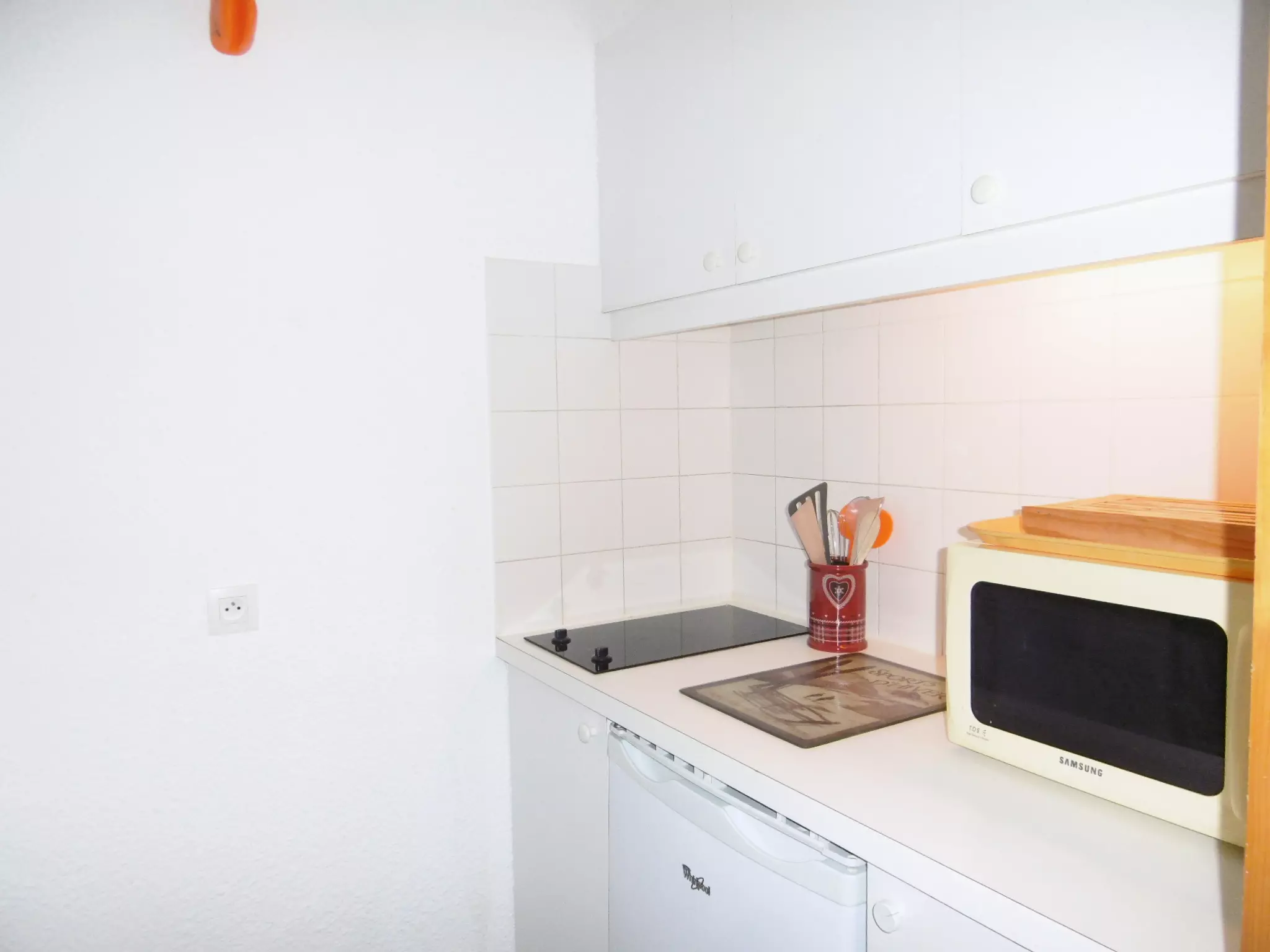 L'appartement : Un séjour équipé télévision et espace repas. Cuisine indépendante , four et four micro-ondes, lave vaisselle . Une entrée avec lave-linge.