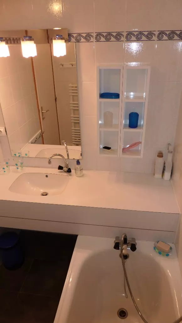 Sols stratifiés pour le séjour. et pvc pour les autres pièces. Salle de bains avec baignoire et lave linge , toilettes indépendantes, terrasse sur pistes.