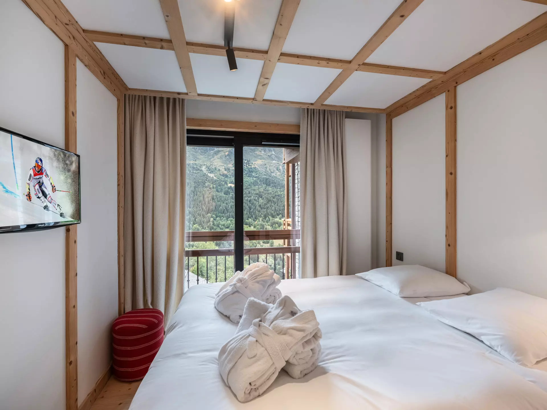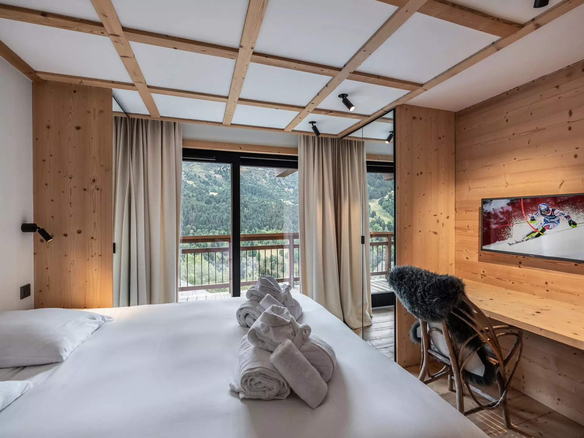 Le chalet mitoyen "COUDOU LODGE", d'une superficie d'environ 400m², peut accueillir 10 adultes grâce à ses 5 chambres en-suite.