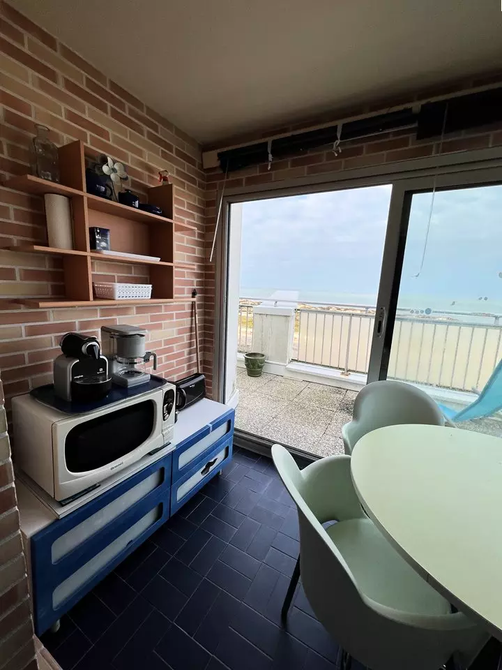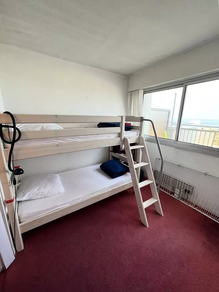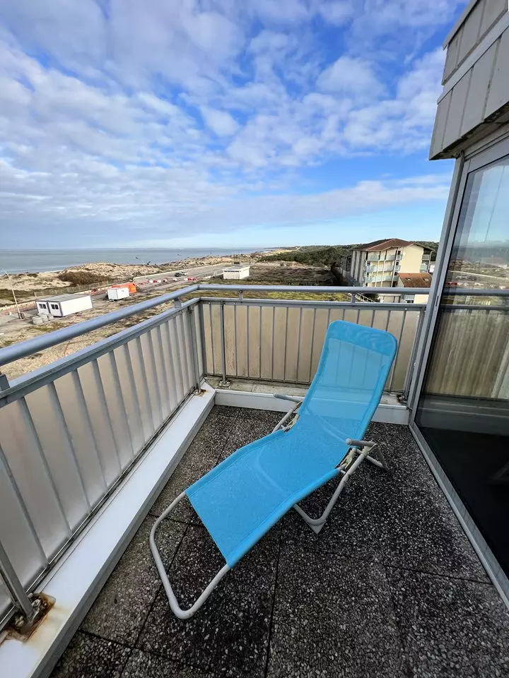 Venez profiter d'une superbe vue sur l'océan et le phare de Cordouan depuis cet appartement situé au 3ème étage de la résidence Marine à Soulac/Mer. Cet appartement se compose d'une entrée, un coin cuisine, un salon avec canapé/lit, une véranda avec vue sur l'océan faisant office de coin repas, une chambre avec deux lits simples en 90 cm superposés, une salle de bains, un WC. Son balcon équipé de 2 chaises longues vous offre un moment de détente au soleil. Place de parking. Caution à régler sur place. Chèques Vacances Acceptés.