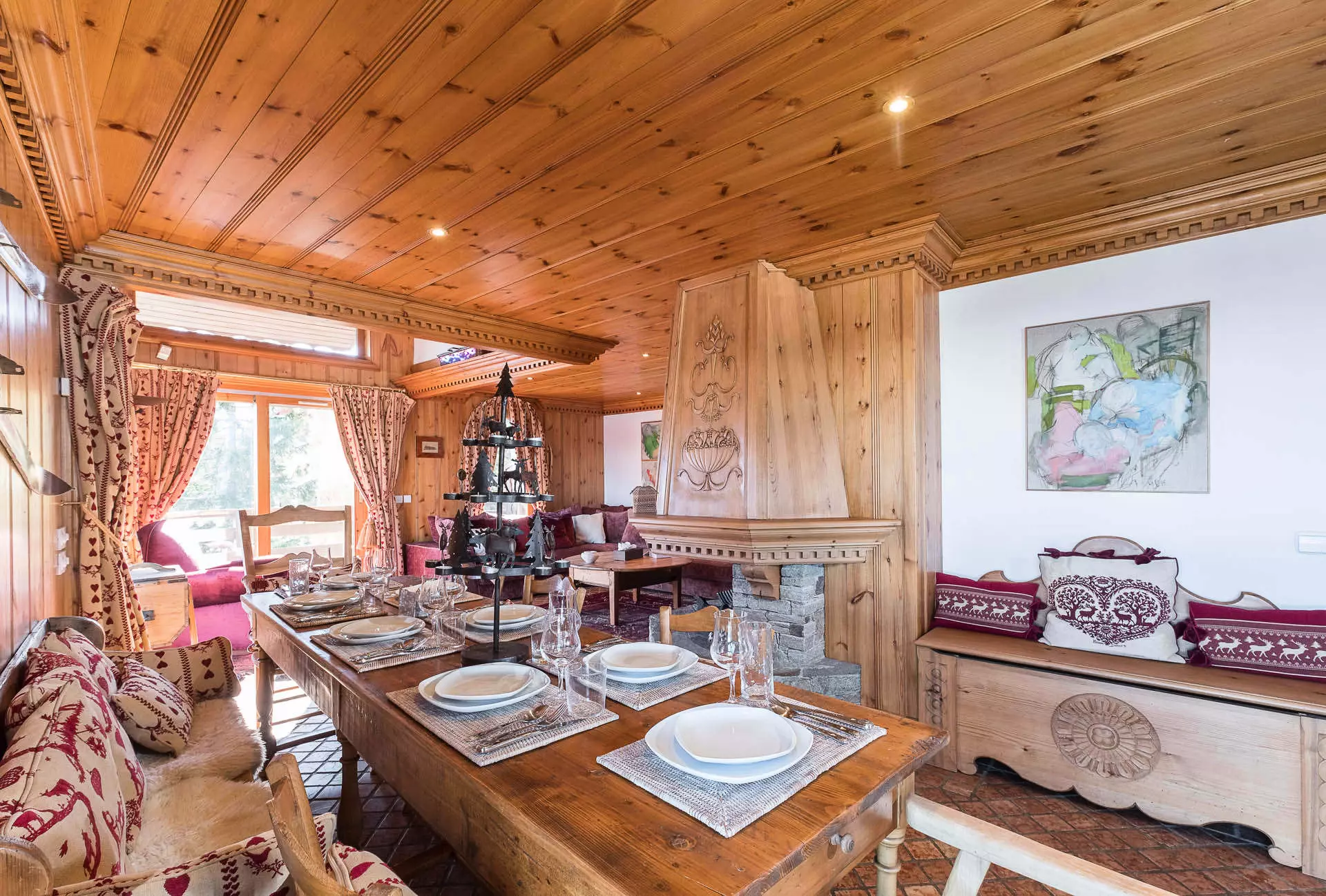 Appartement de prestige de 90m2 dans quartier prisé des Chenus. Possibilité de partir et de revenir à l'appartement en ski depuis la piste du Plantrey. A 650m du centre de Courchevel 1850.