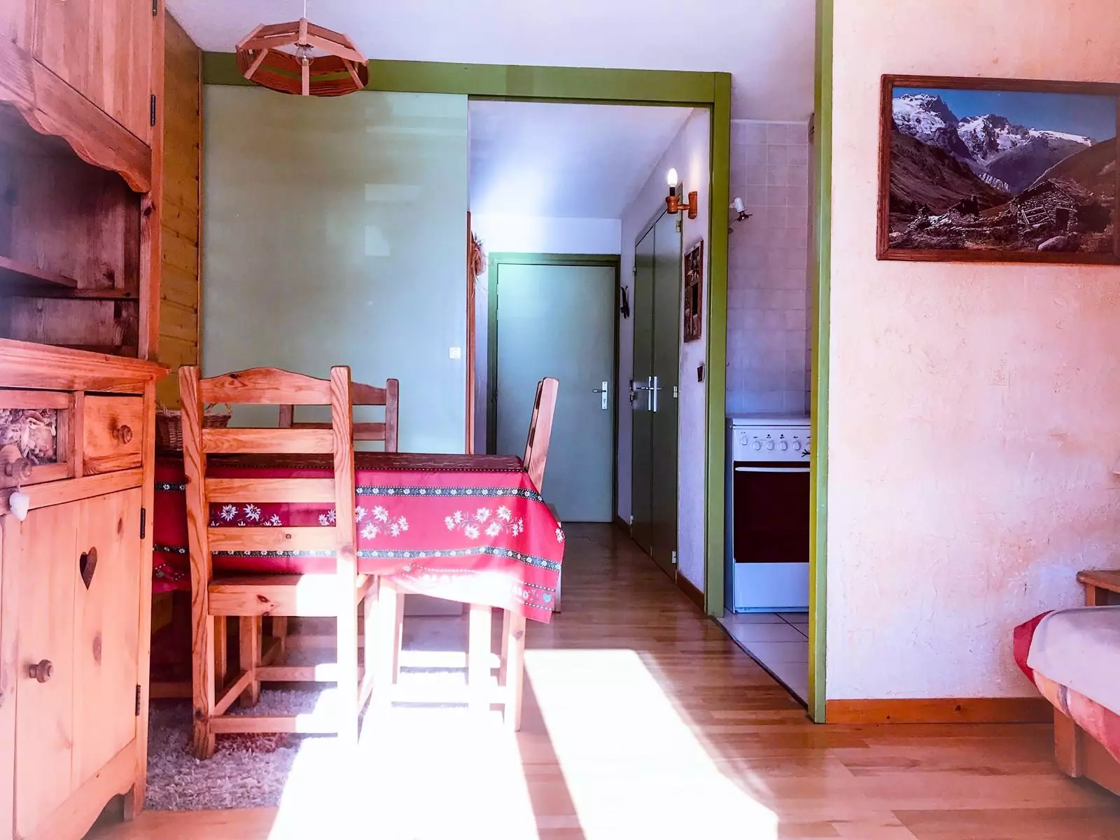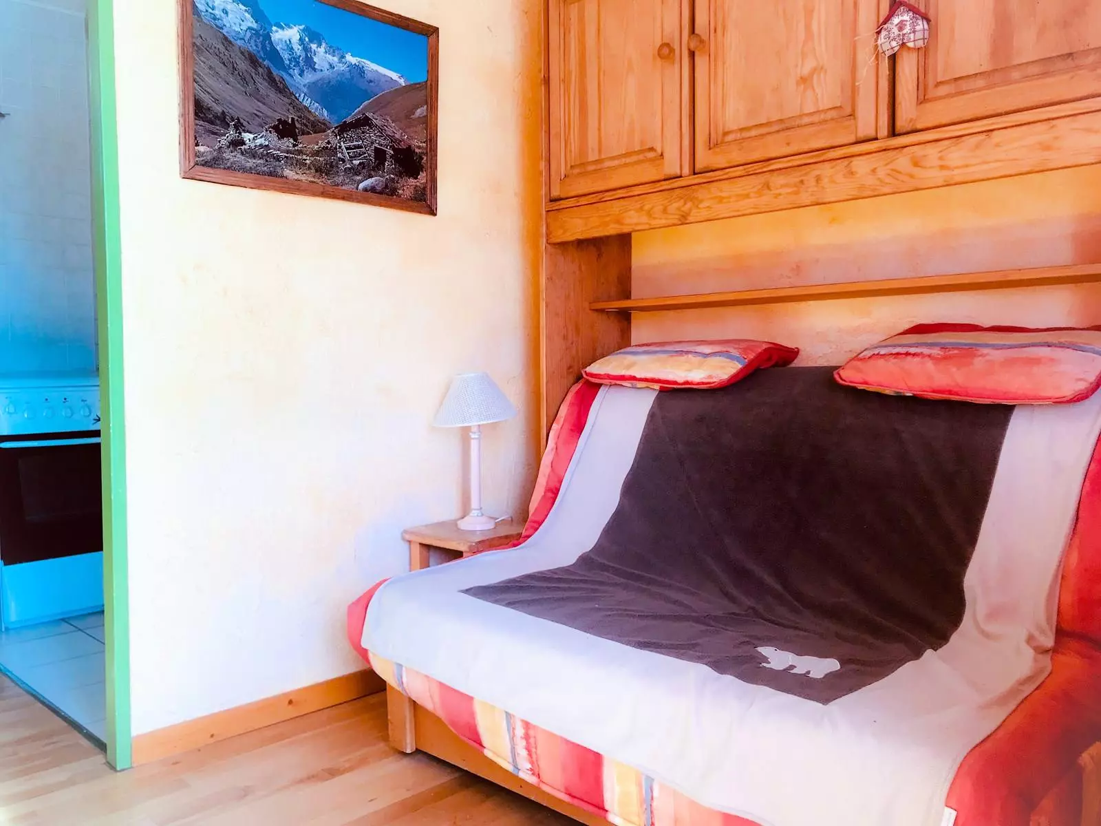 Au sein du lieudit "Village 1800", sur les hauteurs de la station des 2 Alpes, dans un quartier proche de ses commerces, coquet appartement, lumineux et à l'ambiance montagne, présentant: un coin-montagne avec deux lits-superposés rabatables sur le mur pour davantage d'espace, une salle-de-bains séparée des wc, une pièce-à-vivre (séparée du coin-montagne par une porte coulissante), ensoleillée et chaleurseuement décorée, un coin-cuisine fonctionnel et équipé, et un balcon SUD pour une vue imprenable sur les montagnes.