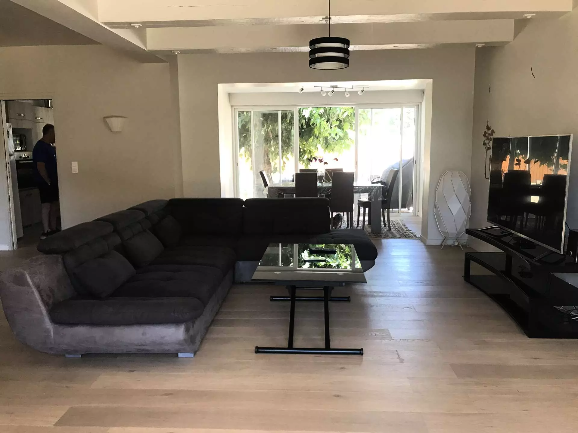 La maison comprend au rez-de-chaussée une entrée desservant un vaste salon de plus de 40m2, une salle à manger attenante, une cuisine indépendante entièrement équipée, une salle d'eau avec douche à l'italienne, un WC, une buanderie.