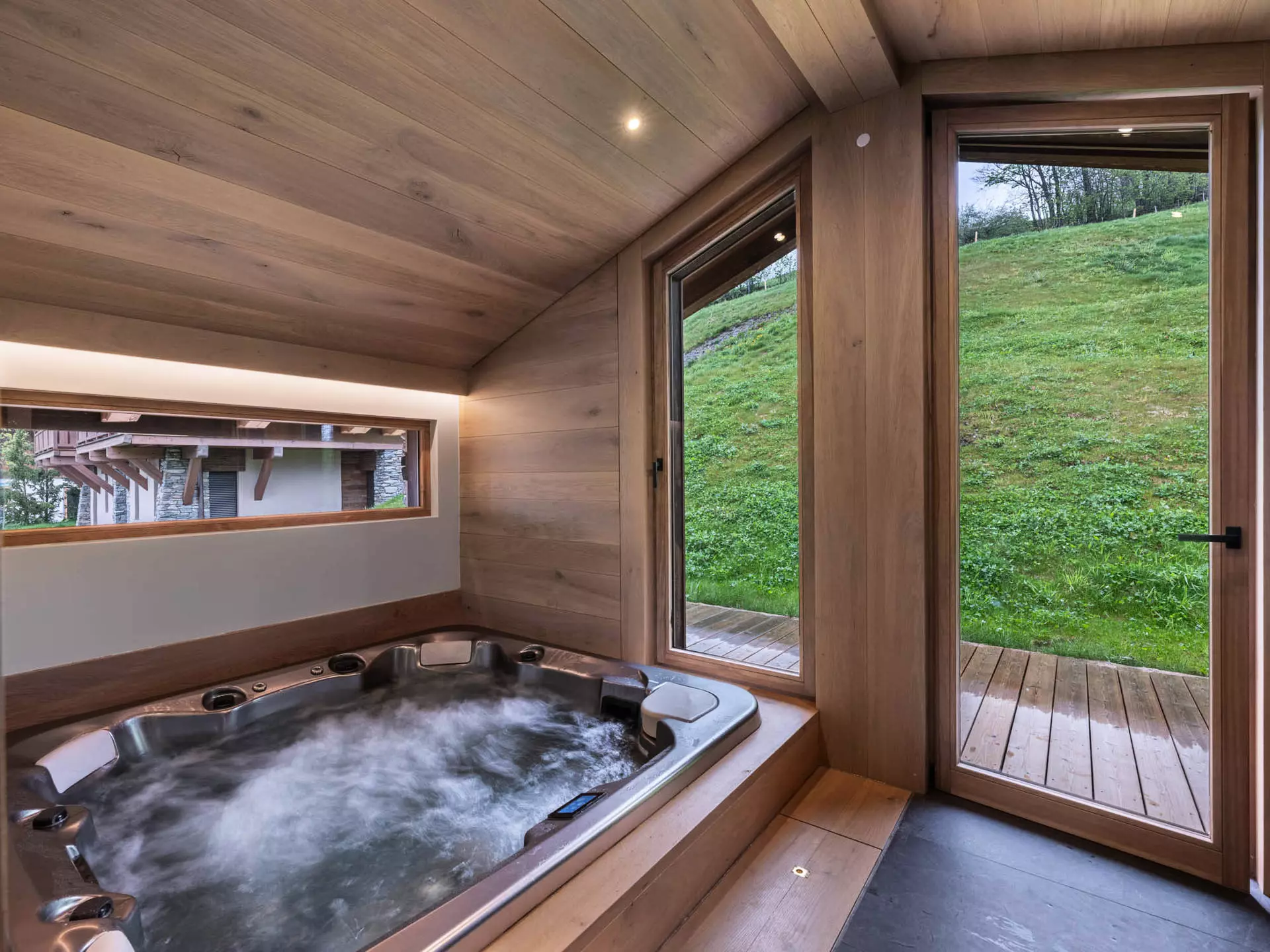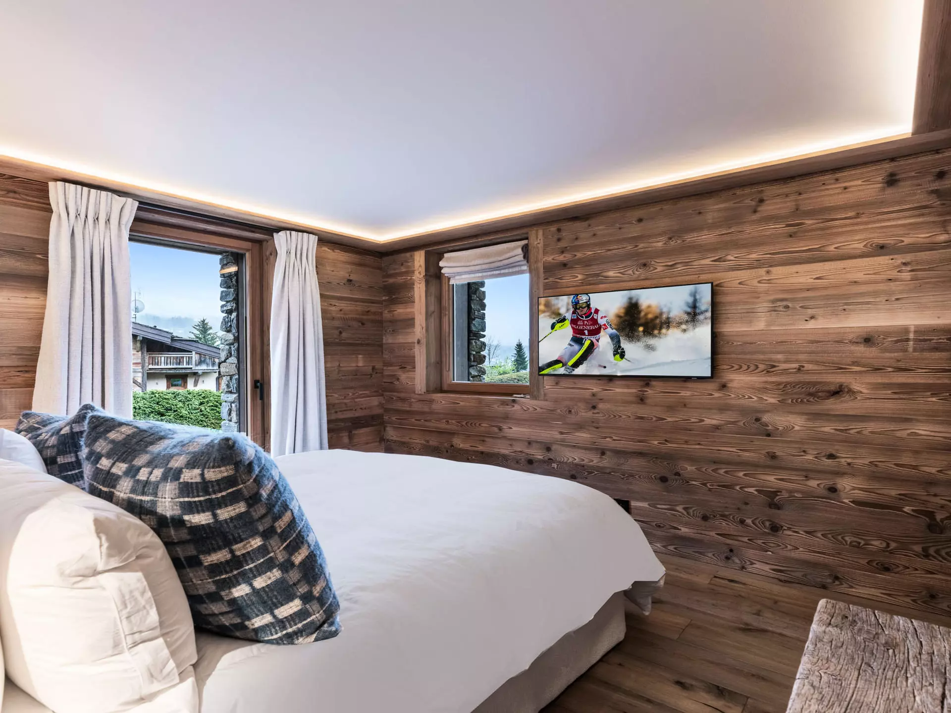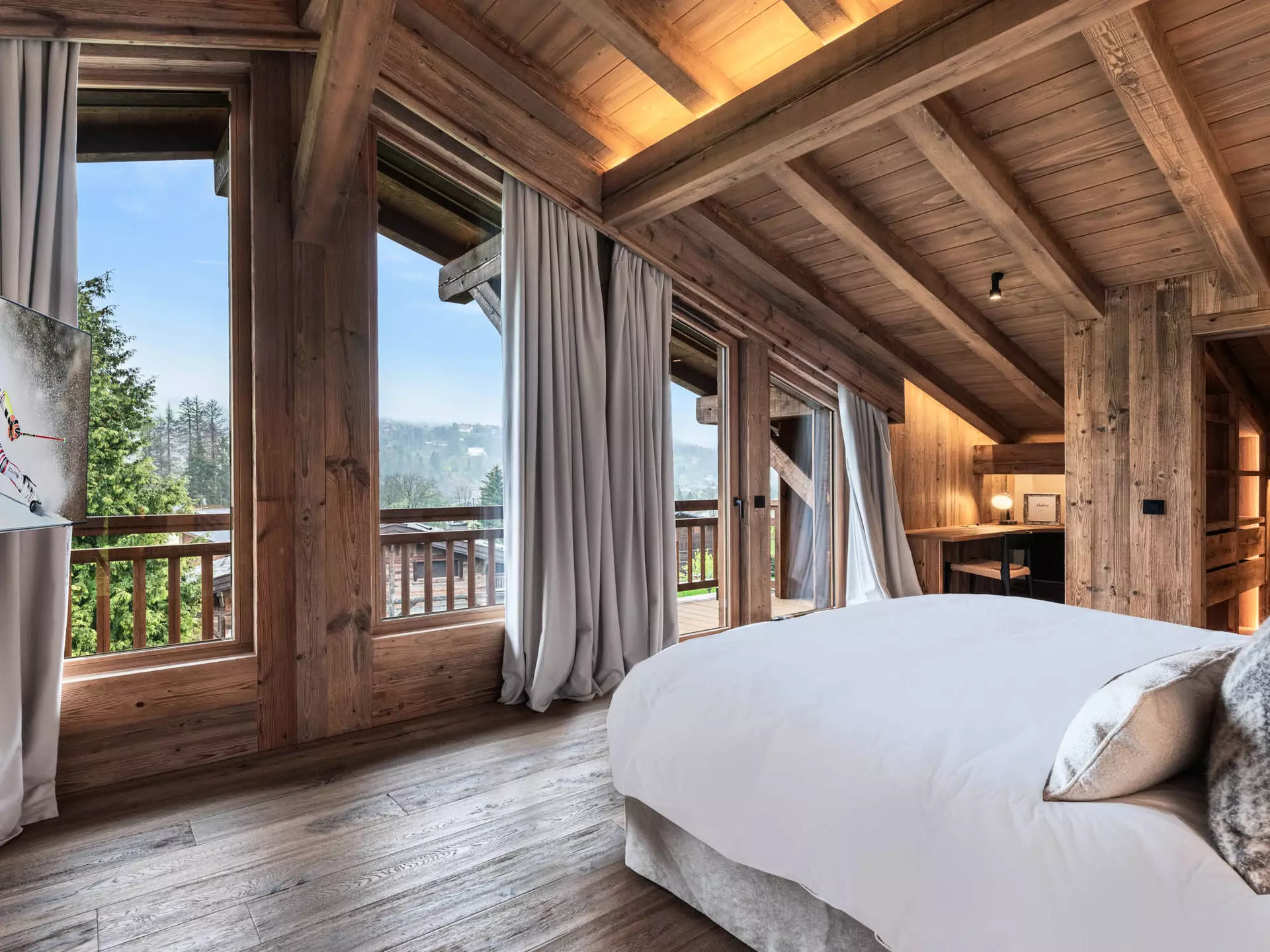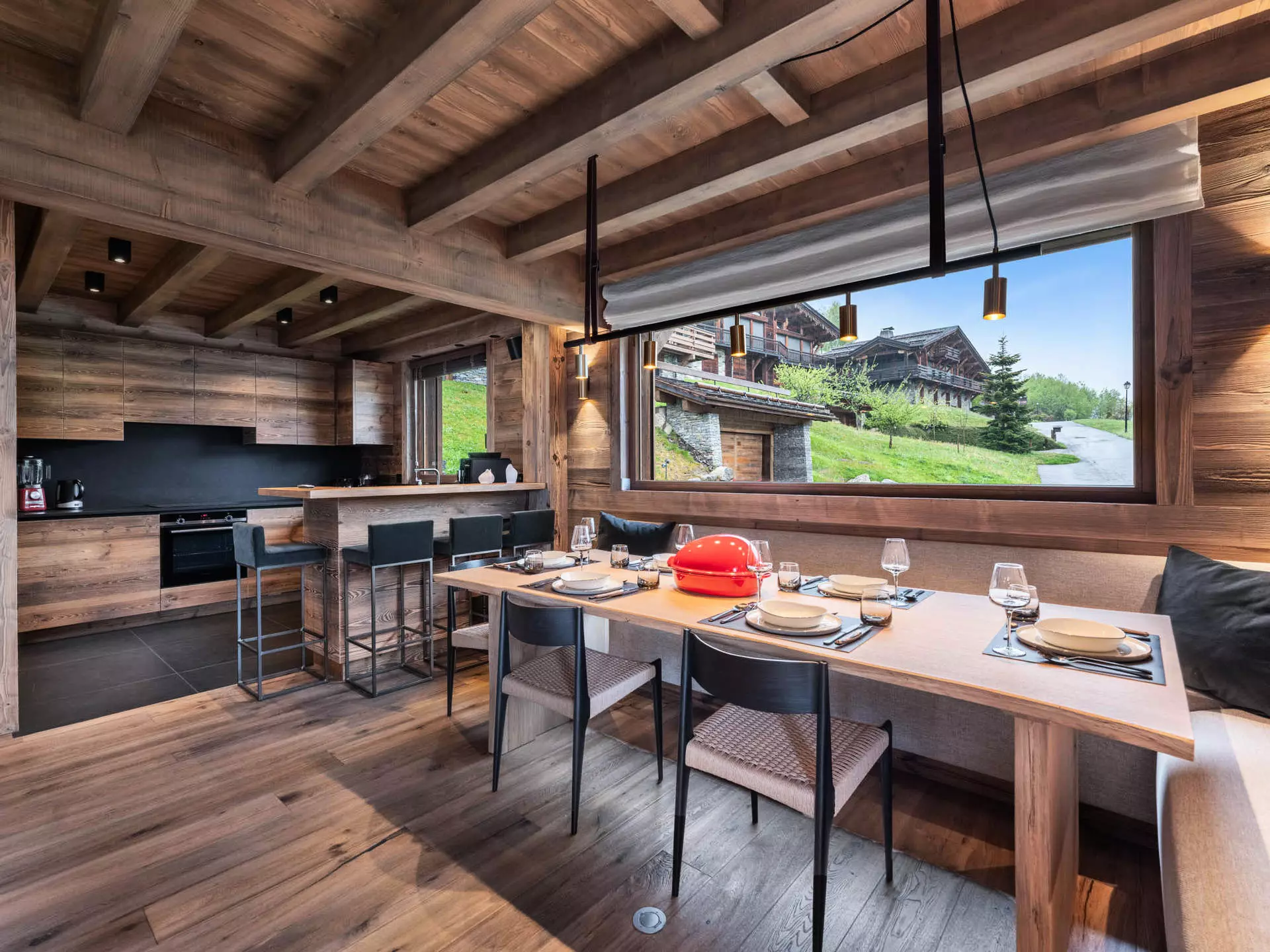Le Chalet Myosotis est situé dans un secteur calme à Demi-Quartier. D'une superficie de 210m², ce chalet peut accueillir confortablement 10 adultes grâce à ces 5 chambres doubles en suite. Sa pièce de vie est inondée de lumière et offre de beaux volumes grâce à la cuisine ouverte sur la salle à manger. L'ensemble des convives pourront se retrouver autour d'une belle table ou encore dans le coin salon. Ce chalet dispose d'un garage fermé, d'un ski room, d'une salle cinéma et une cheminée à bois dans le salon.