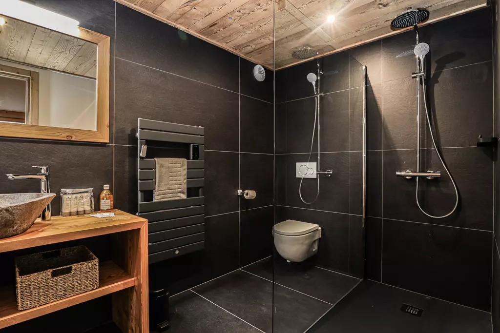 Chalet neuf haut standing sur 3 niveaux avec vue imprenable sur les montagnes, situé dans un quartier calme de Morzine, à quelques minutes en voiture du centre du village et des remontées mécaniques.