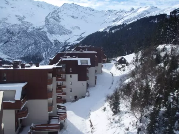 Résidence aux pieds des pistes à 200 mètres de la première remontée mécanique et à 50 mètres de la supérette, sortie à l'arrière de la résidence, retour skis aux pieds (sous réserve de l'enneigement).