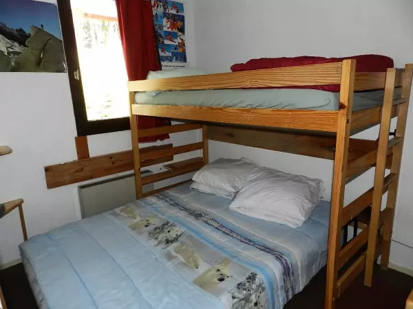 PETIT 2 PIECES,loué en studio cabine pour 4 personnes, environ 24m², à 300 m des pistes et ESF, vue pistes, exposition OUEST, avec balcon, au 5° étage, avec un ascenseur.