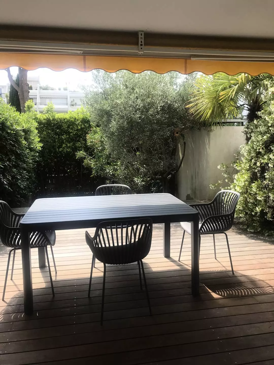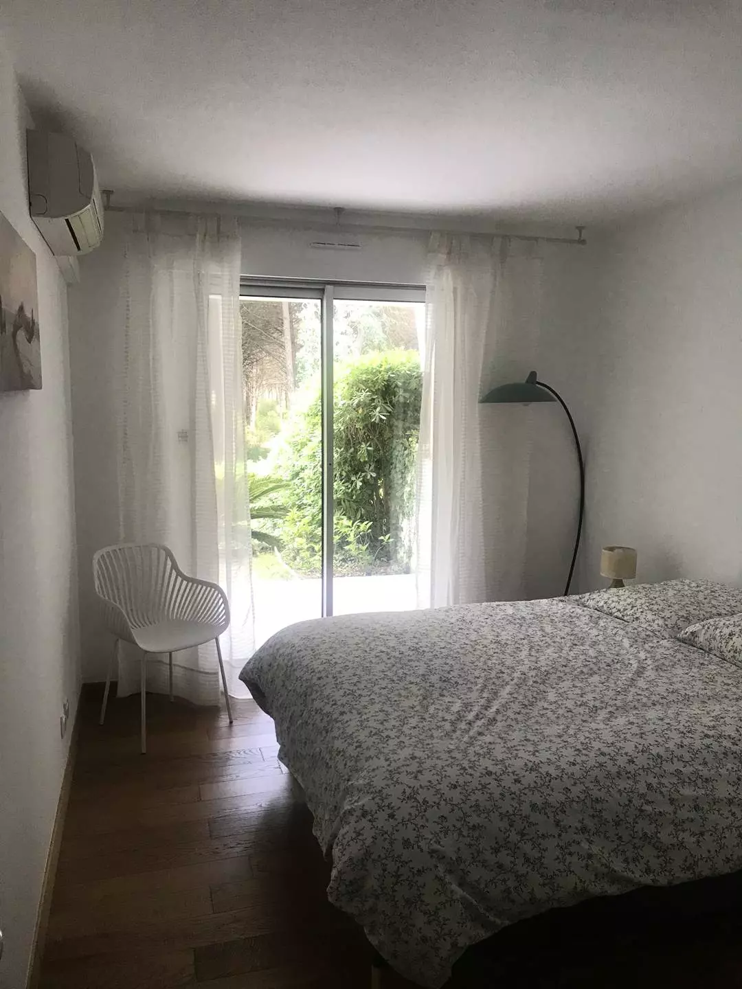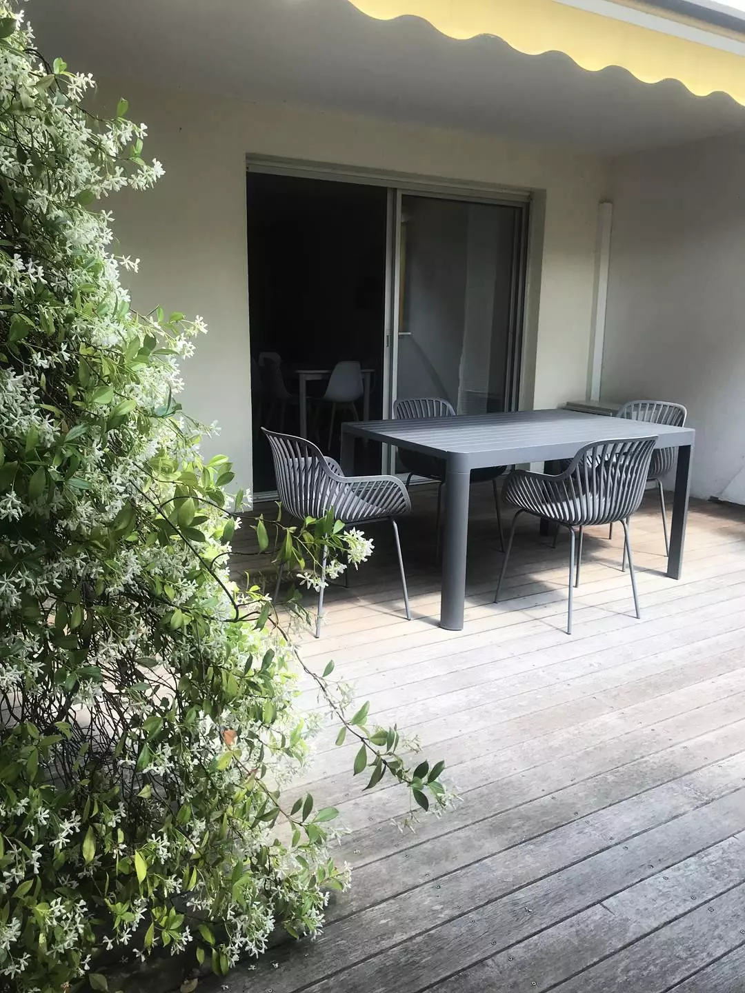 Dans une résidence de standing sécurisée, un appartement de type 3 au rez de chaussée avec jardin privatif, terrasse avec vue sur la forêt, comprenant une entrée, grand séjour, salle à manger avec cuisine équipée aménagée de standing, terrasse ombragée sur jardin, deux chambres donnant sur terrasse, une salle d'eau avec douche italienne, un WC séparé