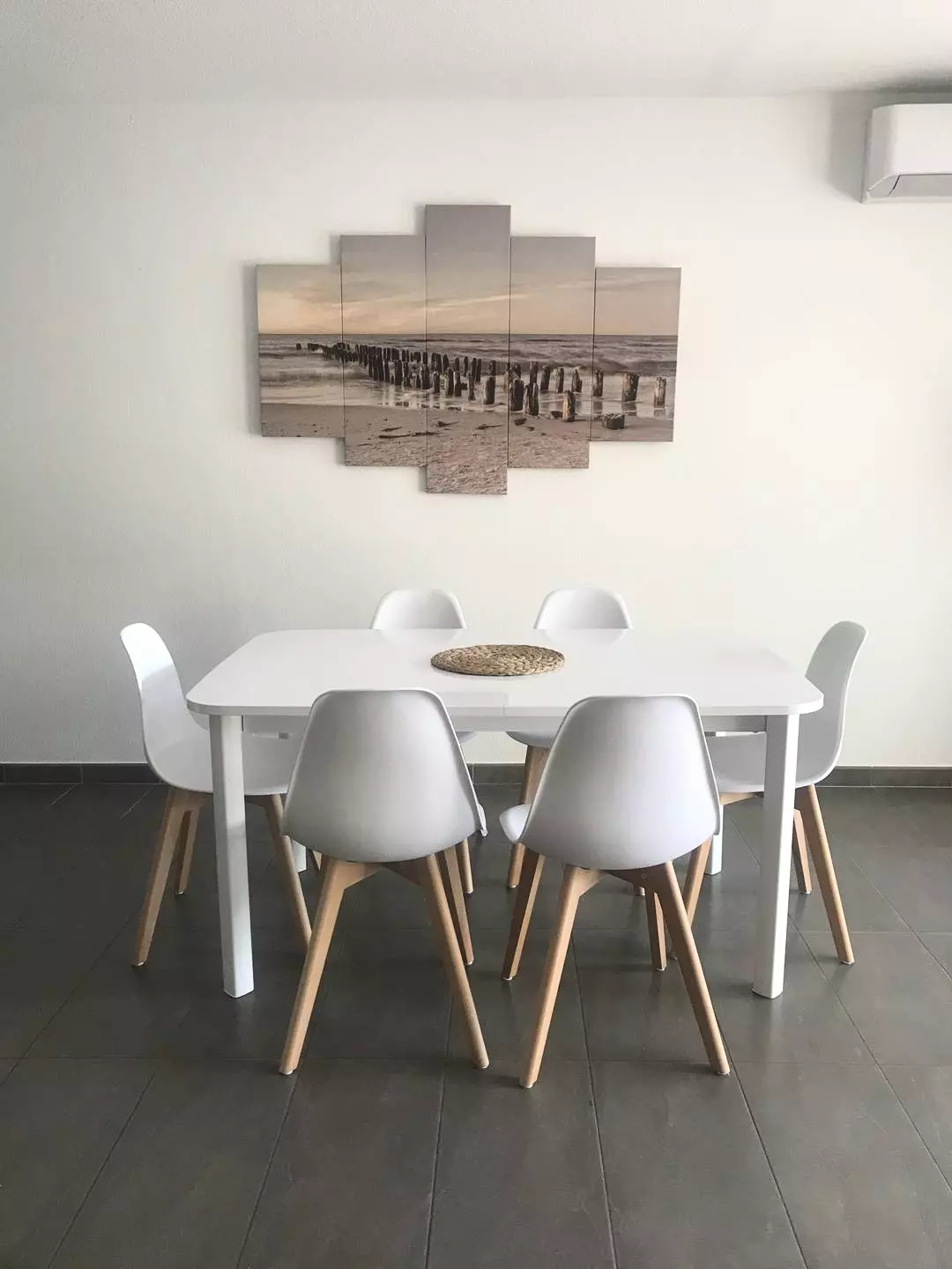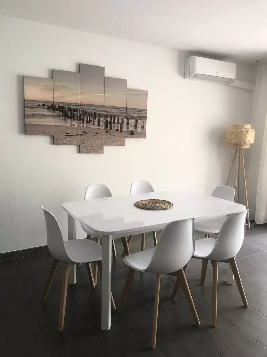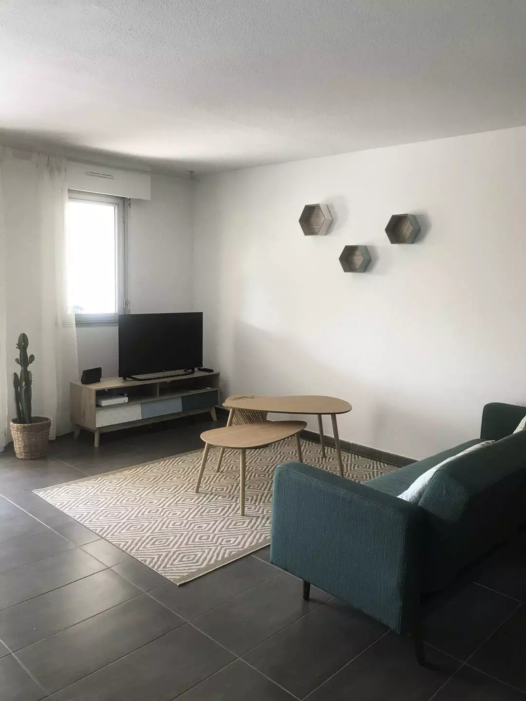lave vaisselle, grille pain, bouilloire, cafetière senseo, hotte, micro ondes, four, télévision, aspirateur, étendoir, lave linge, climatisation, deux poubelles de cuisine, 3 bloque porte, 1 jetée de canapé, tringles et rideaux dans le salon et la chambre, 1 panier à linge, 1 bassine, 2 plateaux de service