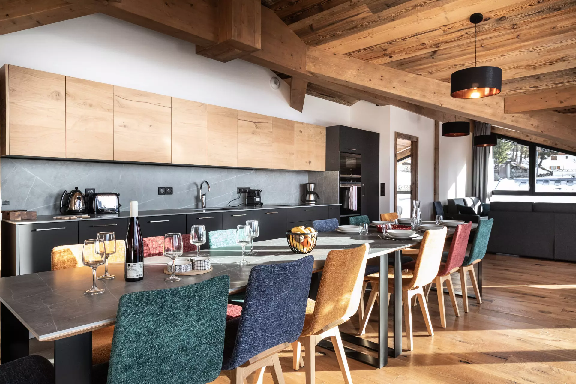 Appartement 3 pièces pour 8 personnes. Ce logement élégant offre tout le confort nécessaire pour des vacances mémorables en famille ou entre amis. Profitez d'une sublime vue, orientée plein sud, sur toute la vallée de la Tarentaise.