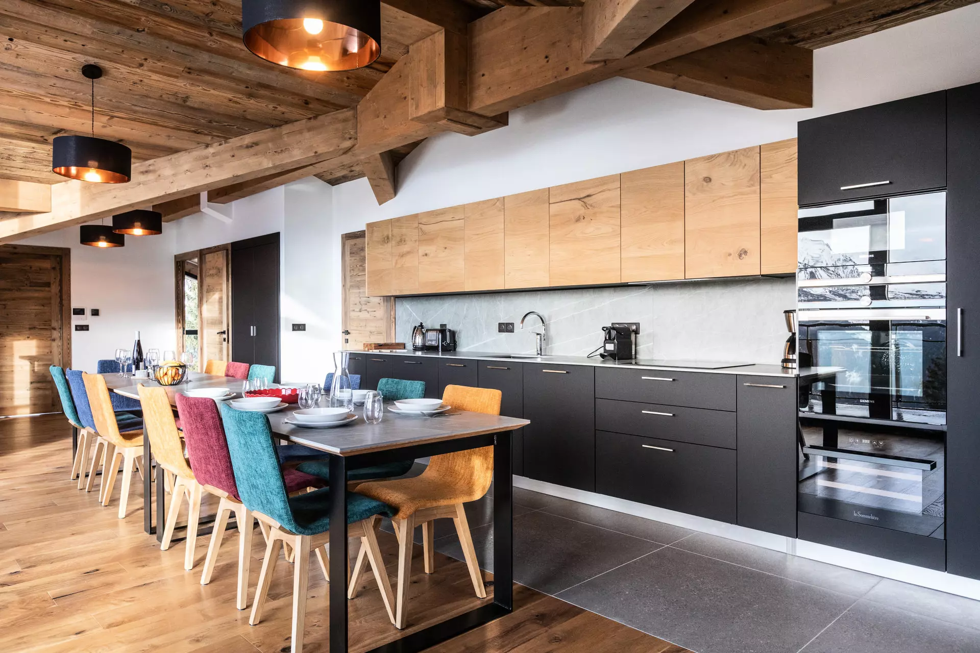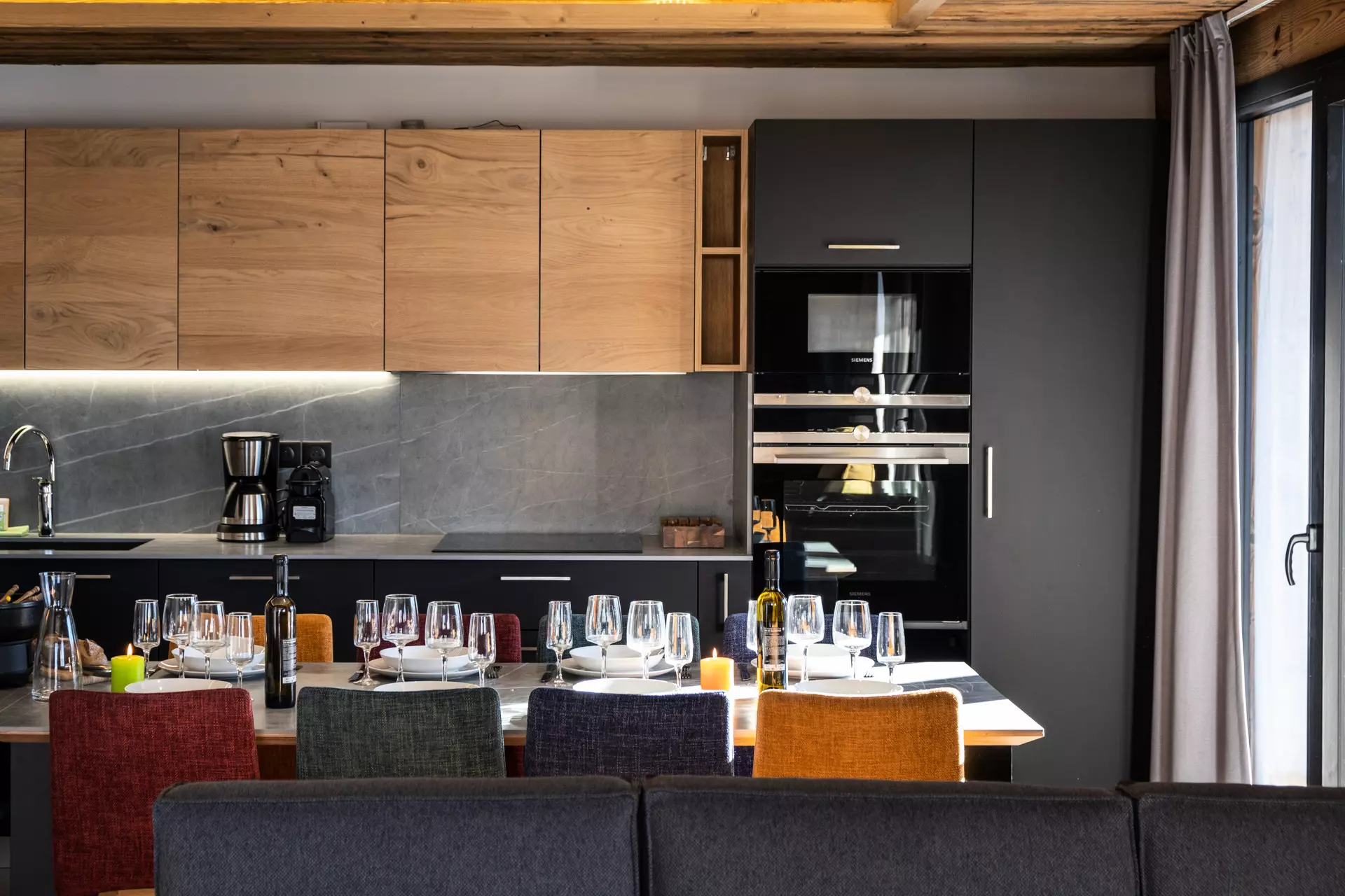 Cuisine toute équipée (cafetière Nespresso, cafetière à filtre ainsi qu'une cave à vin).