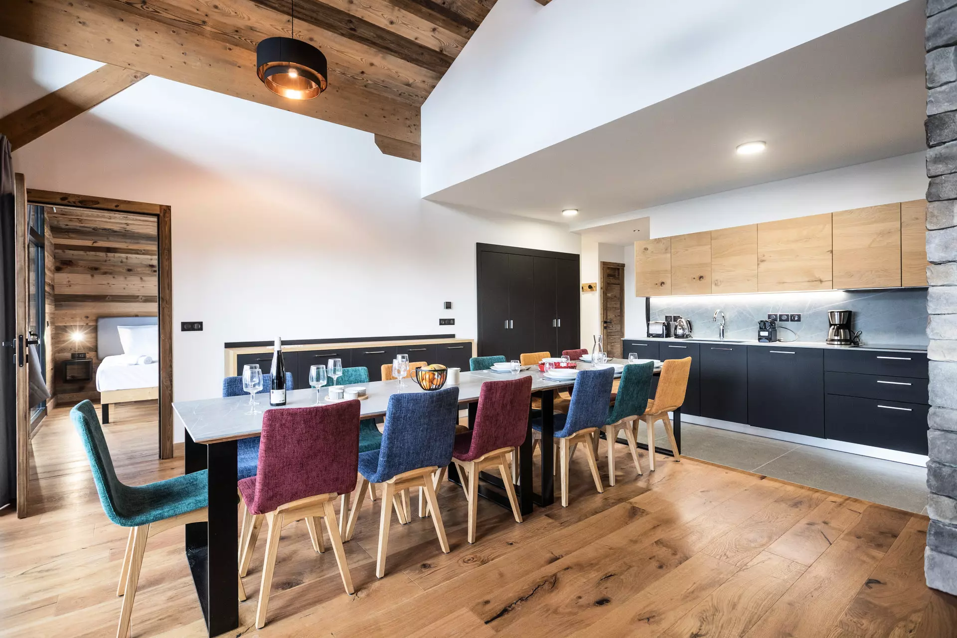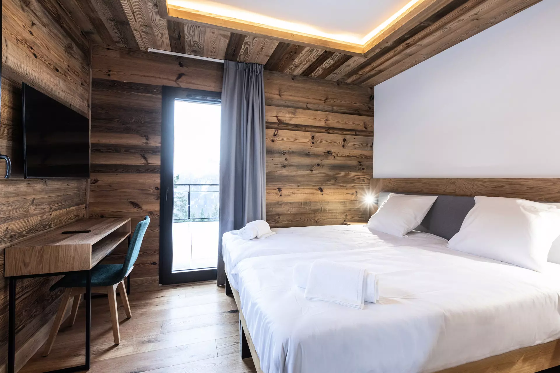 L'Orée du Bois est un bâtiment de 5 étages avec ascenseur, c'est l'un des derniers établissements récents de la Rosière, situé dans un quartier calme au croisement entre le quartier de l'Orée et le Vieux Village, à quelques minutes du centre village. Ses 6 grands appartements sont décorés avec goût dans un style contemporain où le bois prédomine. Les concepteurs originaires de la vallée ont porté une attention toute particulière à l'aménagement intérieur de chaque logement : un mobilier conçu sur mesure, un équipement moderne, des chambres spacieuses, un large espace de vie pour se retrouver en tribu, une cuisine fonctionnelle, un coin repas pour partager de bons mets. Et le petit plus : 2 appartements disposent d'un bain à remous privatif chacun. Casiers à ski avec sèche-chaussures situés vers l'entrée du bâtiment.