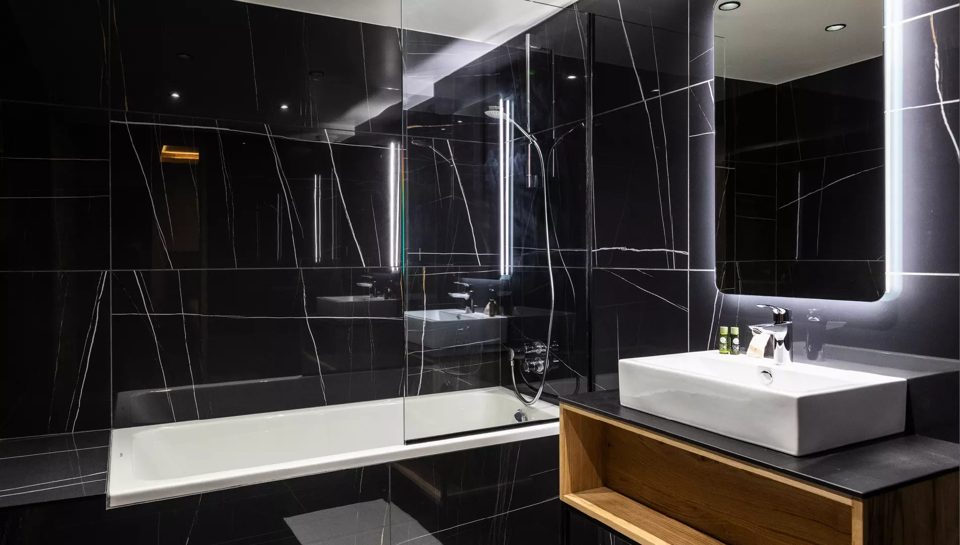 2 salles de bain séparées avec douche à l'italienne dont une avec WC et baignoire