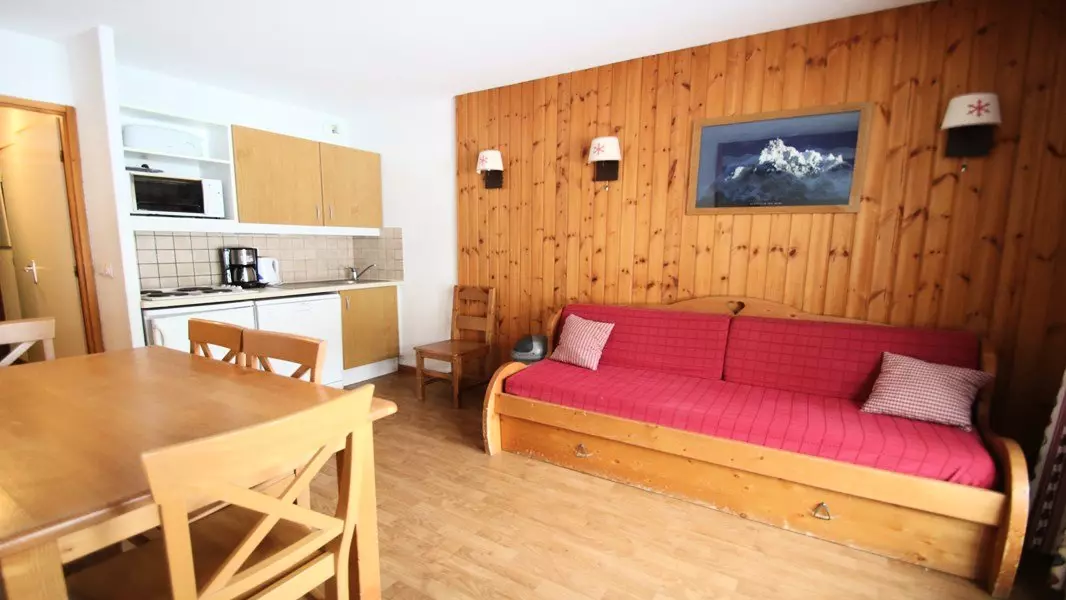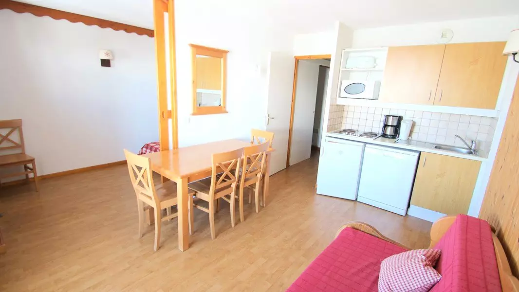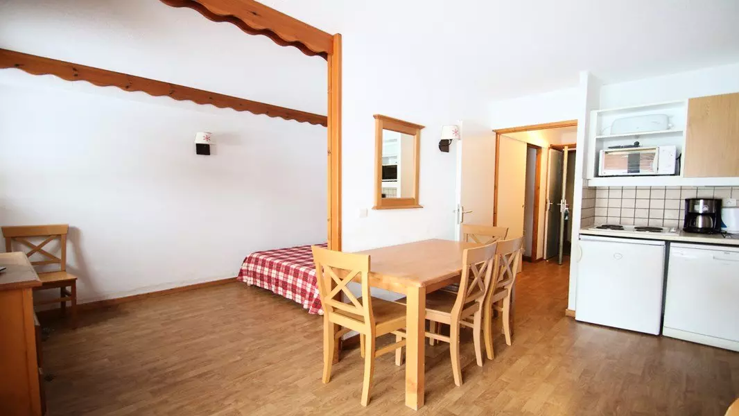 Pour des vacances à la montagne, au coeur des pistes de ski, location d'un joli appartement de bon standing, balcon, meublé et equipé pour 4-6 personnes. RÉSIDENCE LE PARC AUX ÉTOILES PISCINE ET SAUNA.