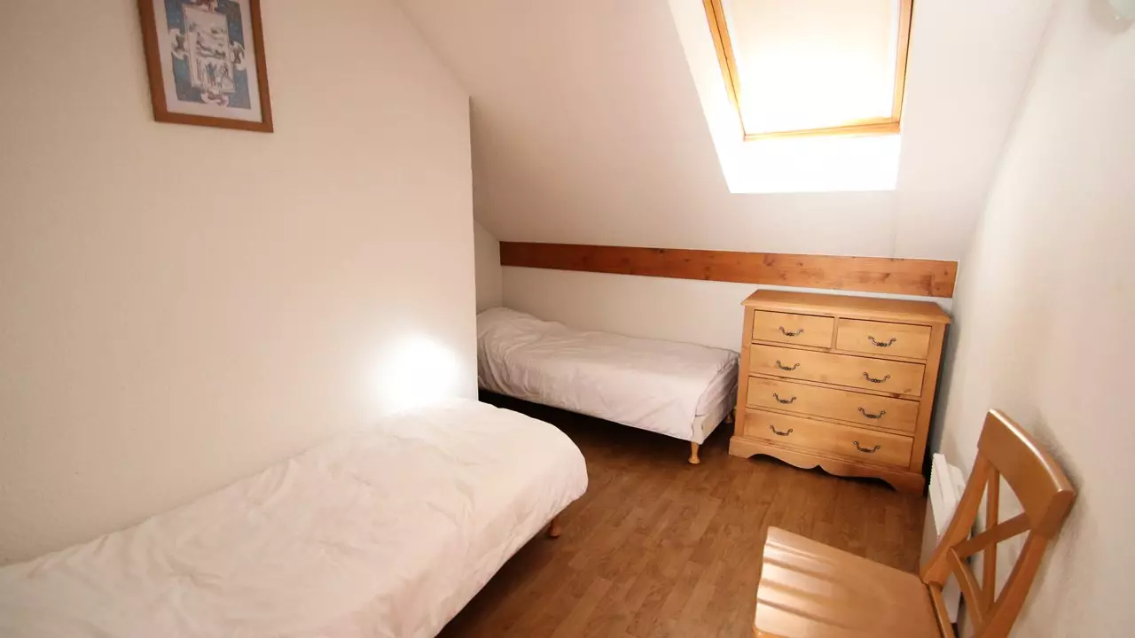 Couchages : une chambre avec lit double et une chambre avec lit superposé (placard et penderie). Salle de bain et WC indépendant.