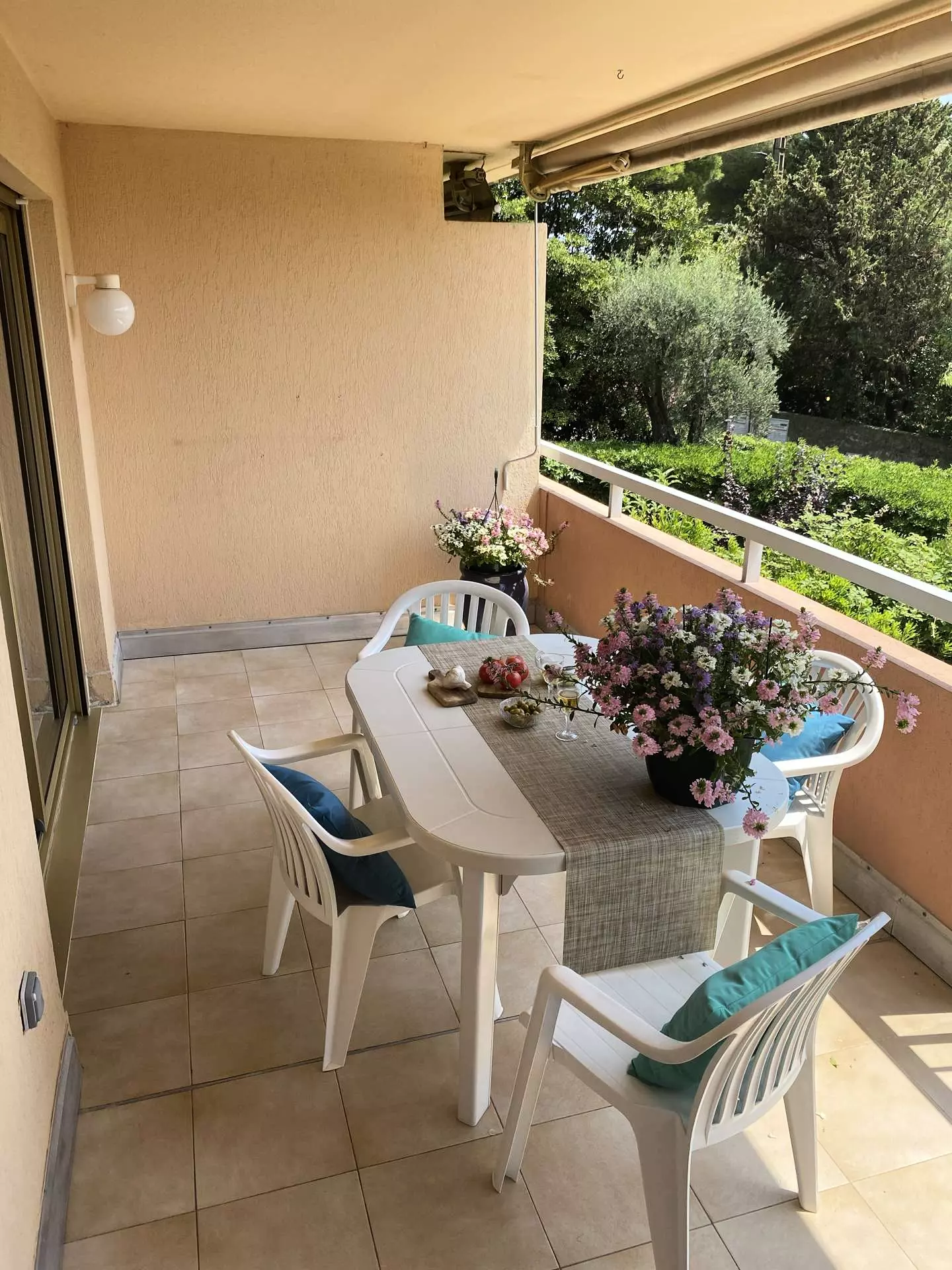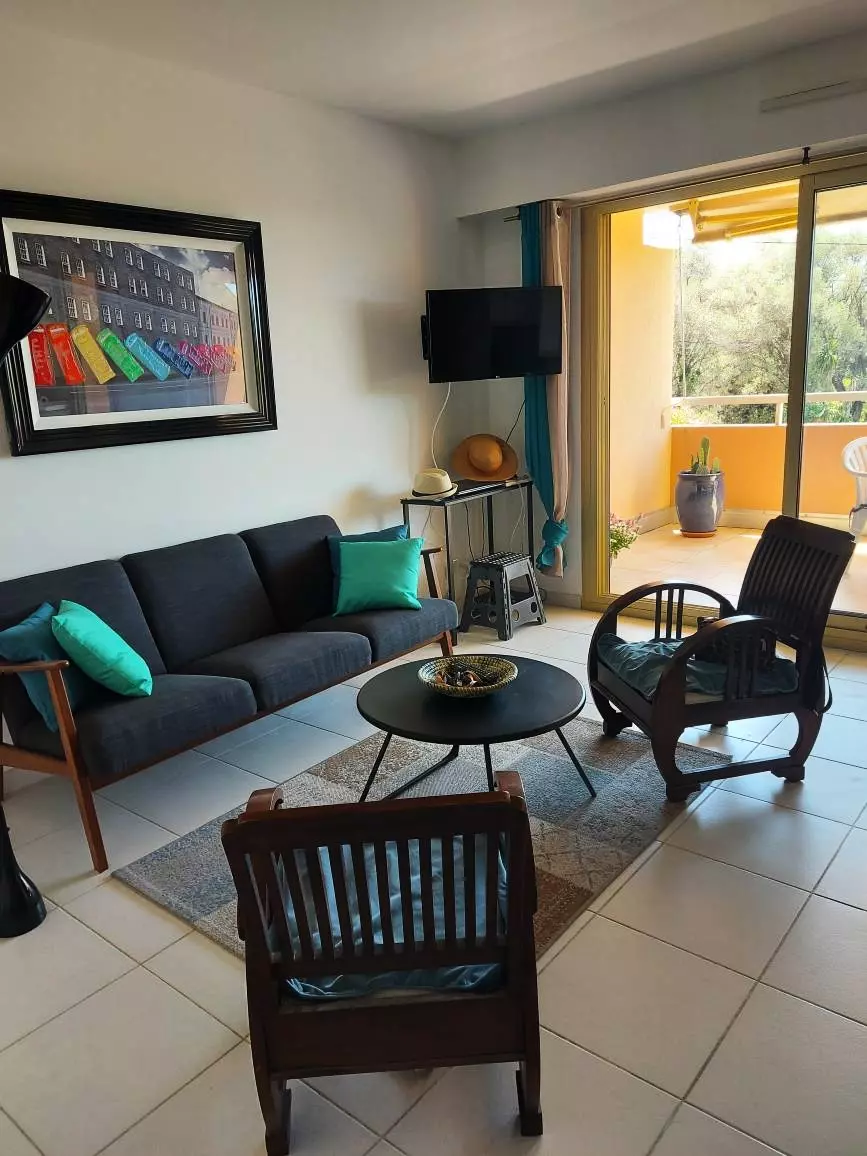 Les plus de ce studio de vacances à Antibes : une terrasse de 12m², un parking privatif, terrain de jeux (tennis, pétanque) et une piscine.