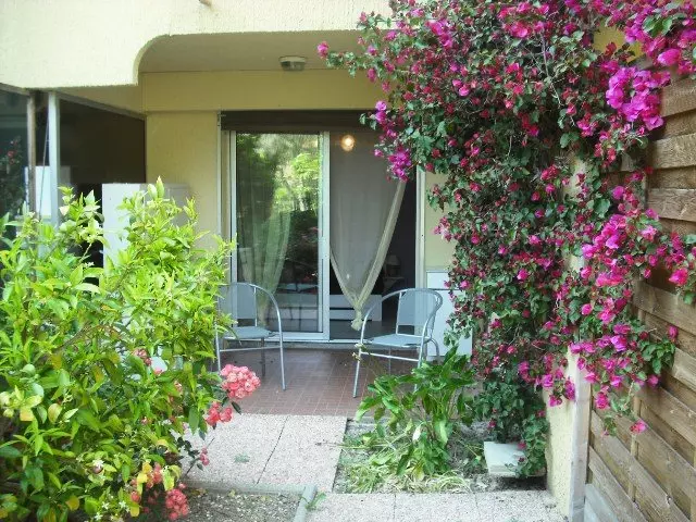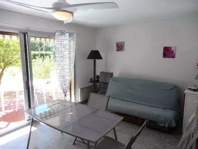 Cette charmante location en rez de jardin vous propose une terrasse avec jardinet exposée EST, un séjour avec un canapé convertible, un coin cuisine,une chambre avec lit double ouvrant sur la terrasse, une salle de douche et un wc indépendant.