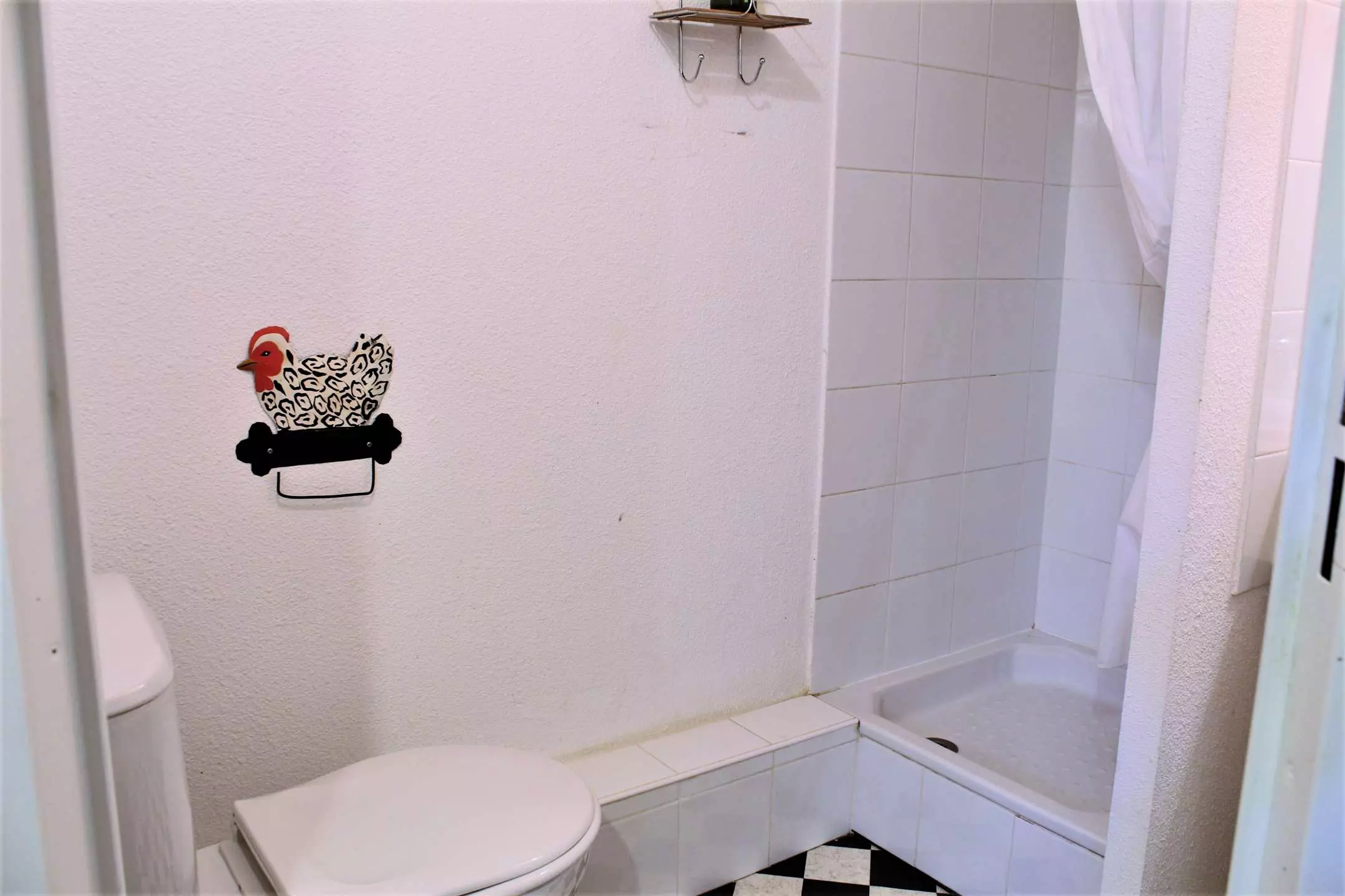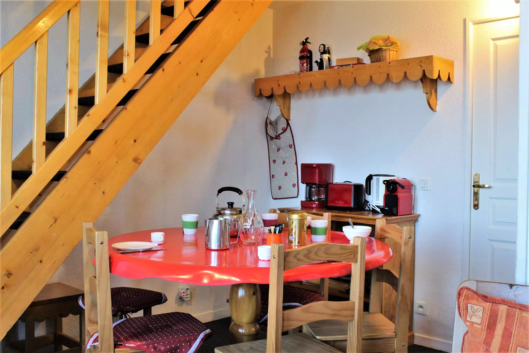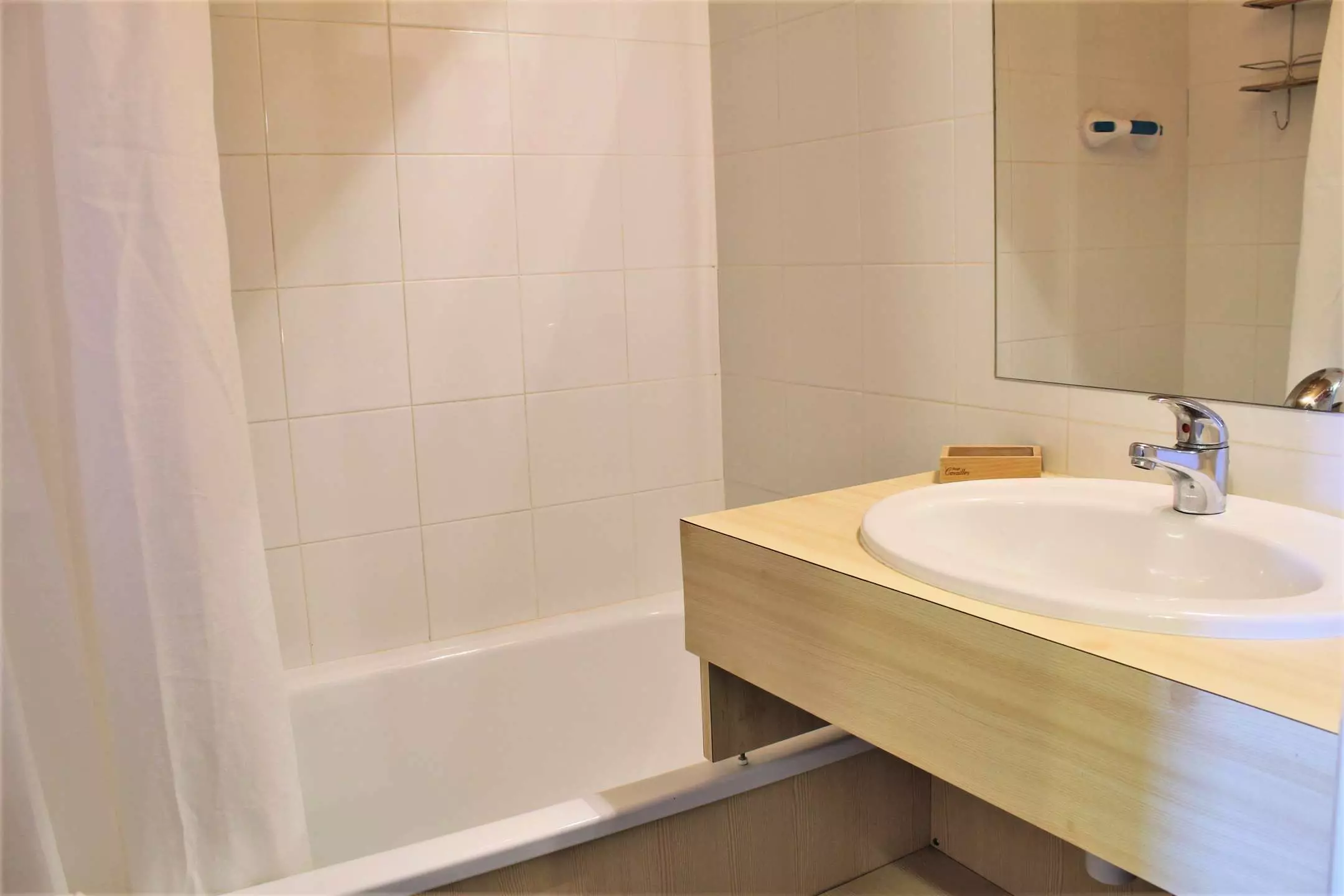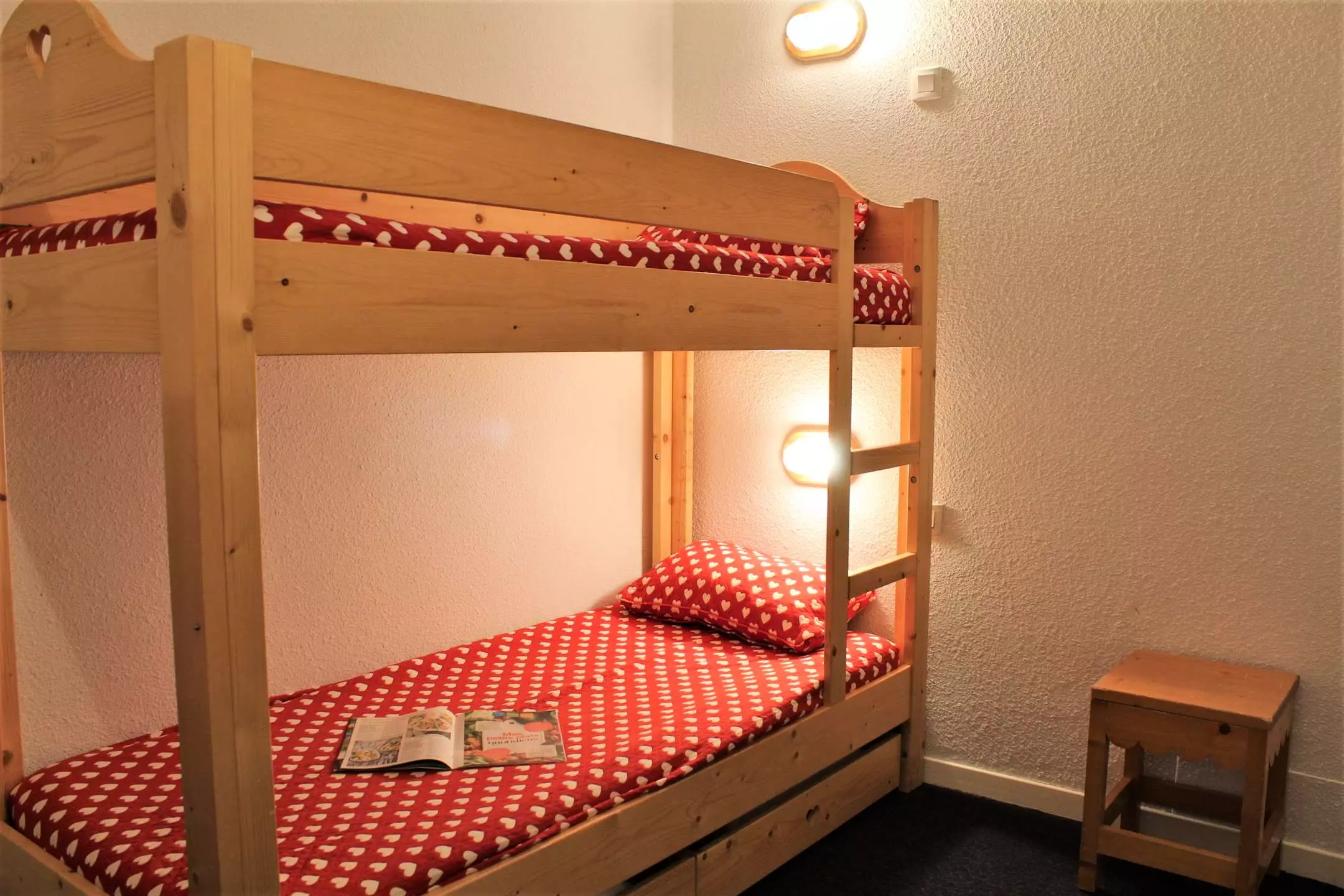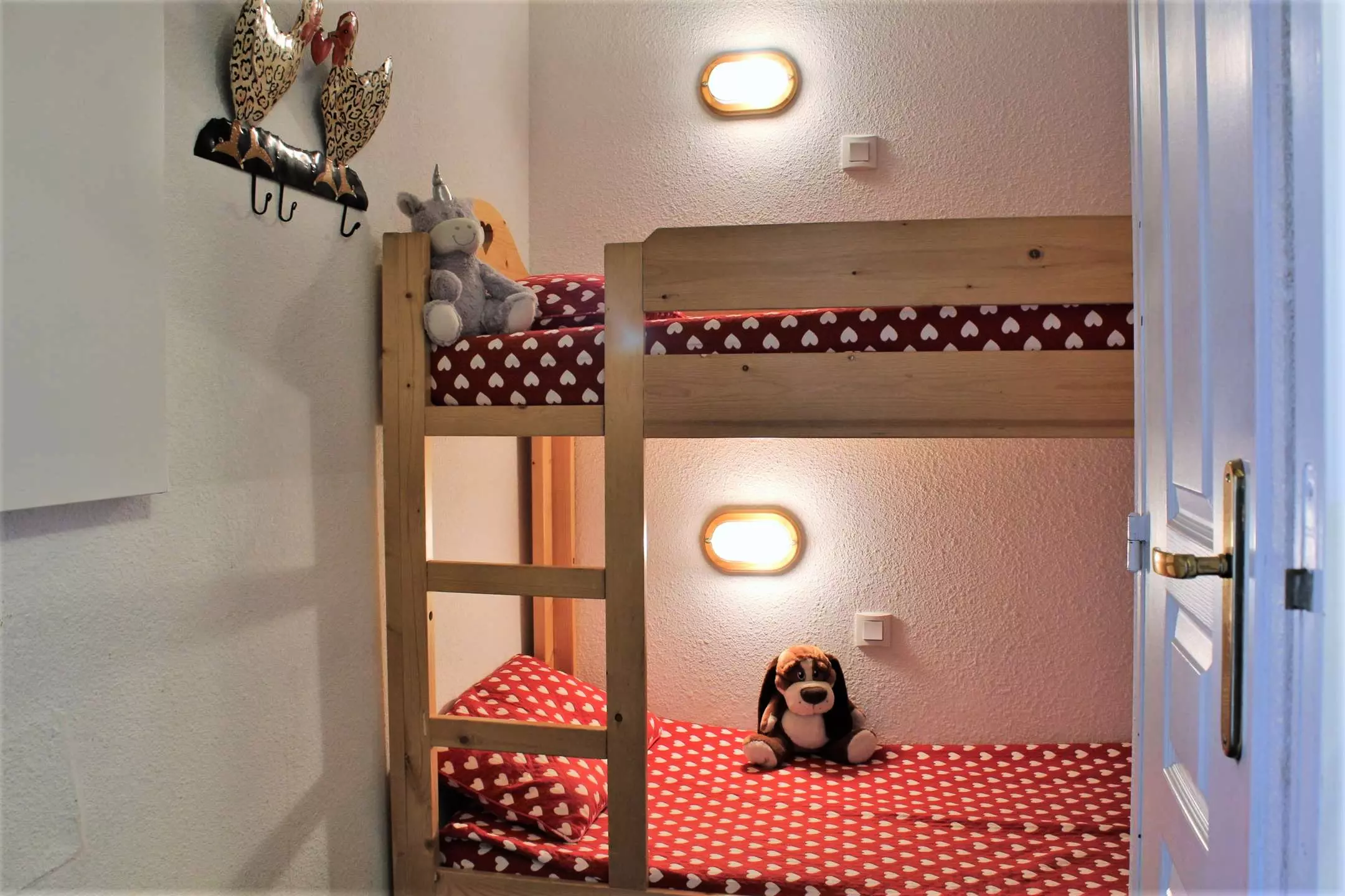 Situé dans une résidence en haut de station, à quelques pas des pistes, cet appartement classé 3 étoiles s'organise ainsi, au rez-de-chaussée : un coin montagne avec deux lits superposés, un salle de bain avec baignoire et des WC séparés, une cuisine équipée et un séjour avec un lit gigogne.