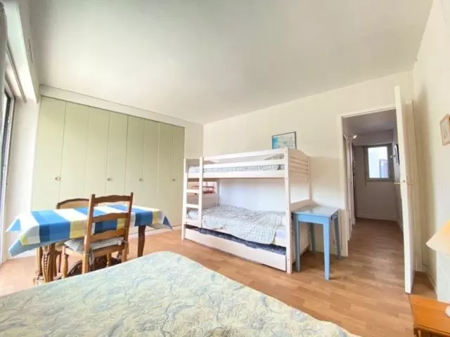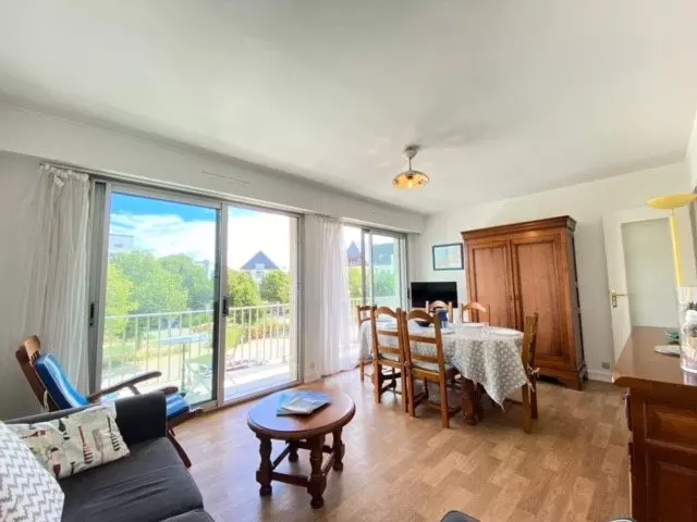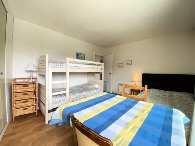 Situé au coeur de la Baule, à une centaine de mètres des commerces, la résidence LE PEN BE, face au jardin de la Victoire et à 500 mètres de la plage, cet appartement de vacances est idéal pour des vacances en famille. Cette location de vacances à la Baule se compose d'une entrée, d'une grande pièce à vivre lumineuse avec un espace salle à manger, salon avec TV, qui dessert une première chambre composée d'un lit en 120, d'un lit superposé avec tiroir (capacité 3 couchages), une seconde chambre parentale avec un lit double, une cuisine aménagée et équipée, une salle de bains.