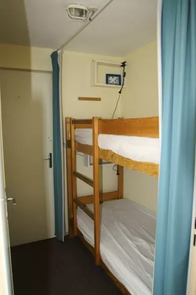 1 cabine entre séjour et chambre avec 1 lit superposé 2 x 80 x 190. Ce bien est équipé d'une cafetière à filtre.
