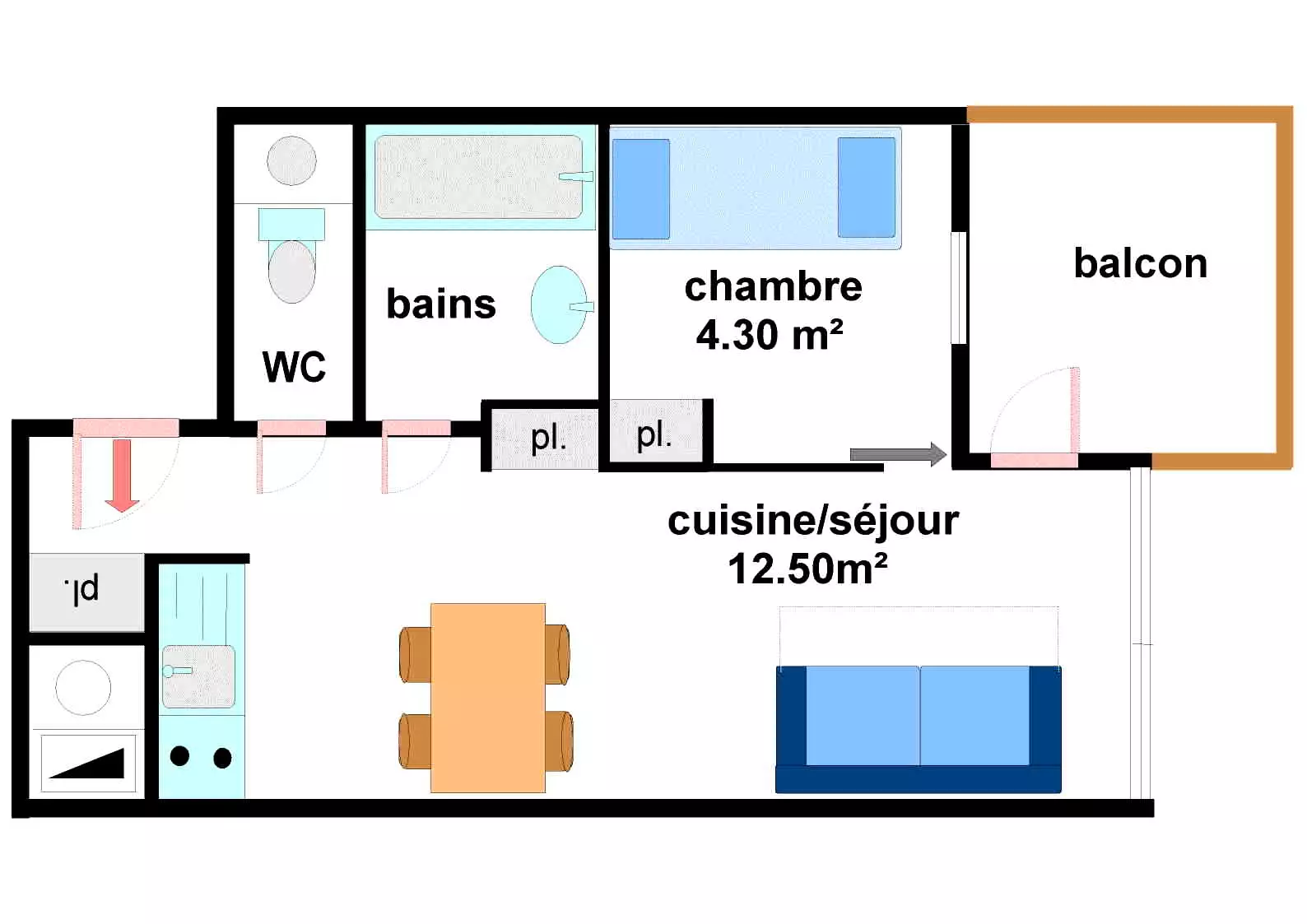 Dans la Résidence Le Pied de Pistes, agréable appartement 4 personnes.