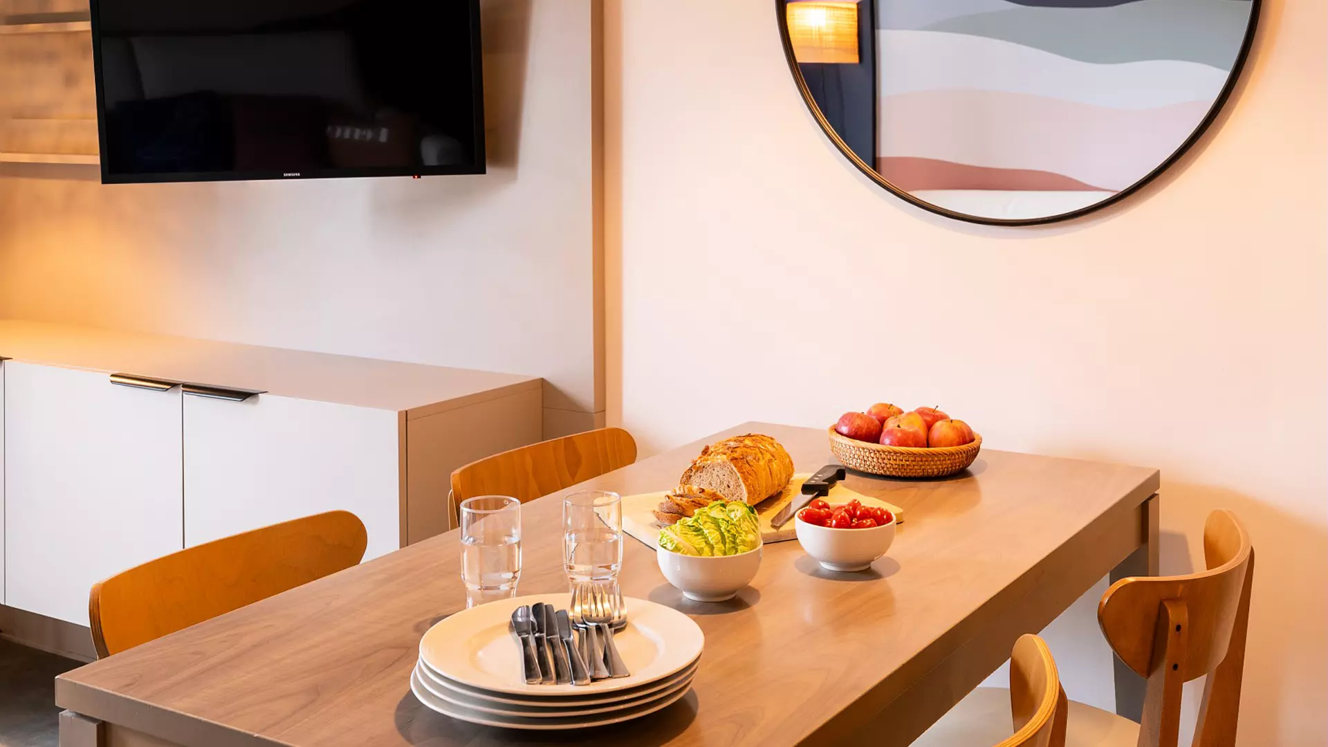 Petit déjeuner : Service pain & viennoiseries disponible au sein de la résidence. Réservez vos produits la veille auprès de la réception.