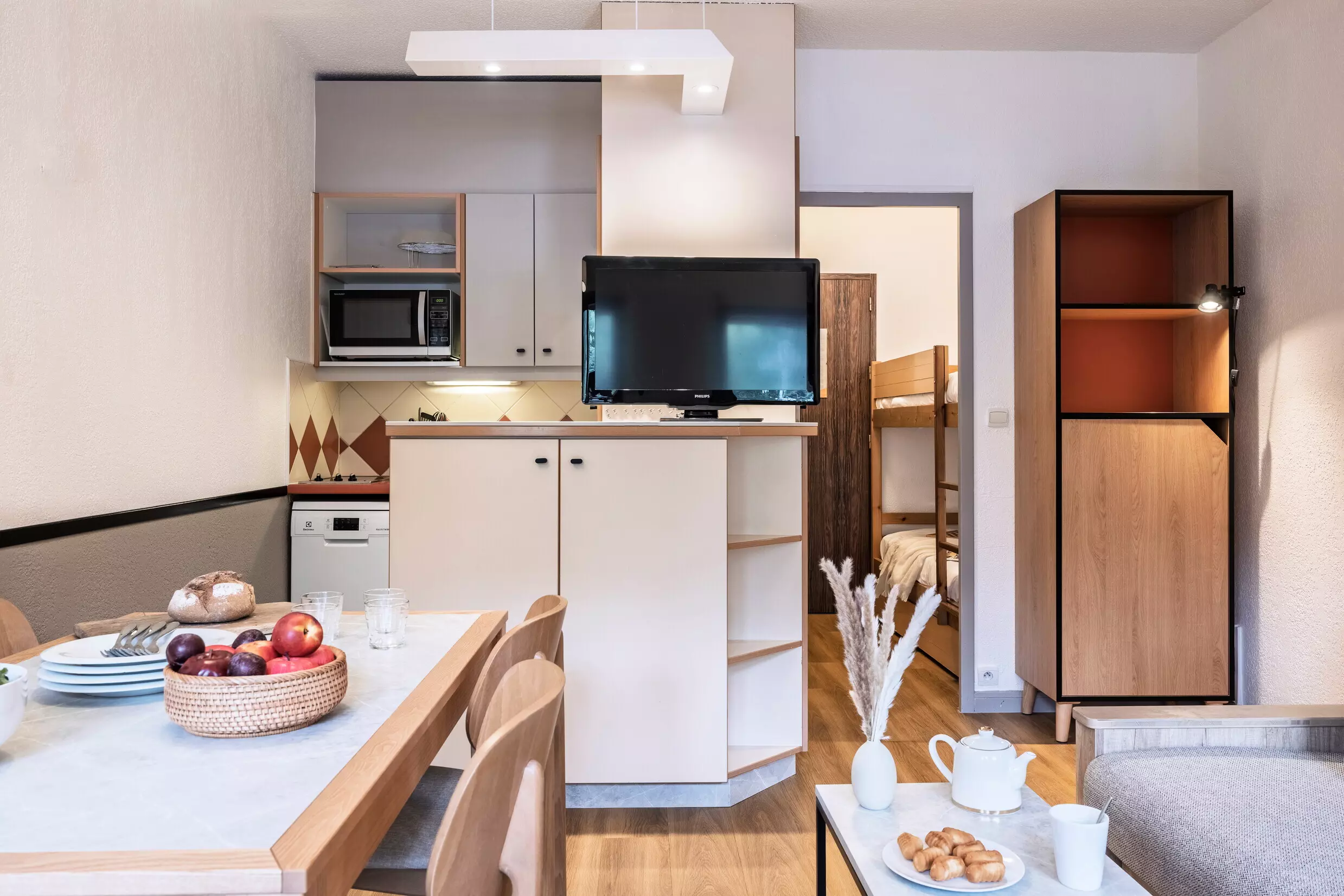 La résidence répond au charme authentique de la station avec une architecture traditionnelle qui se fond dans le décor. Elle propose des appartements cosy où vous vous retrouverez en famille après une belle journée sur les pistes. Pour vous offrir plus d'espace et plus de confort, certains hébergements sont en duplex ou avec mezzanine.