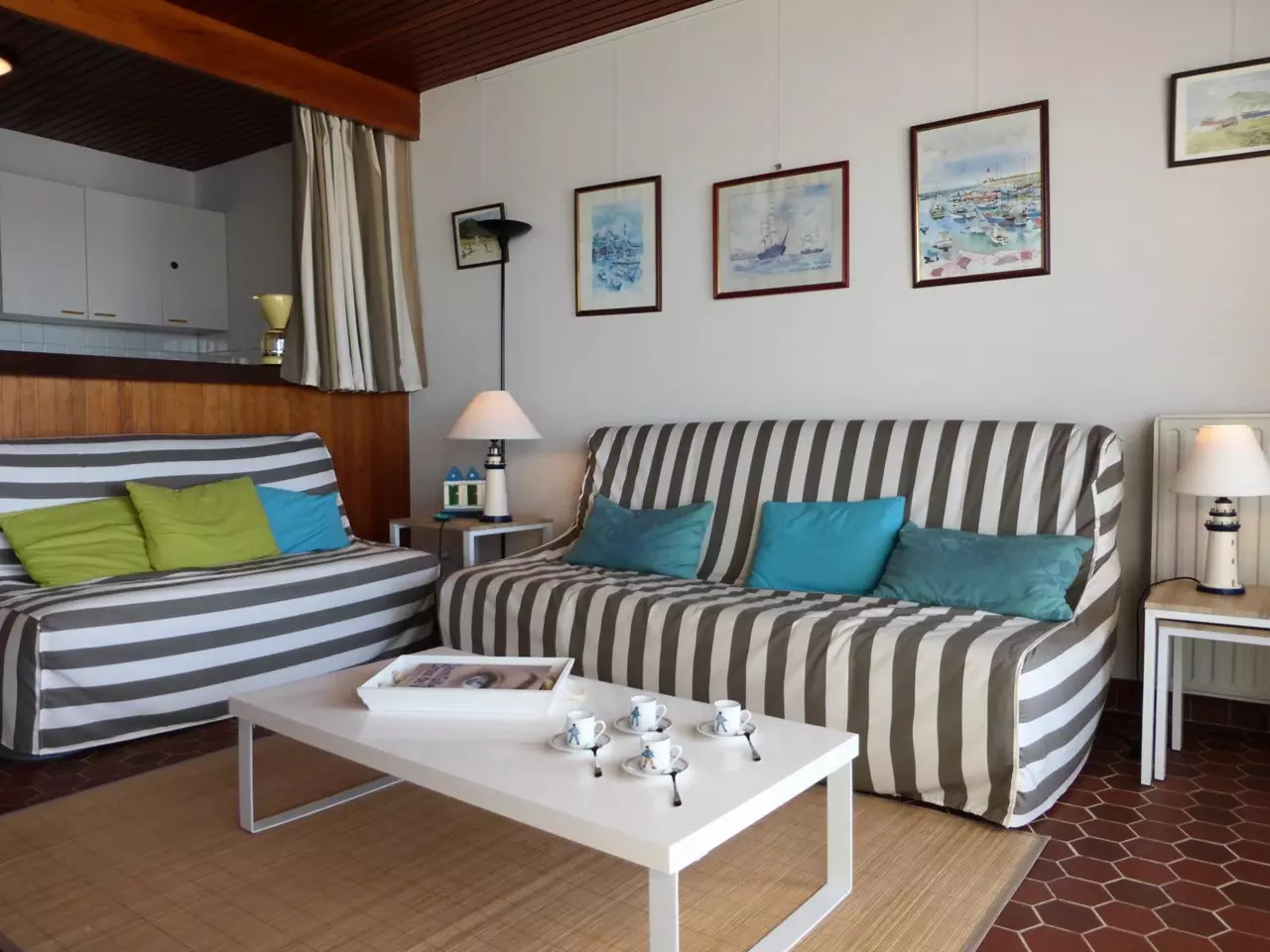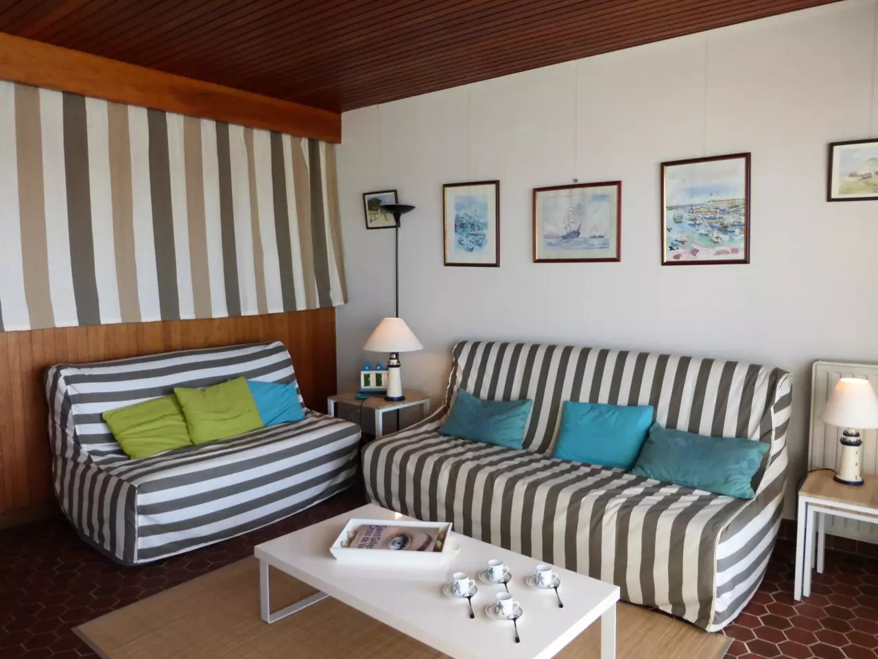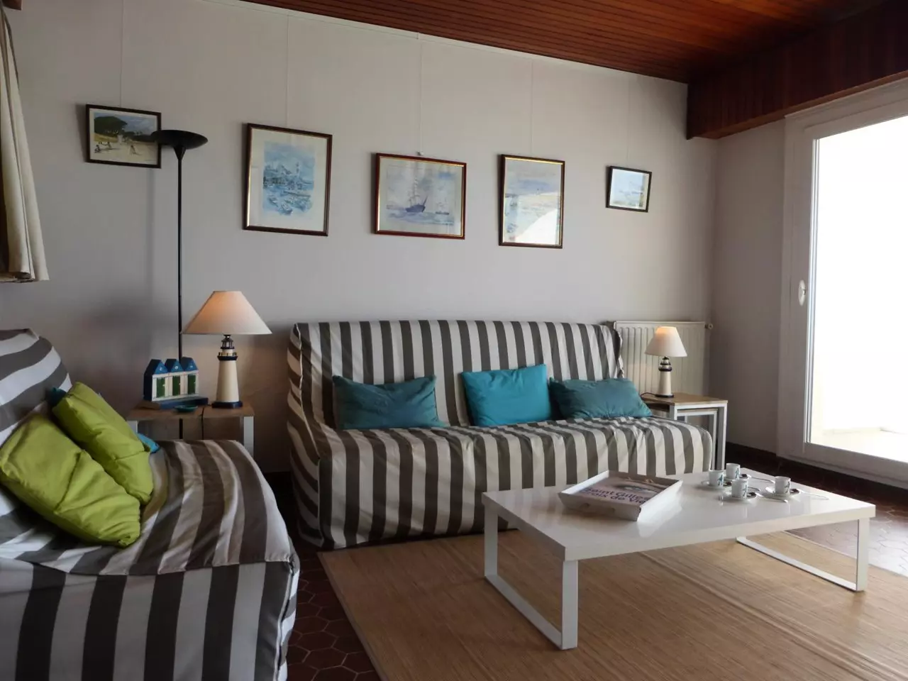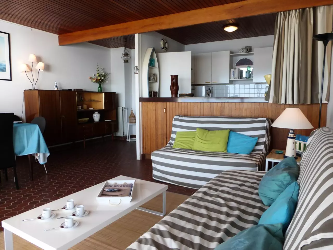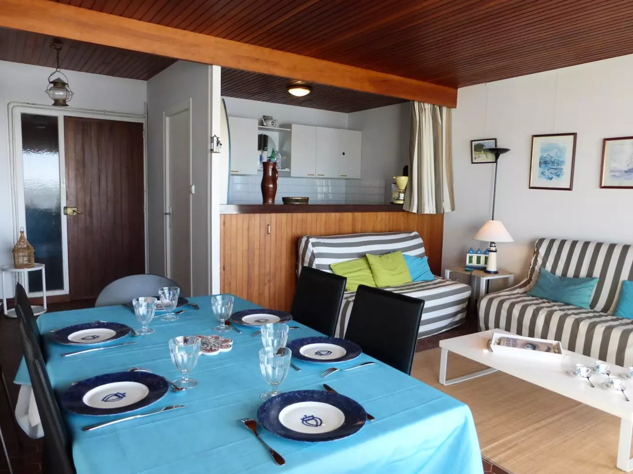 Située au pied du remblai et de ses commerces saisonniers, cette location à la mer vous offre une vue sur mer avec balcon et salon de jardin et comprend un coin-cuisine équipé avec micro-ondes et lave-vaisselle, un séjour avec canapé convertible 2 personnes et télévision, deux chambres totalisant 1 lit double, 1 lit simple, 2 lits simples superposés, une salle de bains avec lave-linge, wc