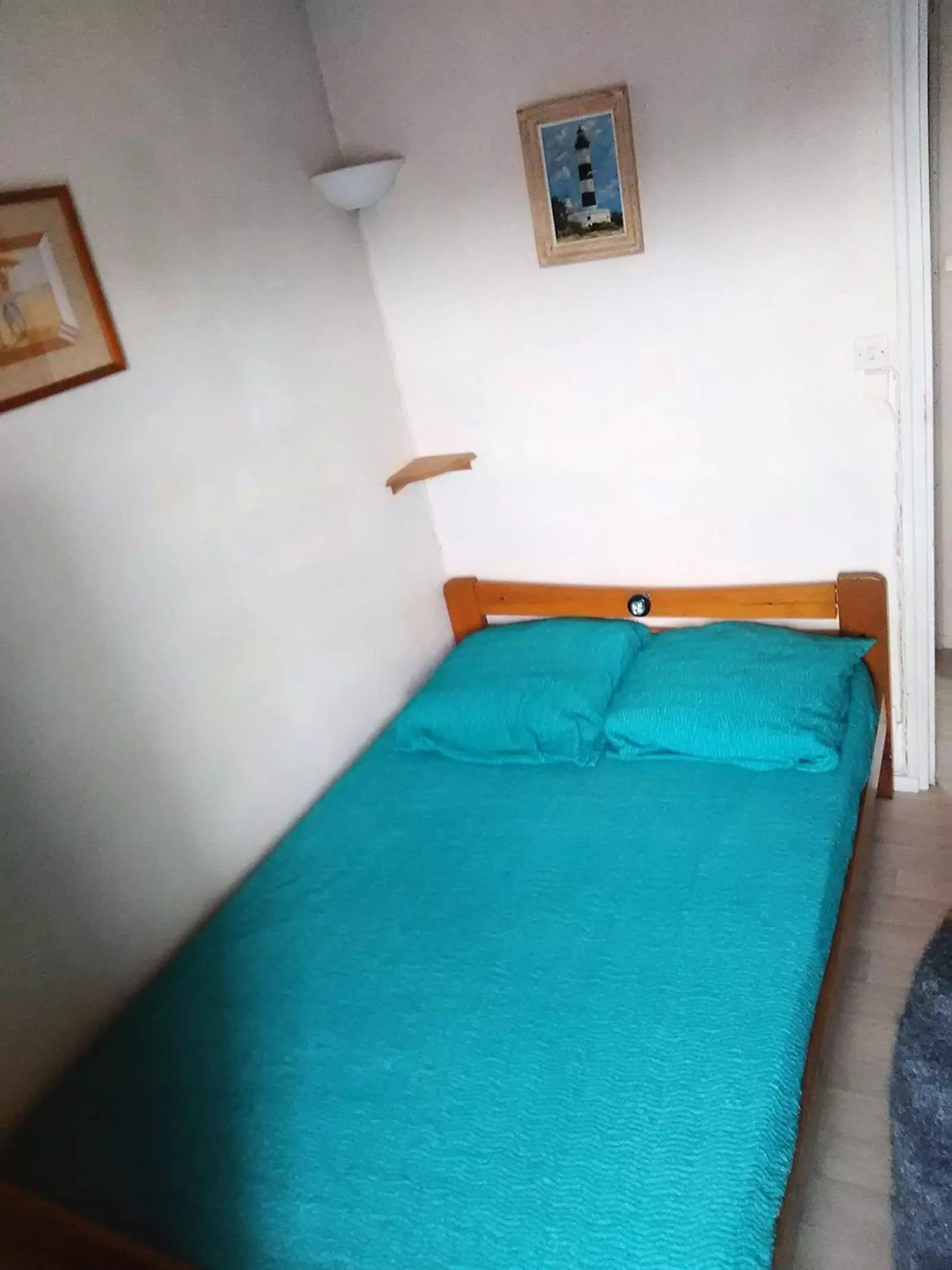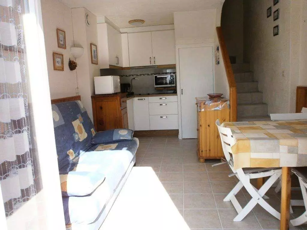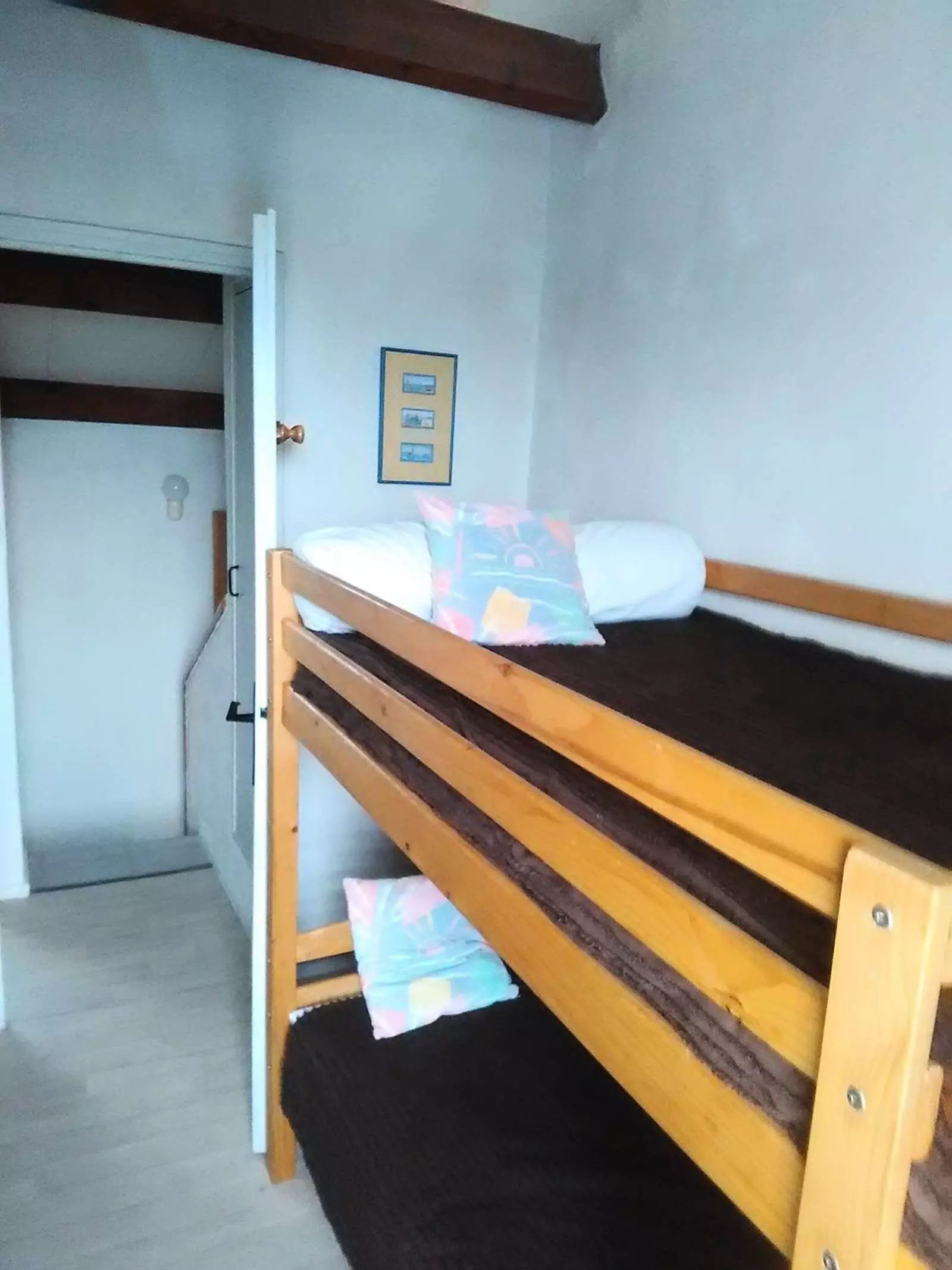 Cette maison de vacances, comprend un séjour avec un canapé convertible 2 places, un coin cuisine équipé, à l'étage une chambre avec un lit de 2 places et 2 lits superposés, placard rangement, une salle d'eau avec wc.