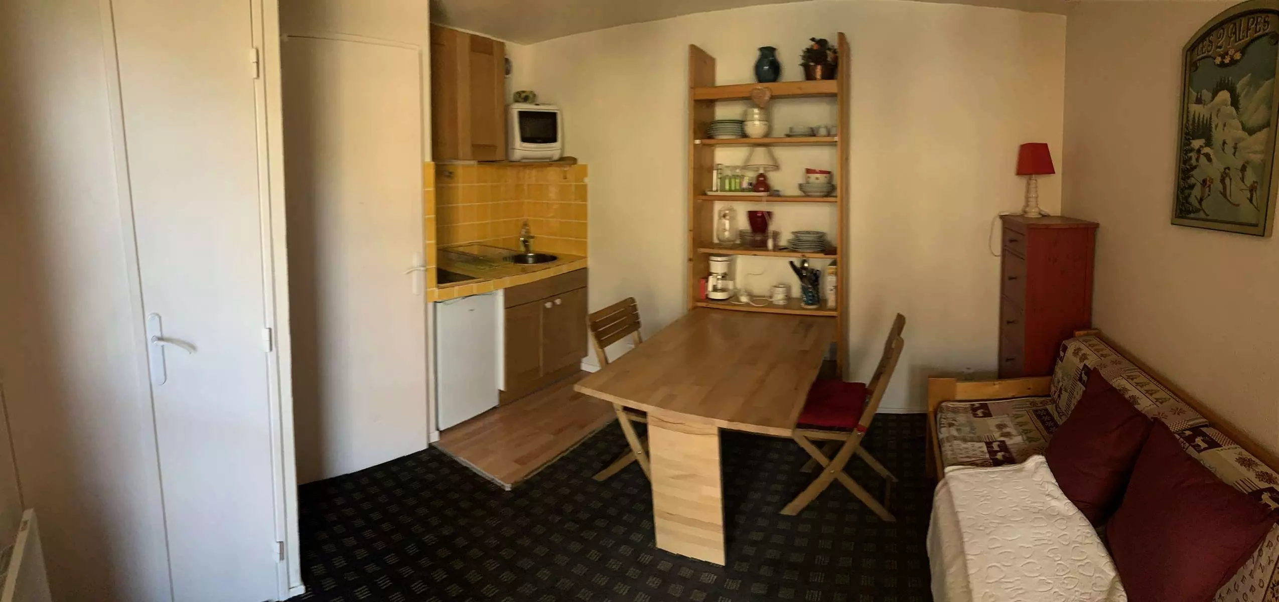 Au sein d'une copropriété impeccablement entretenue, idéalement située: vous serez au cœur de la station, à proximité de tous les commerces et commodités, à quelques pas du 'télésiège du Super Venosc', et face aux autres remontées mécaniques principales: le studio soigné et chaleureux, présente; une salle d'eau (douche) et wc séparés, un coin-montagne séparé de la pièce-à-vivre par une porte avec un canapé, d'une kitchenette équipée (2 plaques vitro céramiques, un réfrigérateur, un micro-ondes...) et d'un séjour. Balcon d'environ 4m² avec une vue dominante et dégagée sur les pistes. Parking couvert privatif.