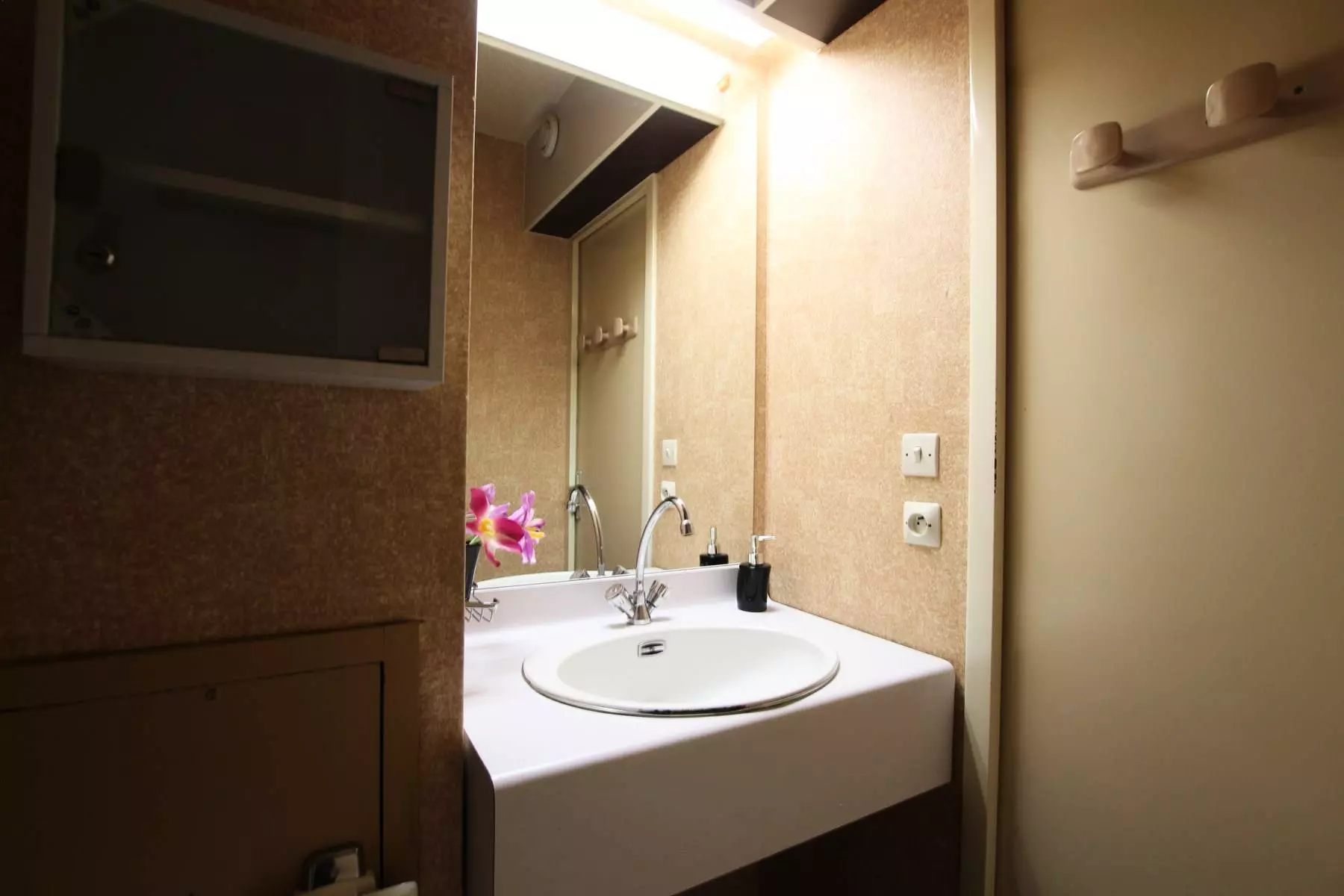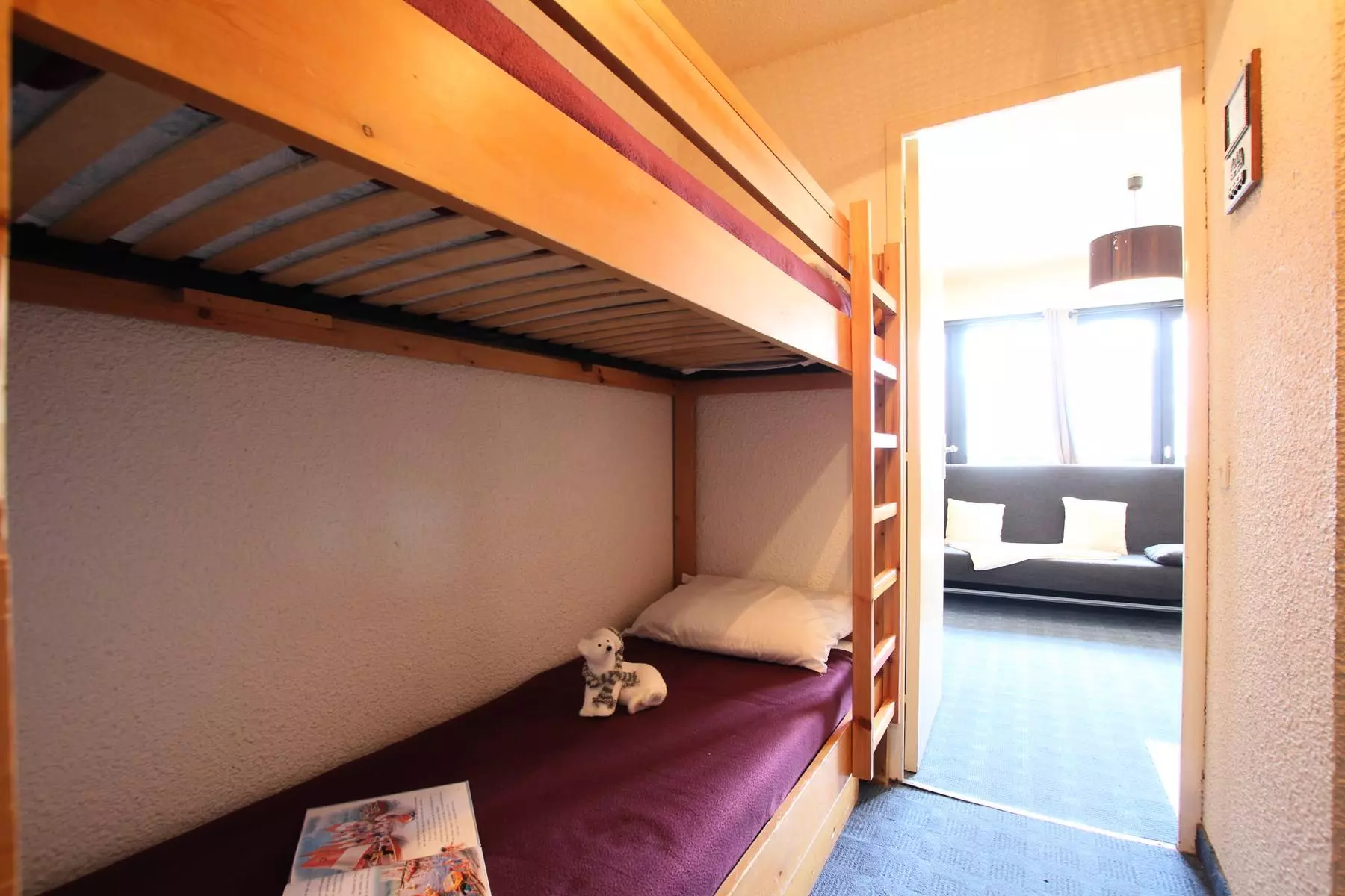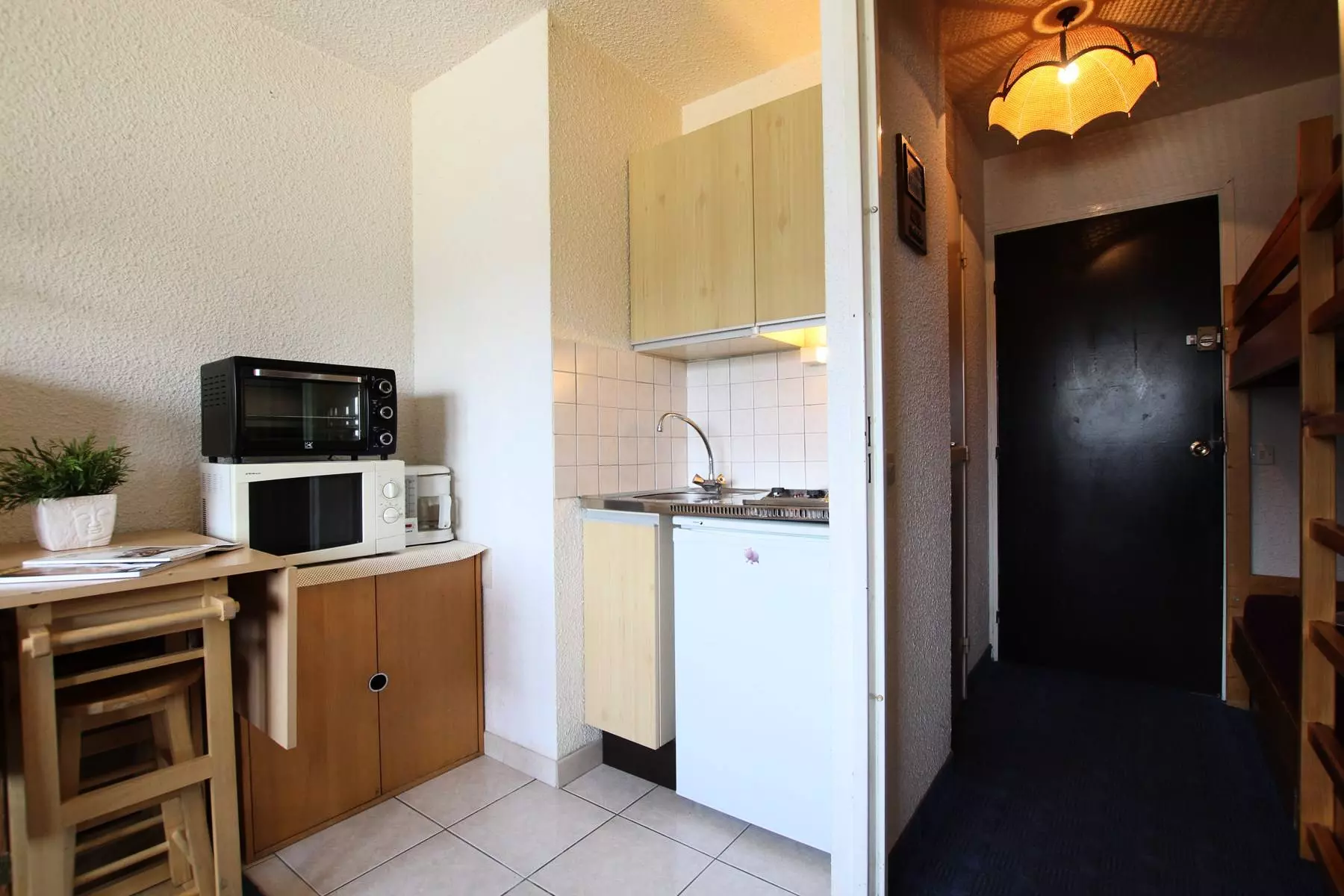 Il se compose d'un coin montagne avec 2 lits superposés. Dans le séjour, vous trouverez un canapé convertible clic-clac et une télévision. Le coin cuisine est équipé d'un réfrigérateur, 2 plaques électriques, mini four, micro-ondes, cafetière électrique... Vous disposez d'une salle d'eau avec une douche et un WC. Moquette au sol.