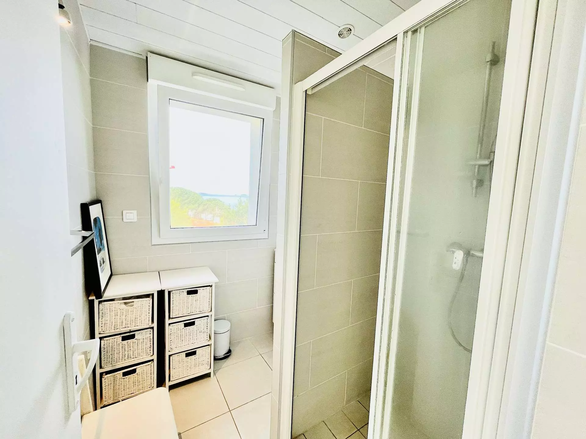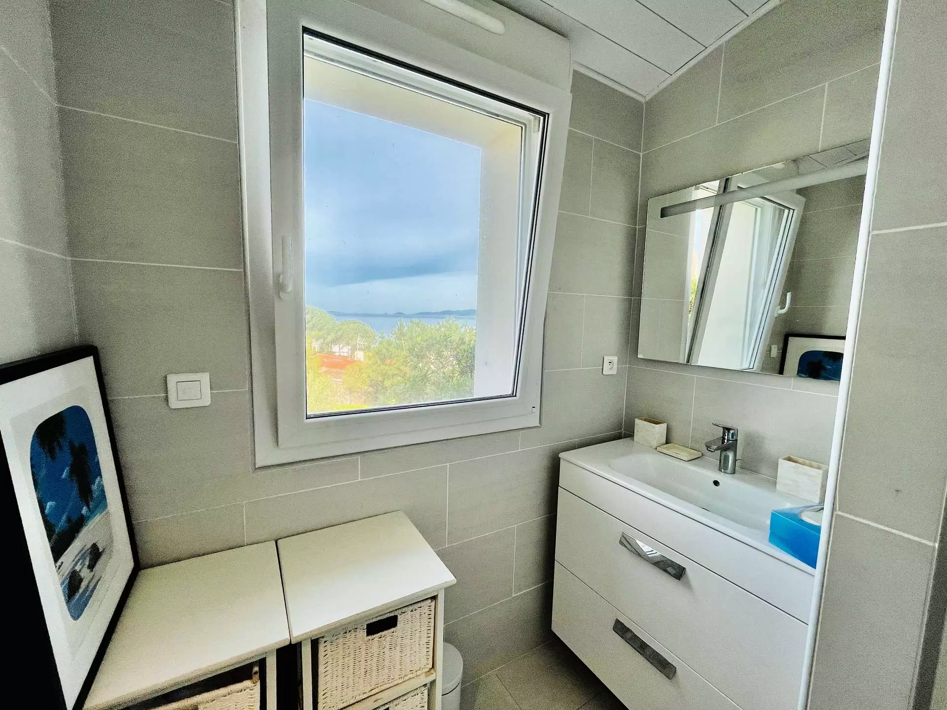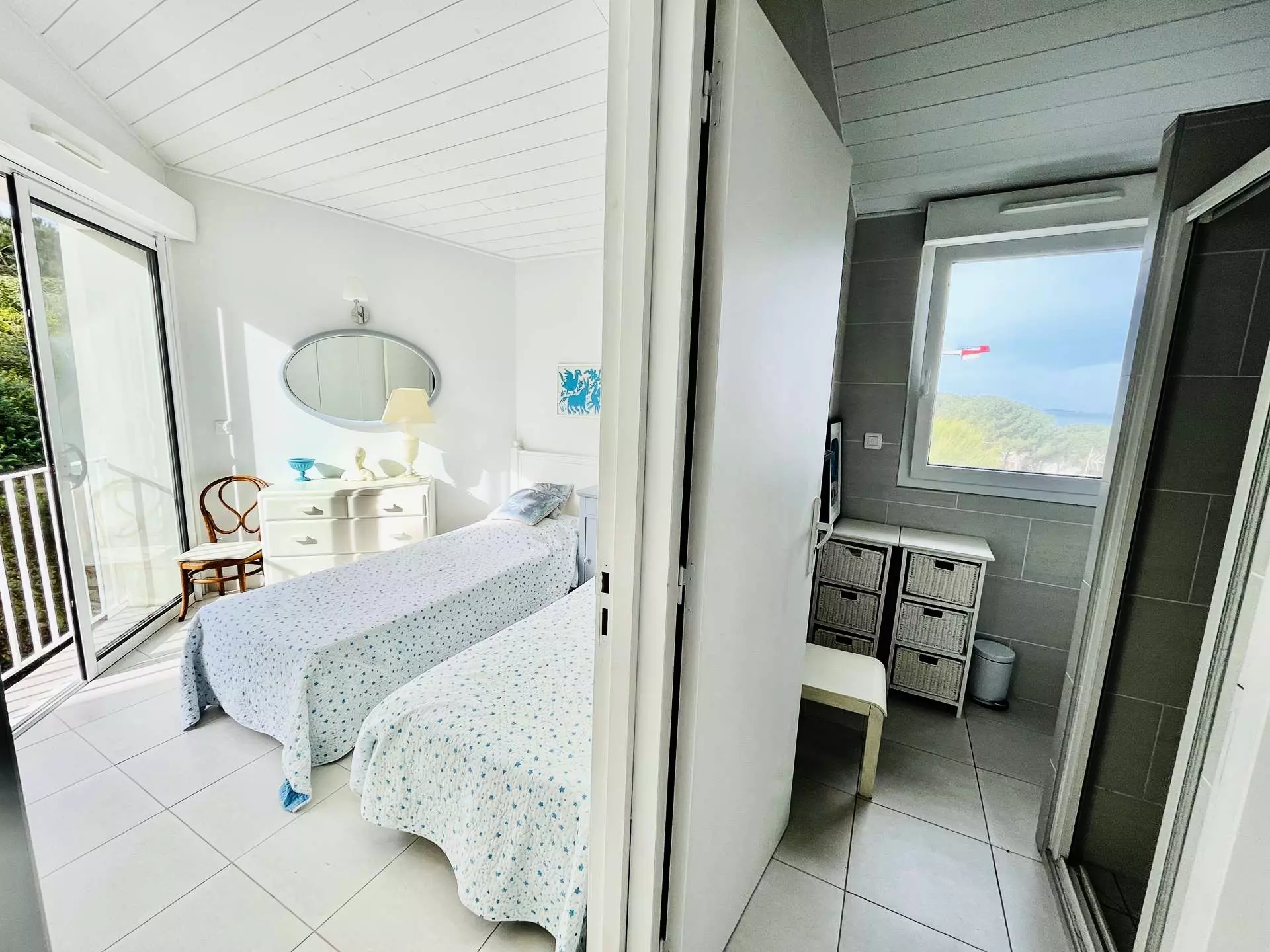 Elle comprend de plain-pied : une salle d'eau indépendante, un WC indépendant, et une très belle cuisine entièrement équipée et aménagée, ouverte sur le salon salle à manger, le tout donnant sur un extérieur faisant face à la mer. Vous y retrouverez une terrasse carrelée sur laquelle vous pourrez prendre vos repas tout en profitant d'une magique vue dégagée sur la mer, l'espace jardin vient sublimer le tout.