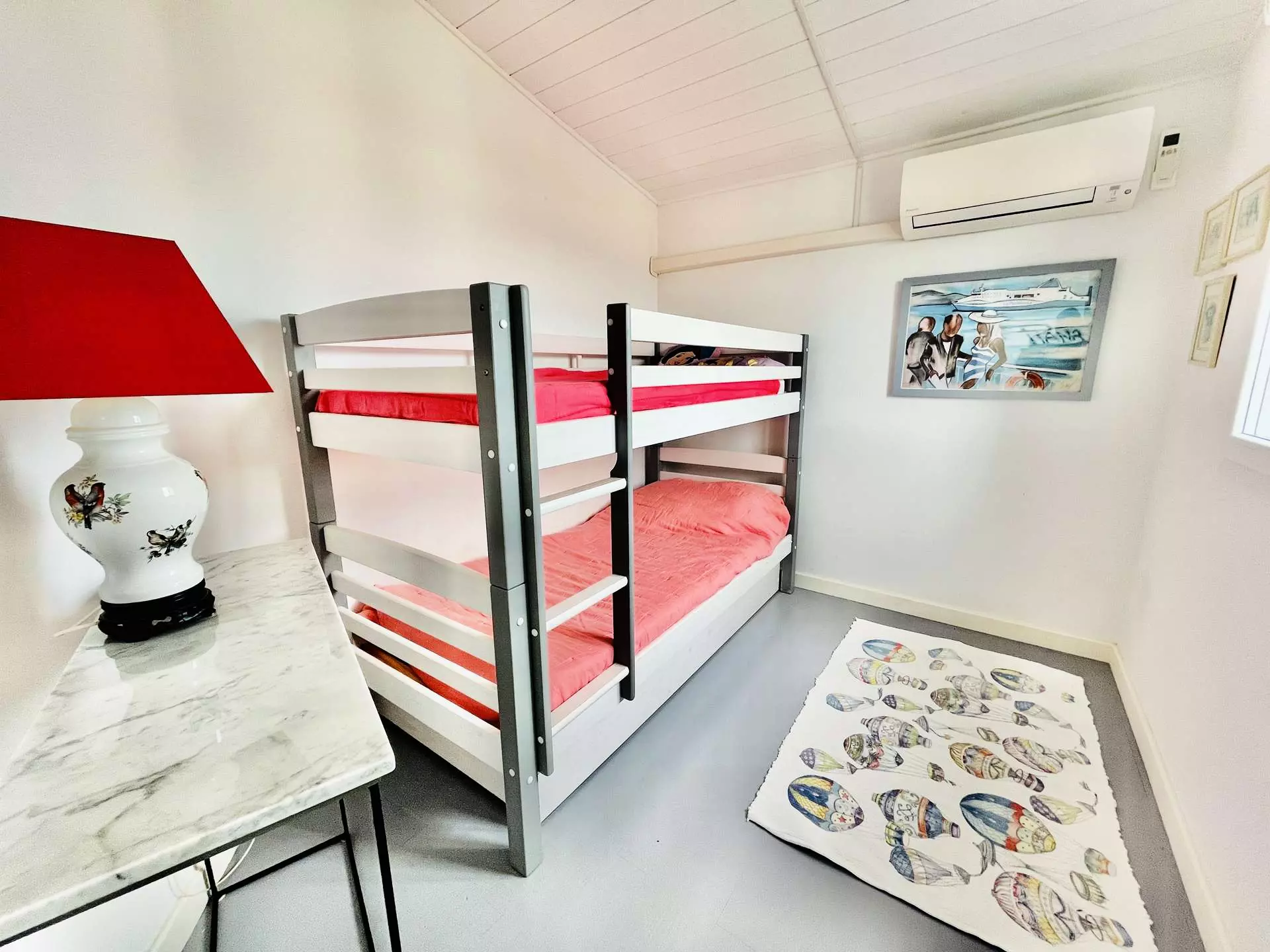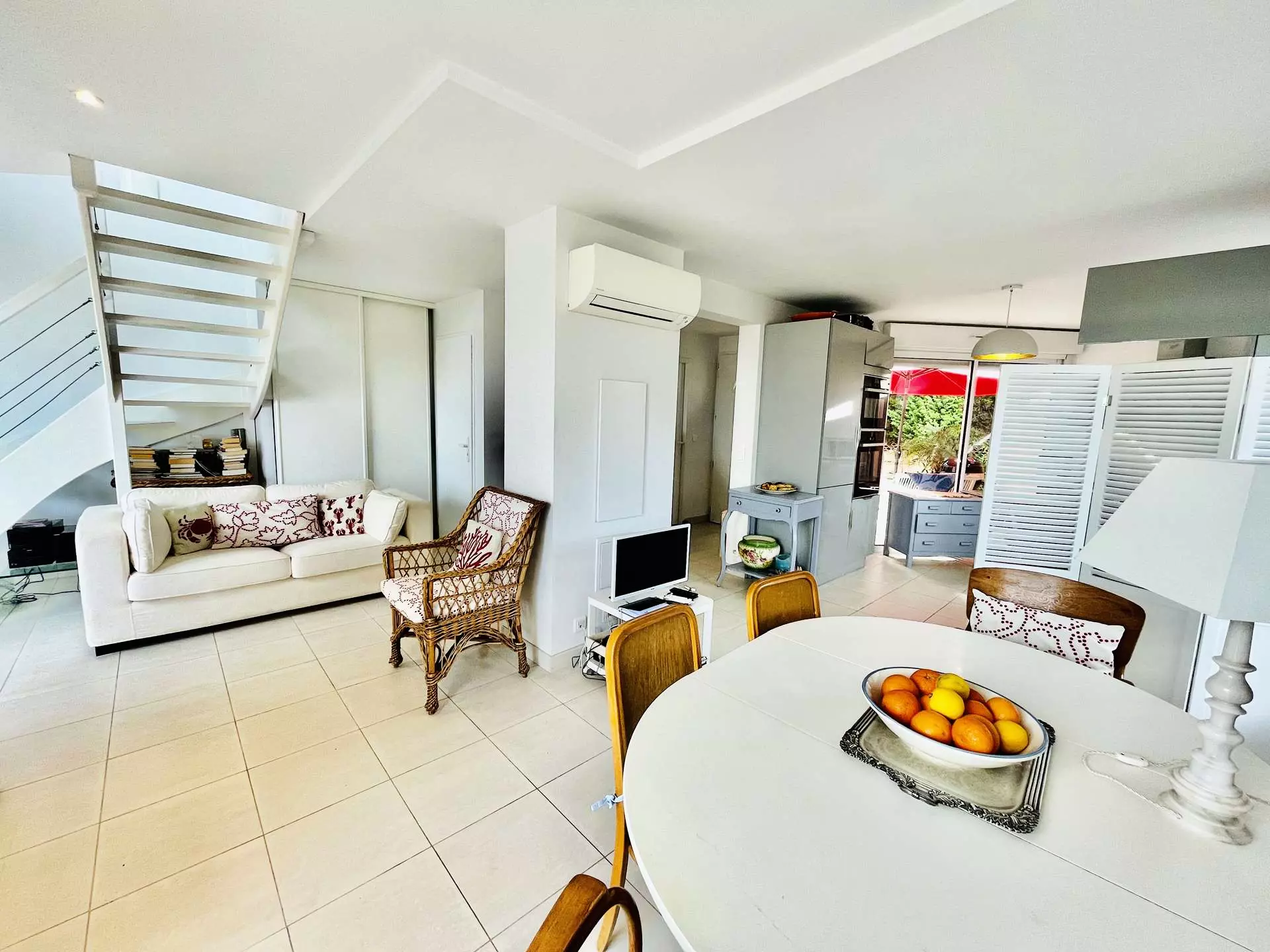 D'une superficie de 92m² environ, la maison entièrement climatisée se présente sur deux niveaux.