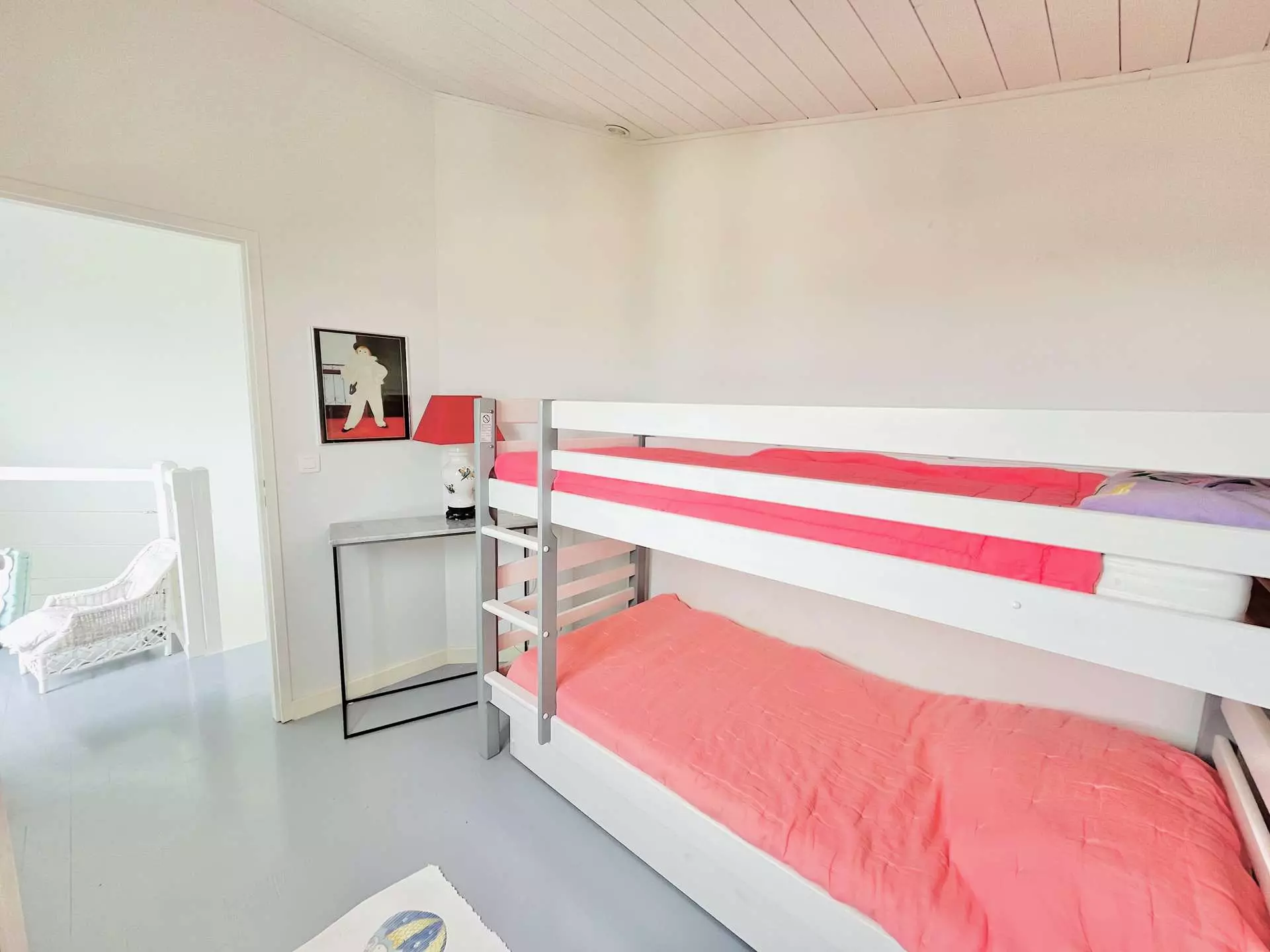 A l'étage, la maison comprend trois chambres, une salle d'eau indépendant et un WC indépendant (chambre 1 : 2 lits en 90 / chambre 2 : 1 lit en 160 / chambre 3 : deux lits simples superposés + 1 lit tiroir)