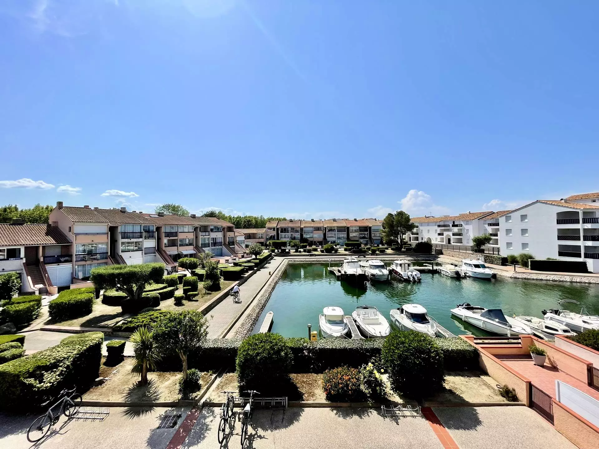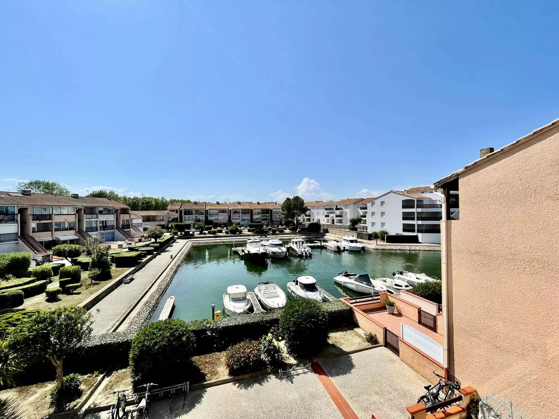Cet appartement à la mer, au 2ème étage, dispose d'un séjour avec un coin cuisine équipée, une chambre avec un lit double, une grande mezzanine haute avec un lit double, une salle d'eau avec douche. Les wc sont séparés . Pour profiter du soleil, vous disposez d'une loggia avec un salon de jardin,donnant sur les marinas, avec la télévision et un canapé convertible pour deux personnes.