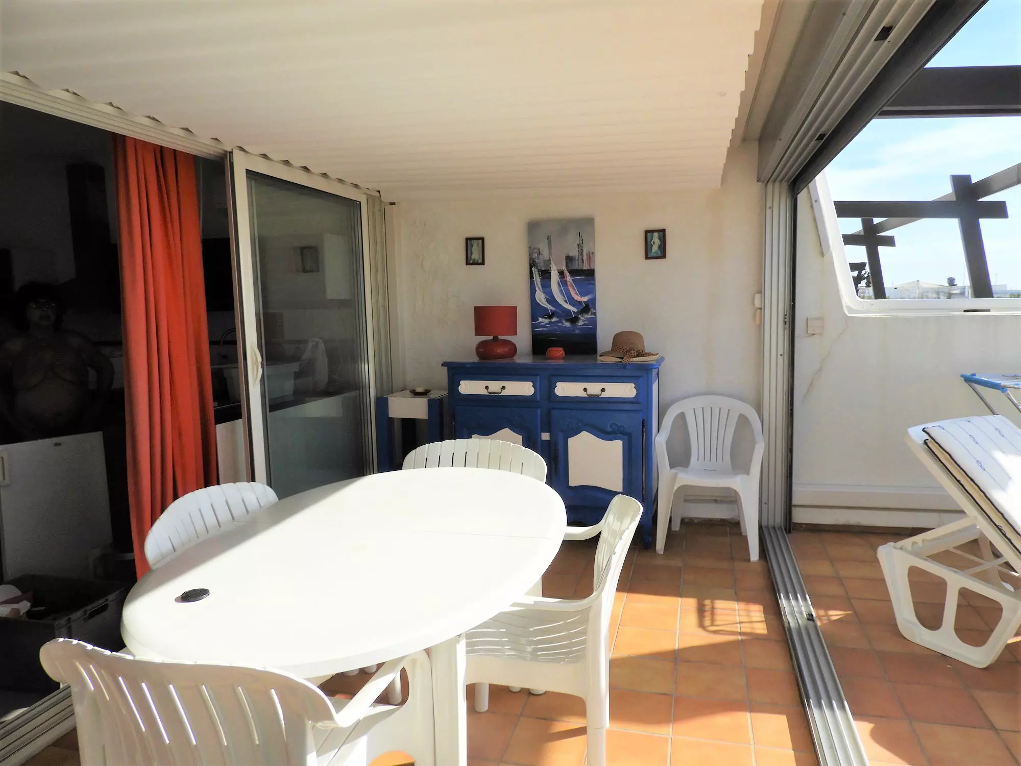 Appartement climatisé et très bien entretenu pour 2 personnes, situé à Port Nature colline 2, au 1er étage, sans ascenseur. Coin chambre avec un lit en 140 cm. Coin cuisine avec lave-linge, 2 frigidaires, micro-ondes, grille-pain, bouilloire, cafetière, aspirateur, coffre fort et télévision. Salle d'eau et wc séparés. Terrasse avec store banne. Véranda. Parking n° 28.