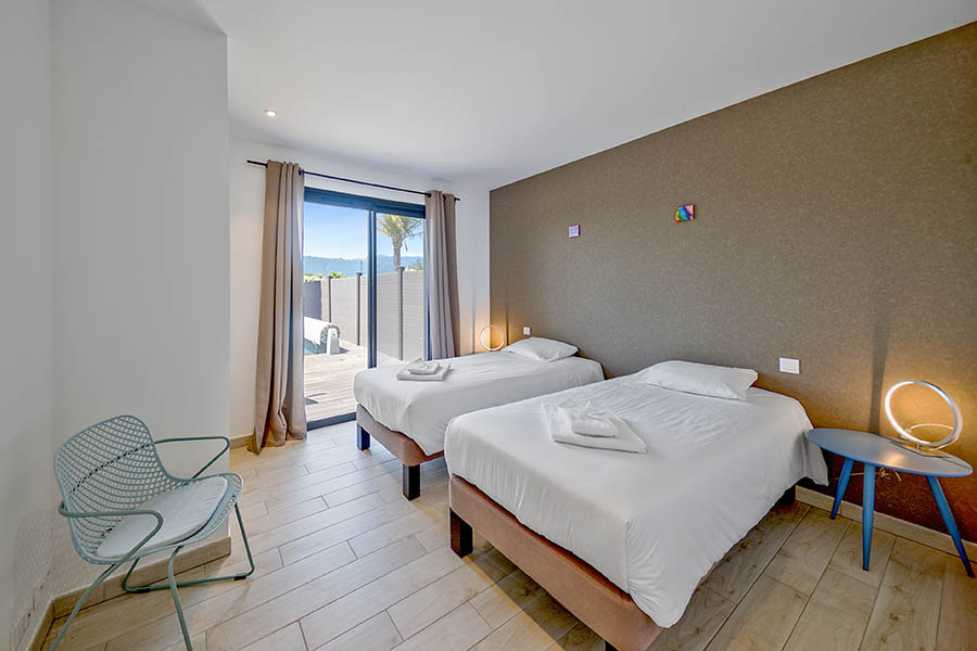 Les villas proposées accueillent jusqu'à 6 personnes dans un cadre élégant et généreux, offrant 110 m² d'espaces intérieurs prolongés par 150 m² d'extérieur avec piscine privée. Climatisées et pensées pour un confort absolu, elles disposent d'un séjour lumineux avec canapé trois places et poufs, ouvert sur une cuisine entièrement équipée (lave-vaisselle, lave-linge, machine Nespresso, cafetière, bouilloire, grille-pain). L'espace nuit se compose d'une chambre principale avec lit double 180×200 et de deux chambres avec lits simples, complété par trois salles d'eau avec douches à l'italienne et quatre WC, dont un indépendant.