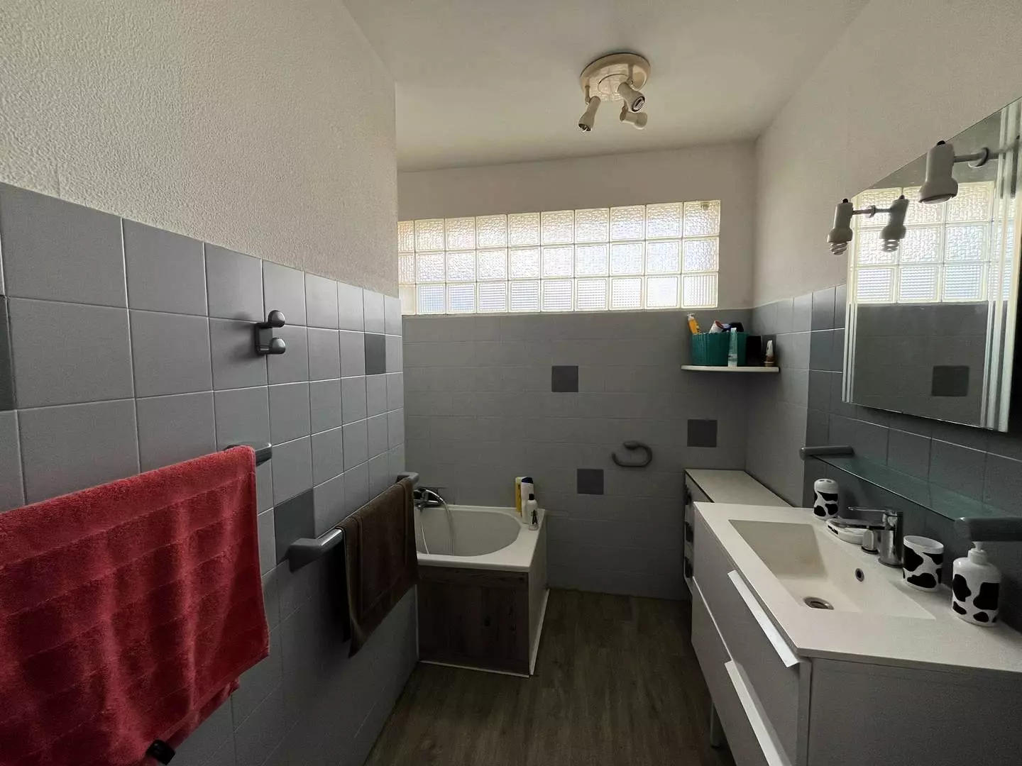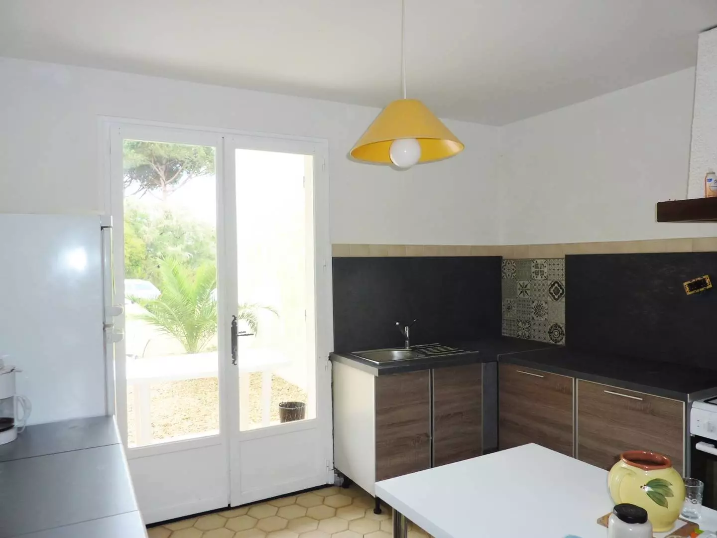 Spacieuse pièce de vie donnant sur la terrasse extérieure couverte, cuisine indépendante, 2 chambres à l'étage et 2 au rez-de-chaussée. Jardin clos.