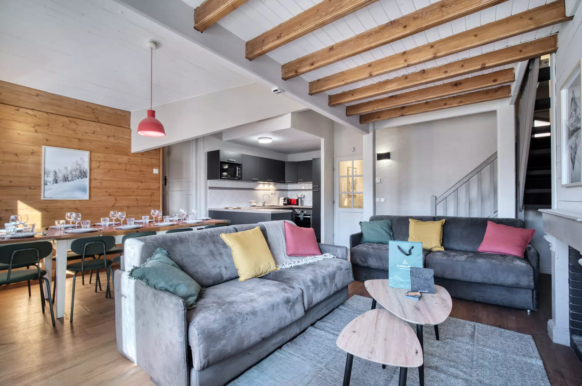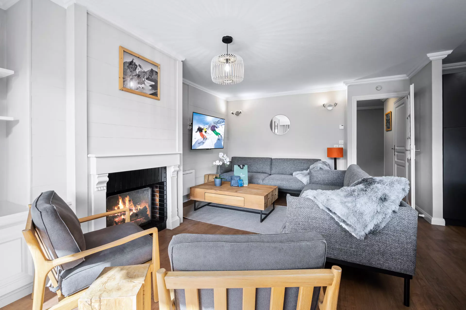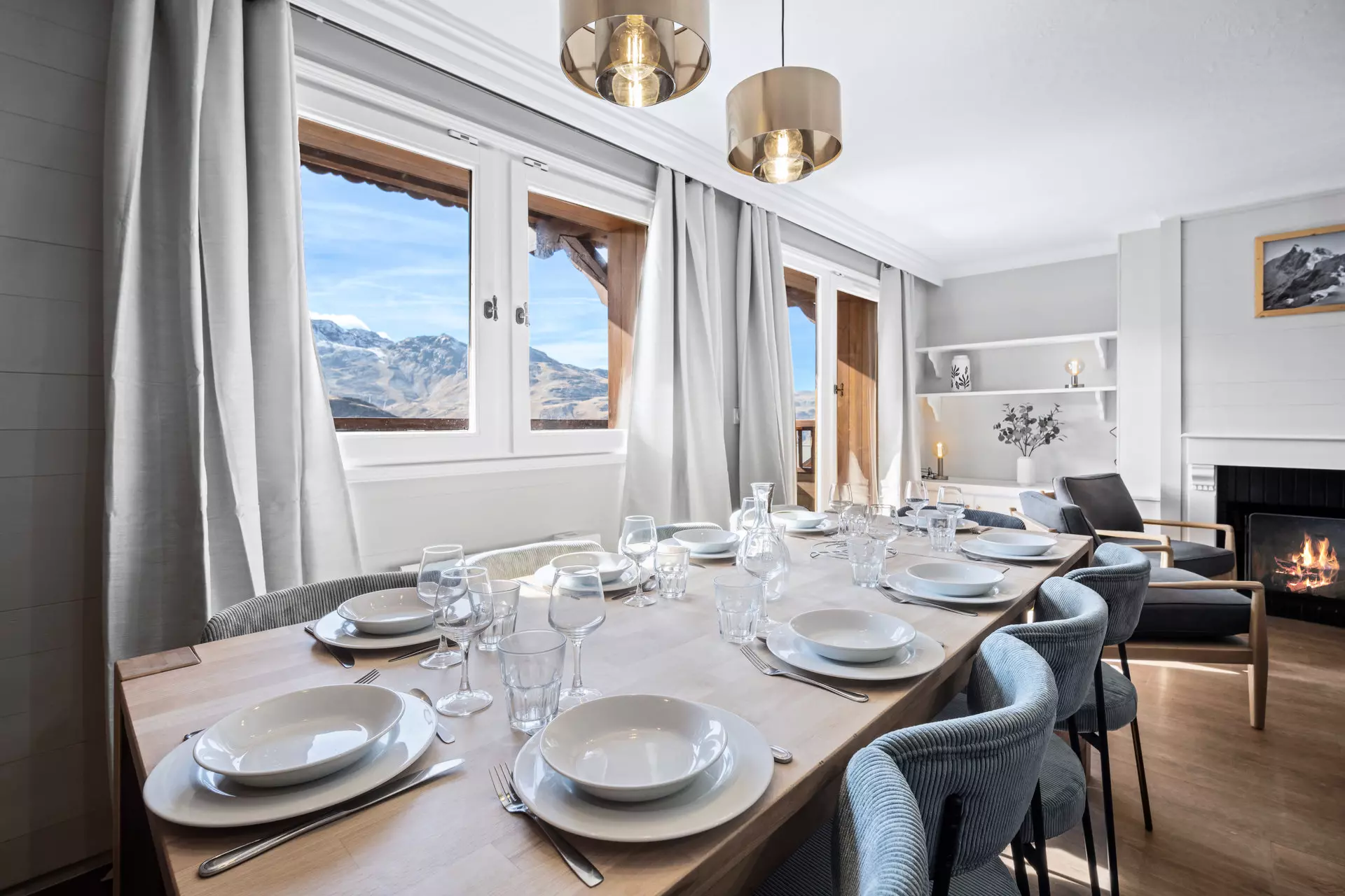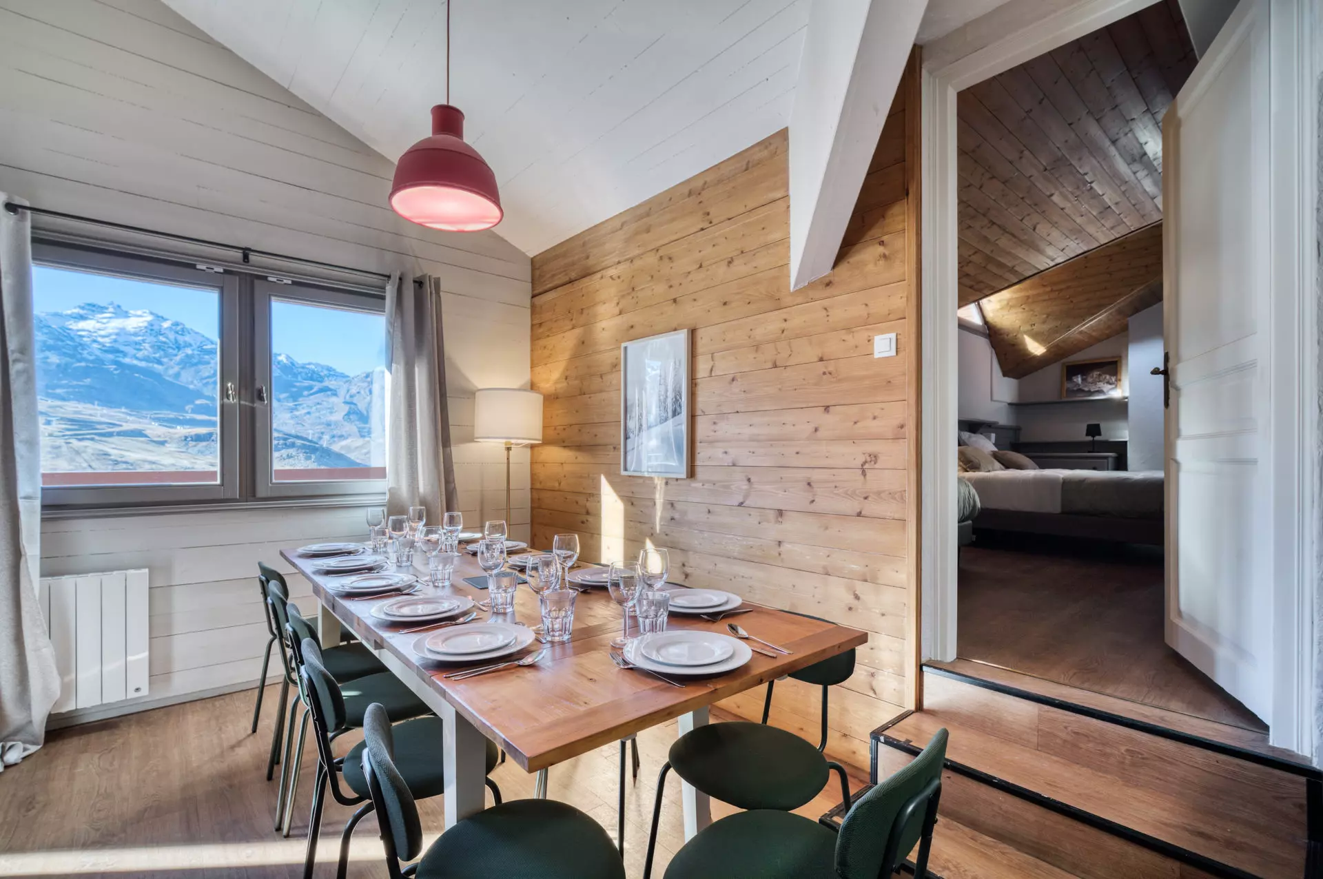 Doté d'une vue panoramique, le séjour lumineux est aménagé pour vous offrir un espace chaleureux et accueillant, avec un salon cosy idéal pour se détendre après une journée sur les pistes, ainsi qu'une cuisine ouverte entièrement équipée, alliant modernité et fonctionnalité. L'espace repas vous permettra de partager des moments mémorables en toute convivialité.