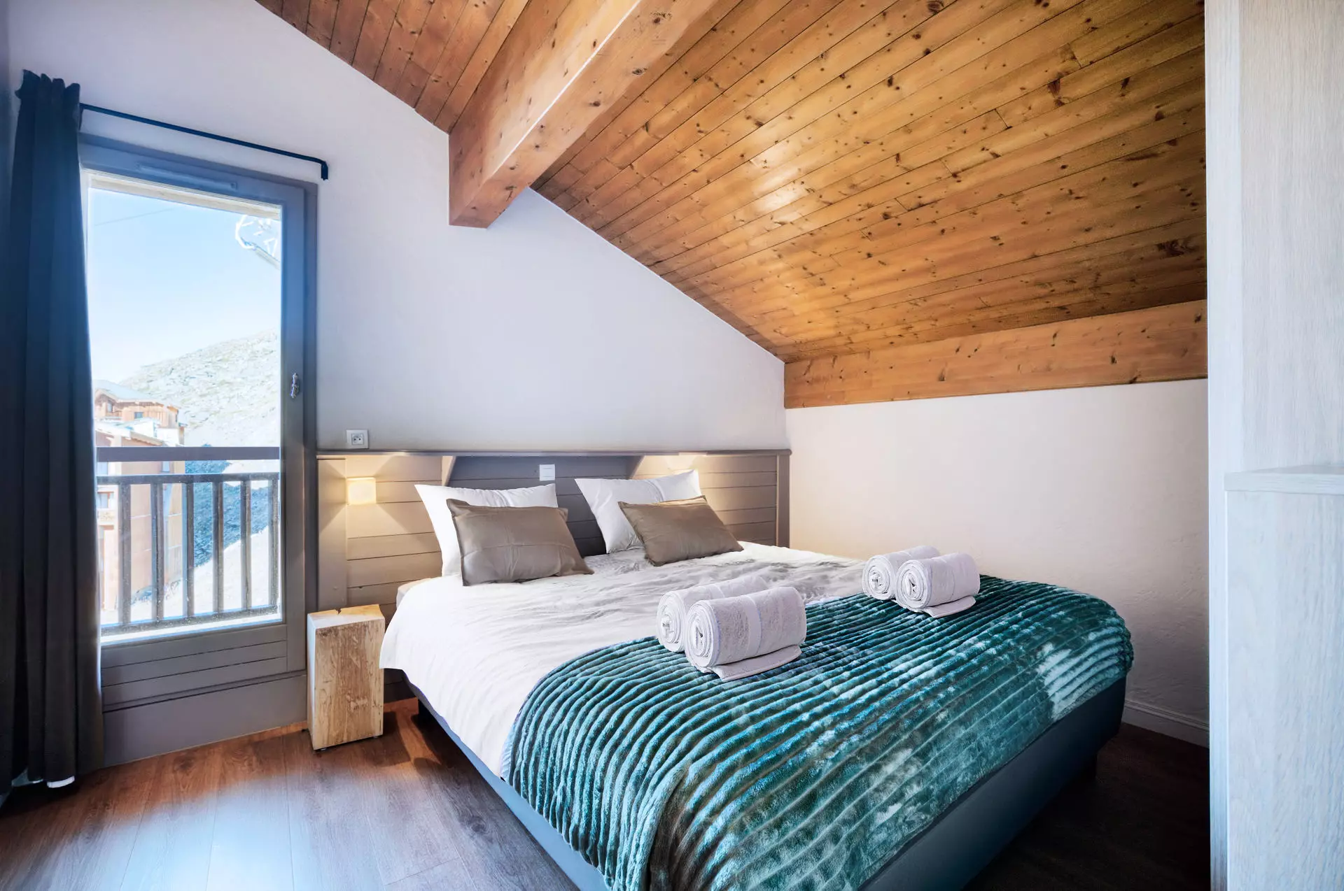 Appartement de 62m² en duplex situé dans la résidence Rosael, quartier Balcon. Il dispose de 3 chambres doubles et 2 salles de bain. Un espace espace wellness avec piscine et sauna sont accessibles aux clients de la résidence.